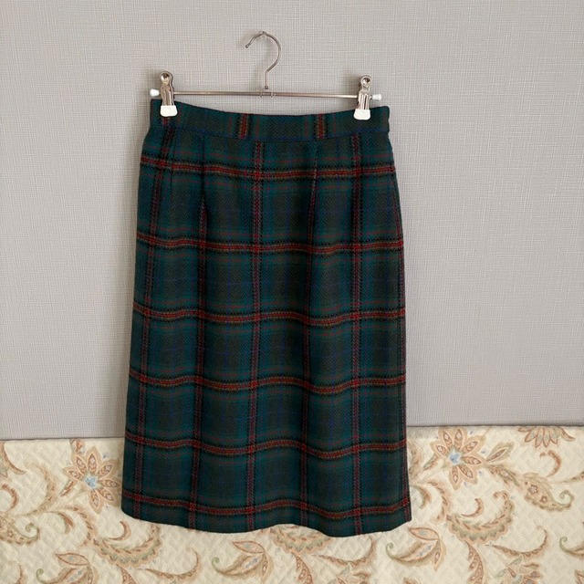 80-90s 昭和レトロヴィンテージ古着 DAKS ウールのタータンチェック柄 台形スカート 濃い緑色をベースとしたチェック柄 裏地付き 【寸法】 ウエスト 約 64 cm 丈 約 70 cm レディース S サイズ相当 【素材】 ウール ※中古品ということを ご理解いただいた上で 購入をお願いします ※発送日やお届け方法については下記ページをご覧ください https://nurude.thebase.in/p/00002 -------------------------------------------- *Please understand that this is a used item before purchasing *For shipping dates and delivery methods, please see the following page https://shop.roinaz.com/p/00003