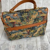Mini-sized duffel bag featuring a swan swimming in a lake pattern in Gobelin tapestry
