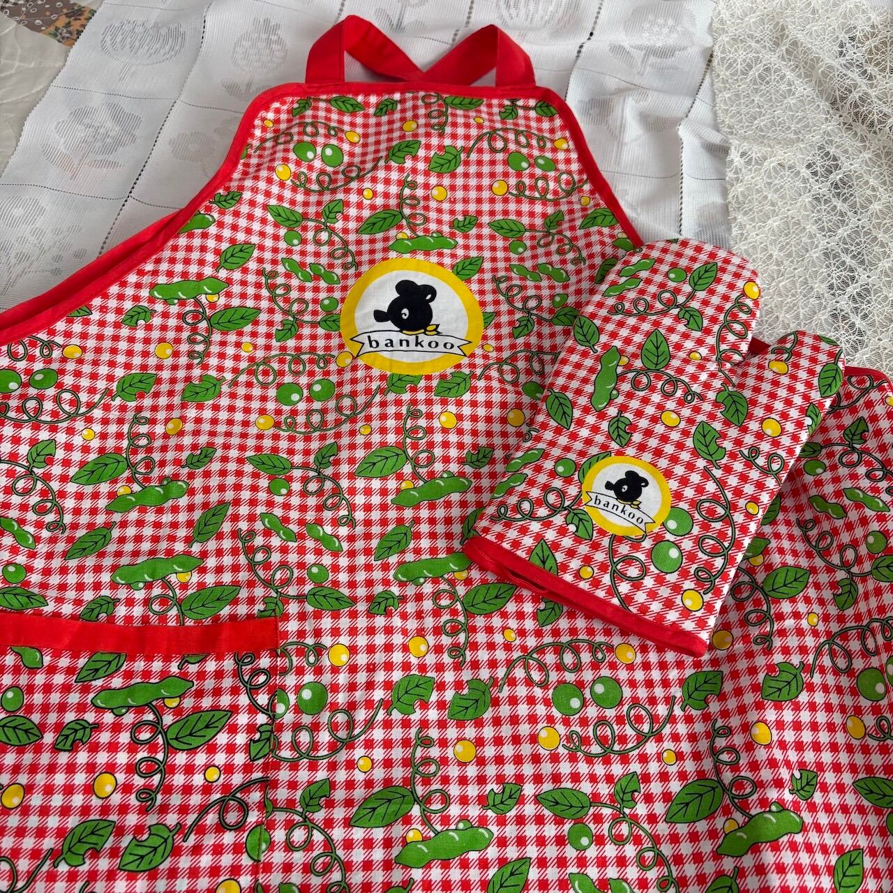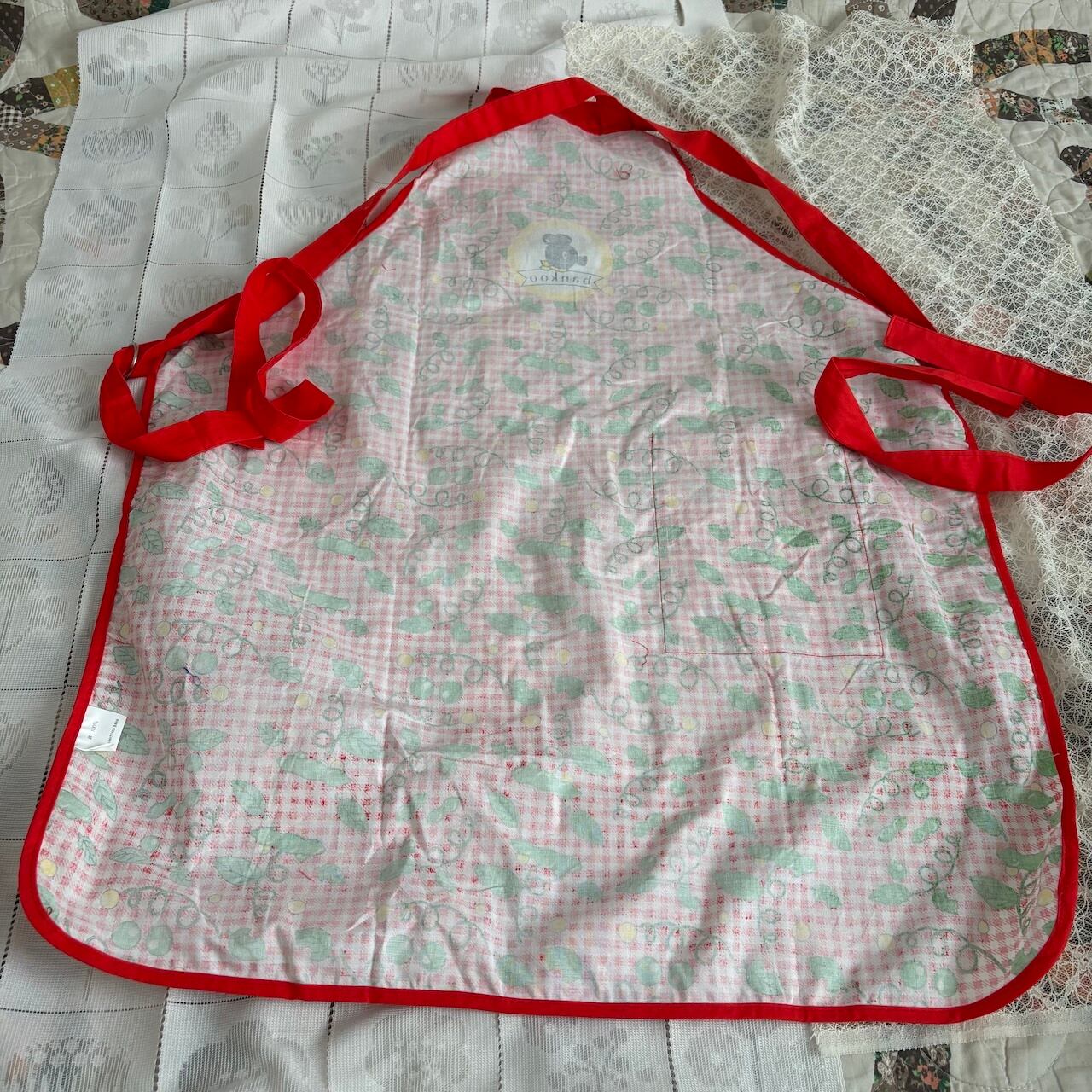 90s ギンガム×くま 銀行粗品エプロン