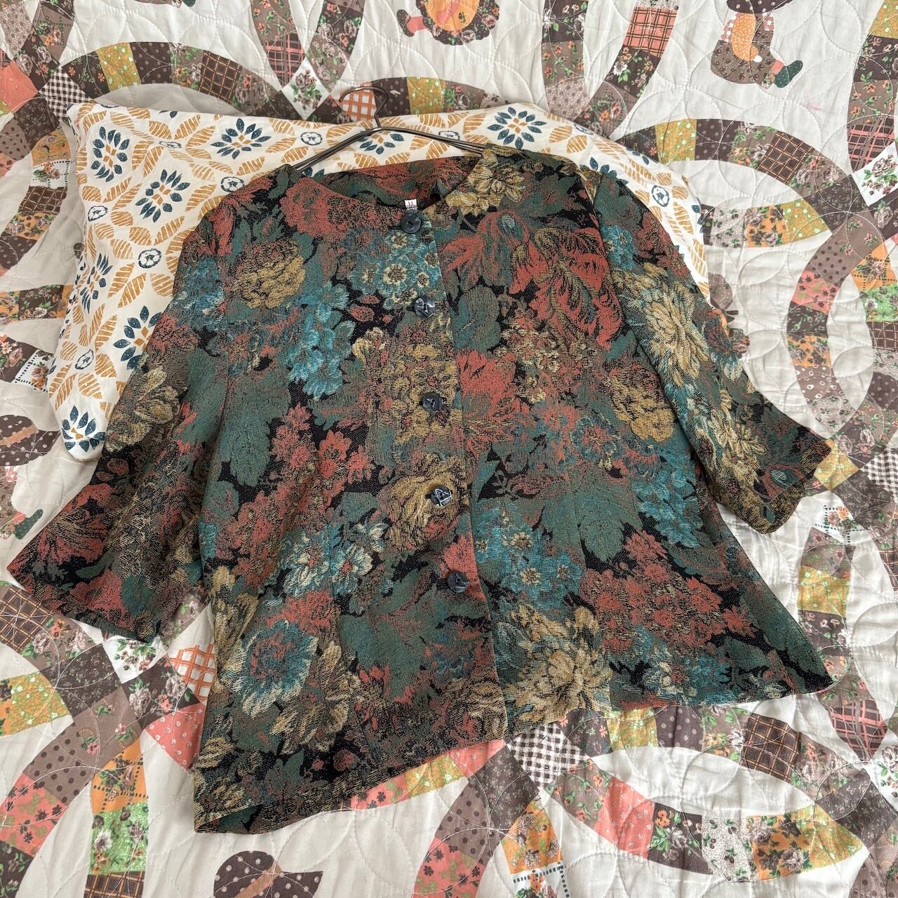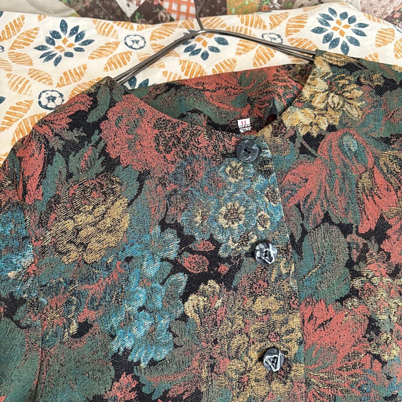 80s アンティーク花柄 襟なしブラウス 昭和レトロヴィンテージ古着