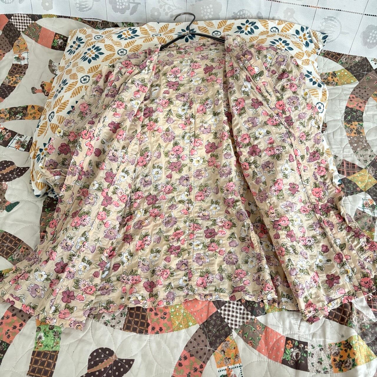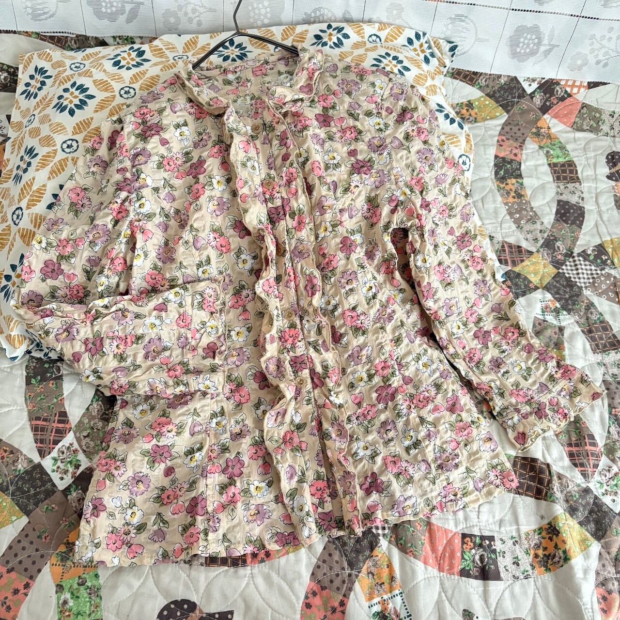 90s 花柄フリル 薄手半袖プルブラウス レトロヴィンテージ古着