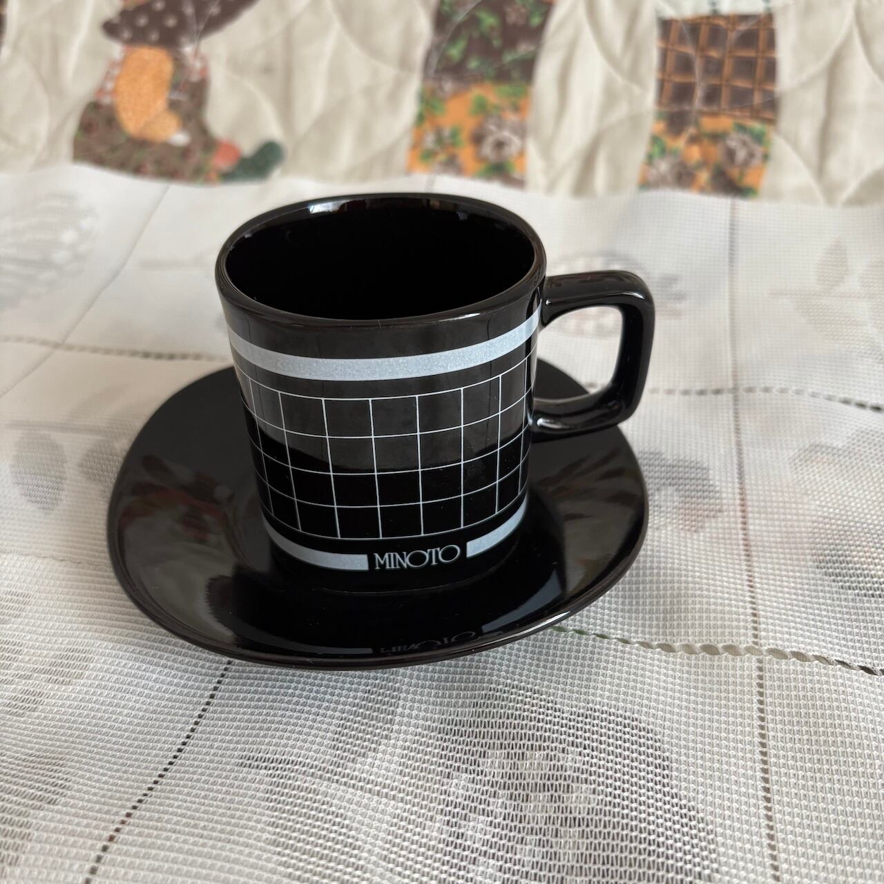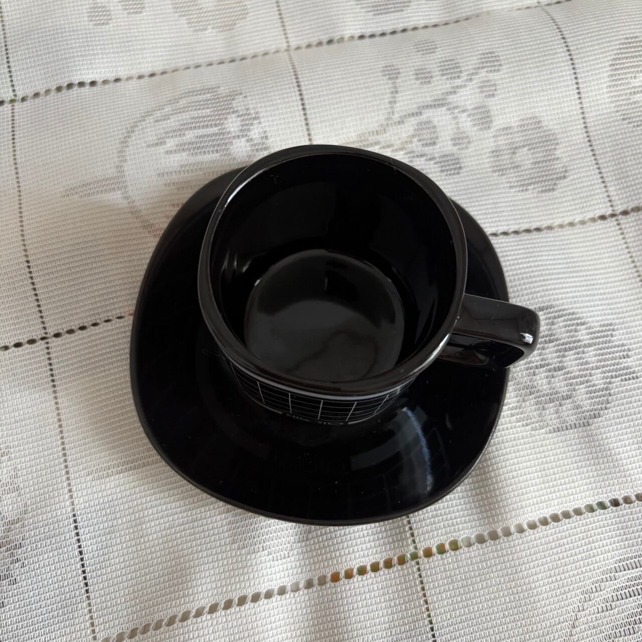 70s 格子柄 カップ&ソーサーセット ブラック 昭和レトロヴィンテージ食器