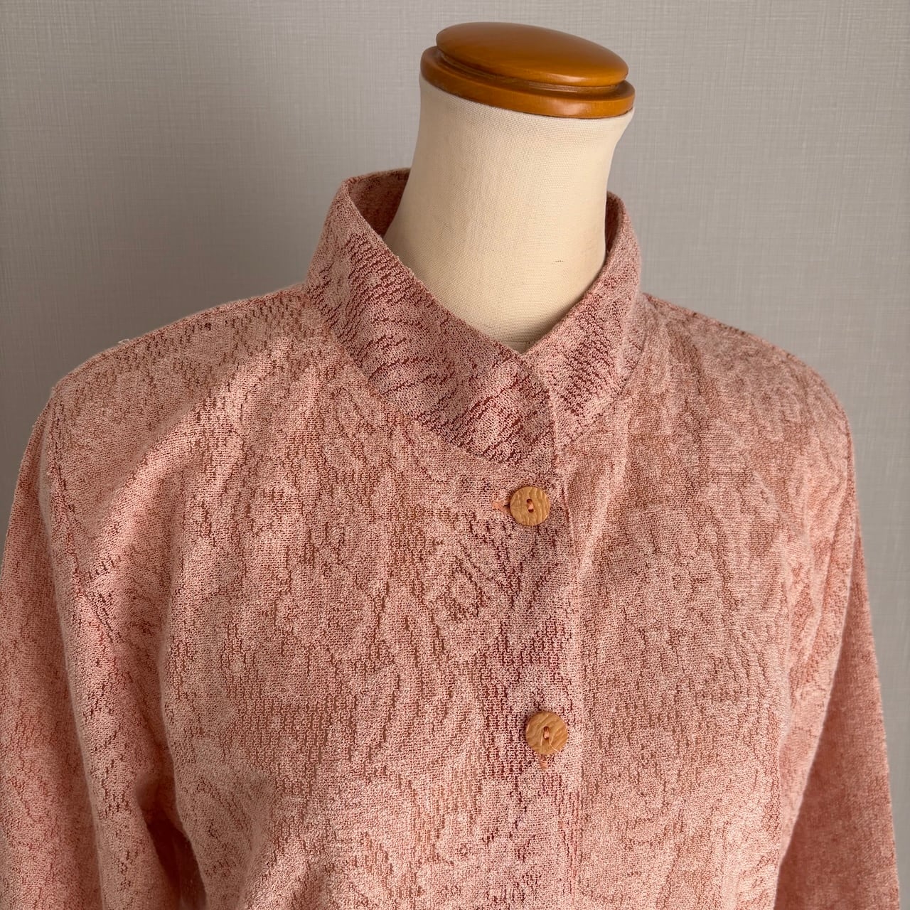 80s ペールオレンジ レース風ブラウス スタンドカラー 昭和レトロヴィンテージ古着