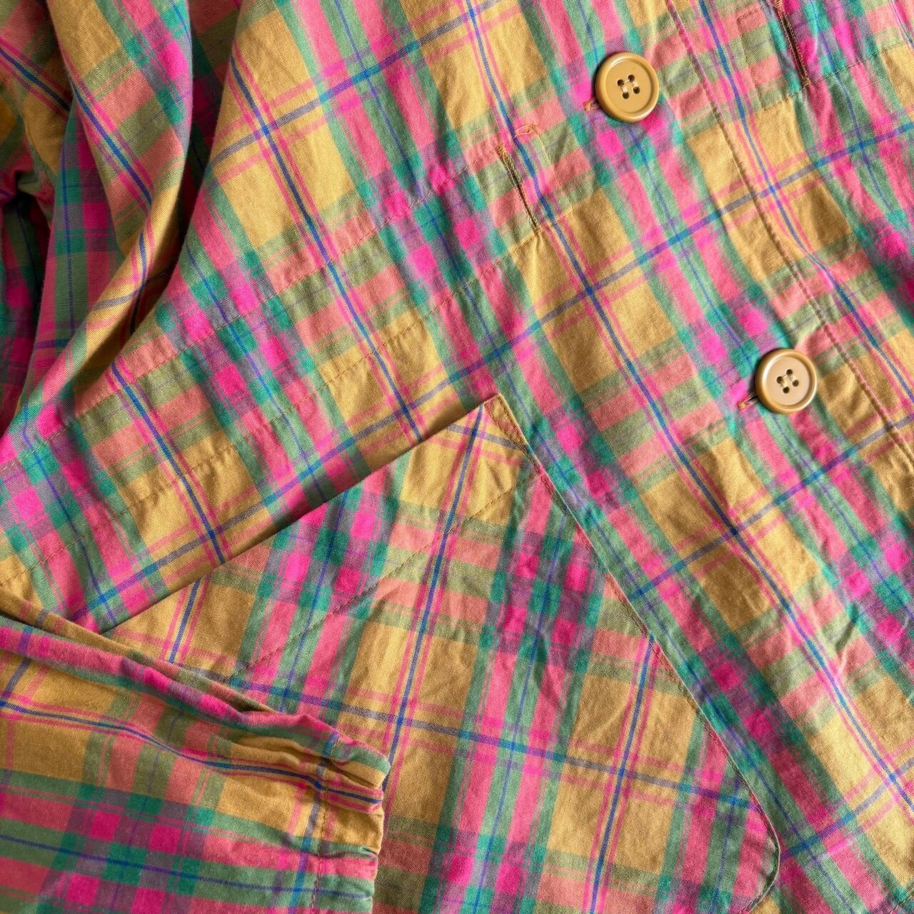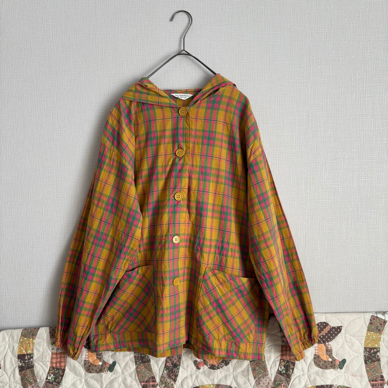 80s タータンチェック柄 長袖フーディーブラウス 昭和レトロヴィンテージ古着
