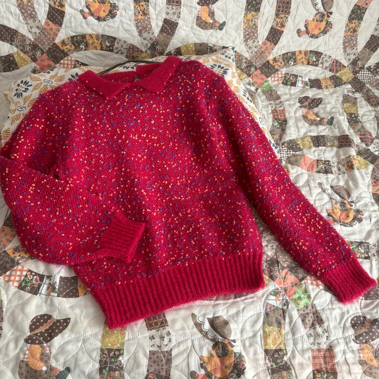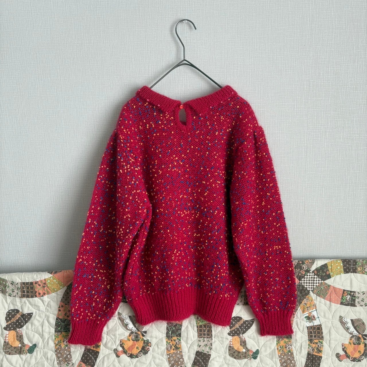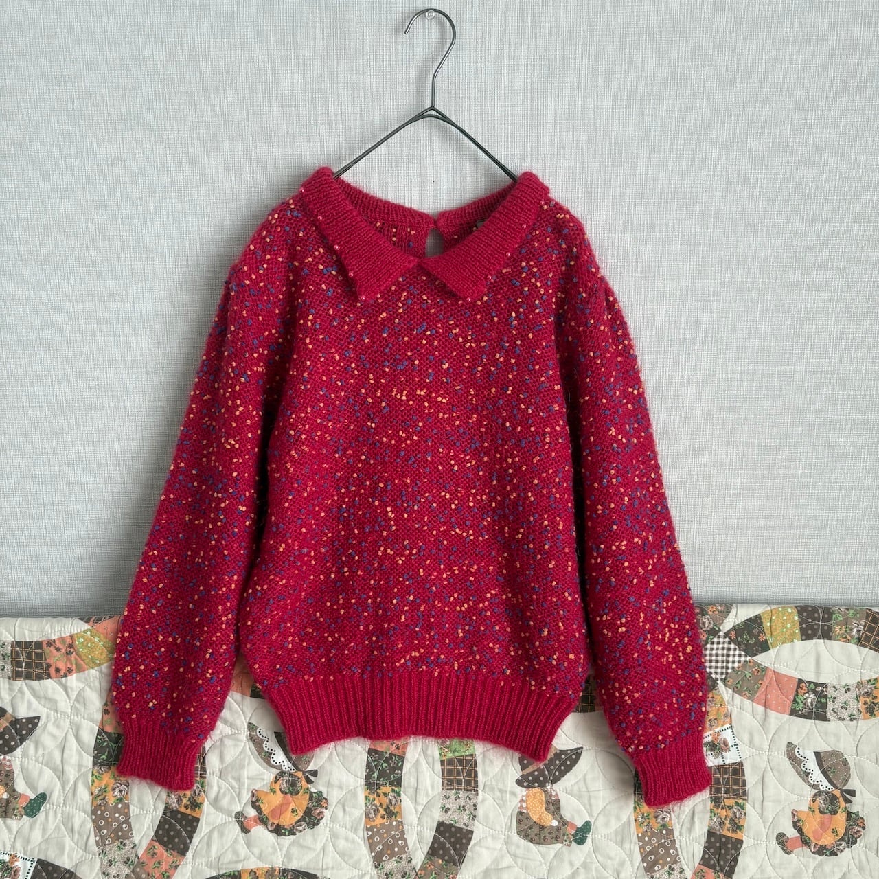 80s 襟付きニットセーター ローズピンク ファンシーヤーン 昭和レトロヴィンテージ古着