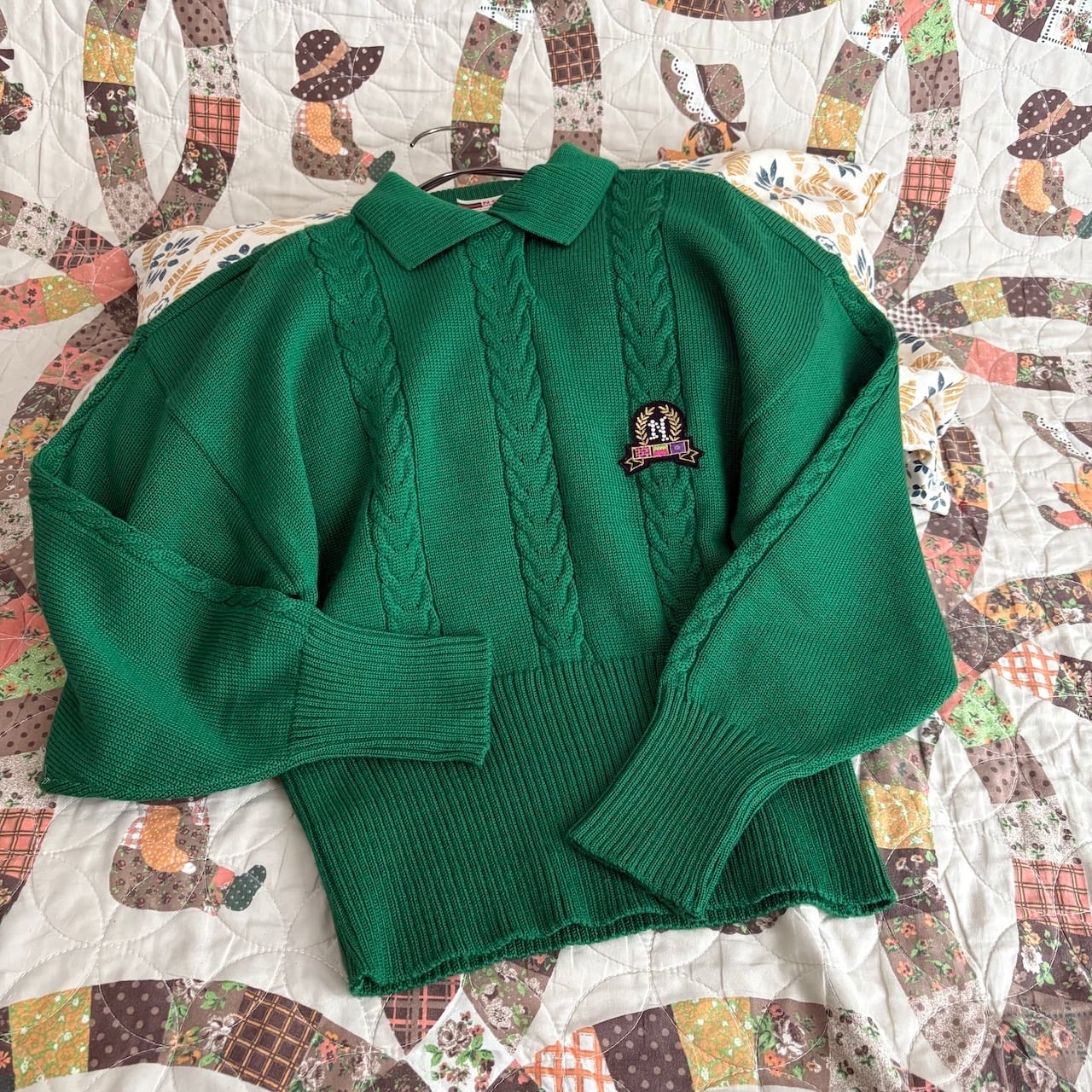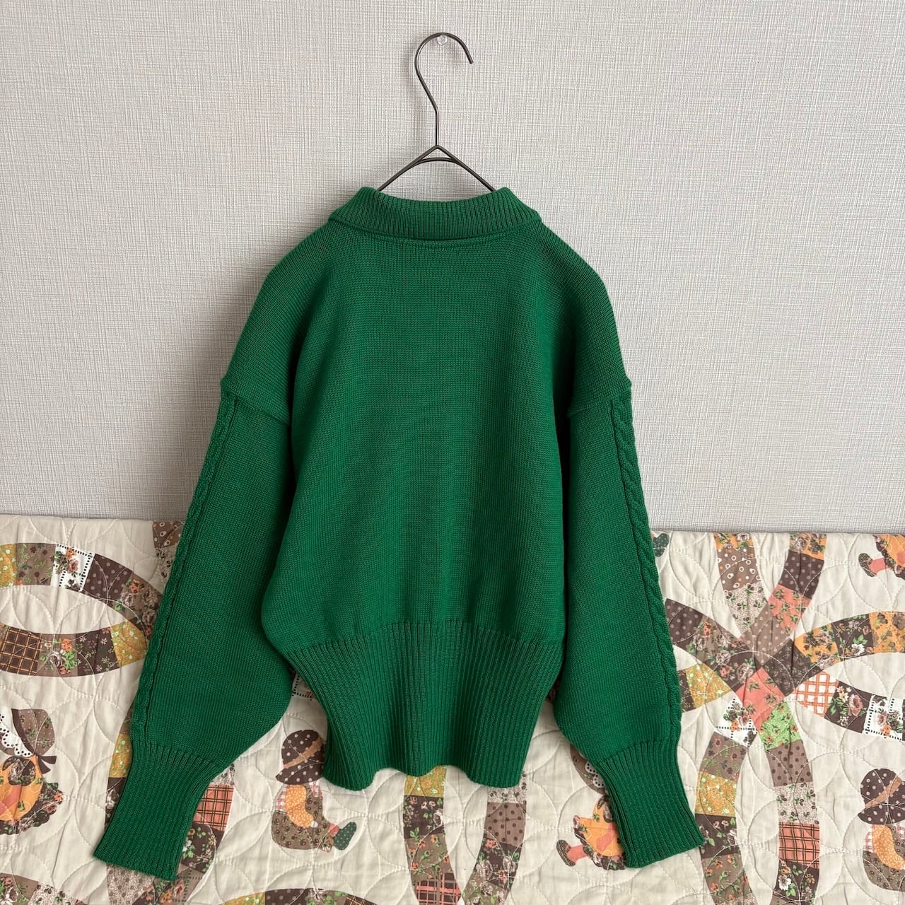 70s 襟付きニットセーター ウール100% グリーン 昭和レトロヴィンテージ古着