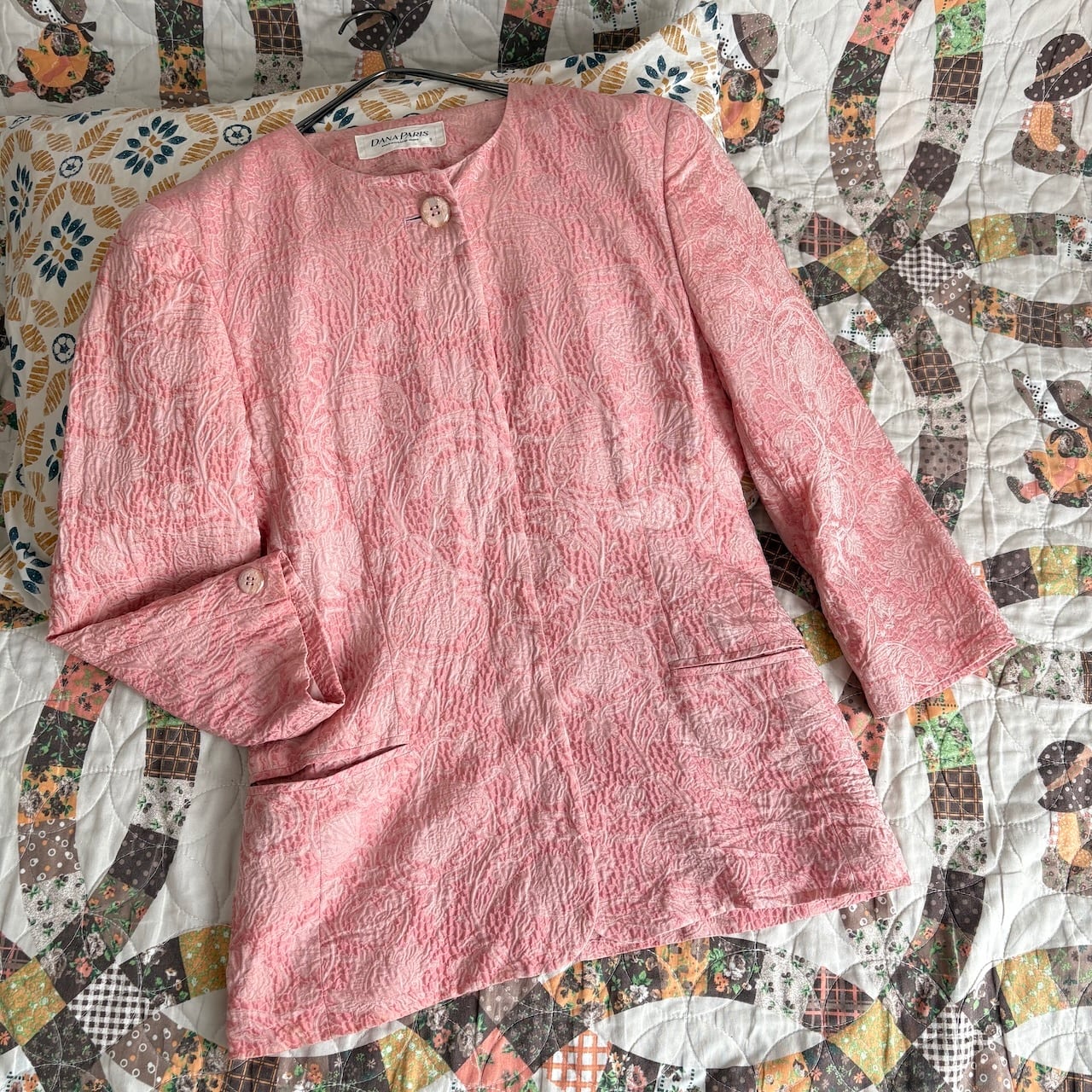 80s シルク 桜色 襟なしジャケット 昭和レトロヴィンテージ古着