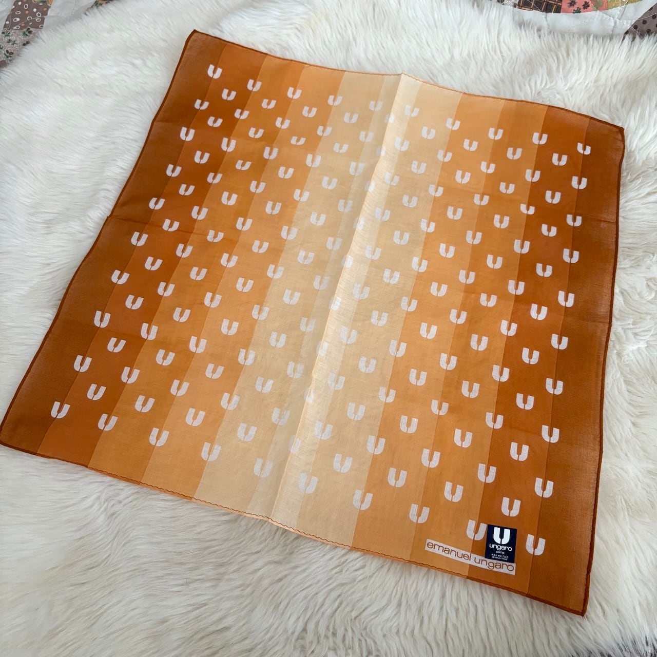 【デッドストック】ungaro paris モノグラム ブラウン系 コットンハンカチ 昭和レトロ ヴィンテージ雑貨
