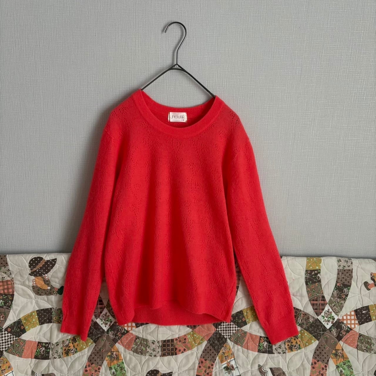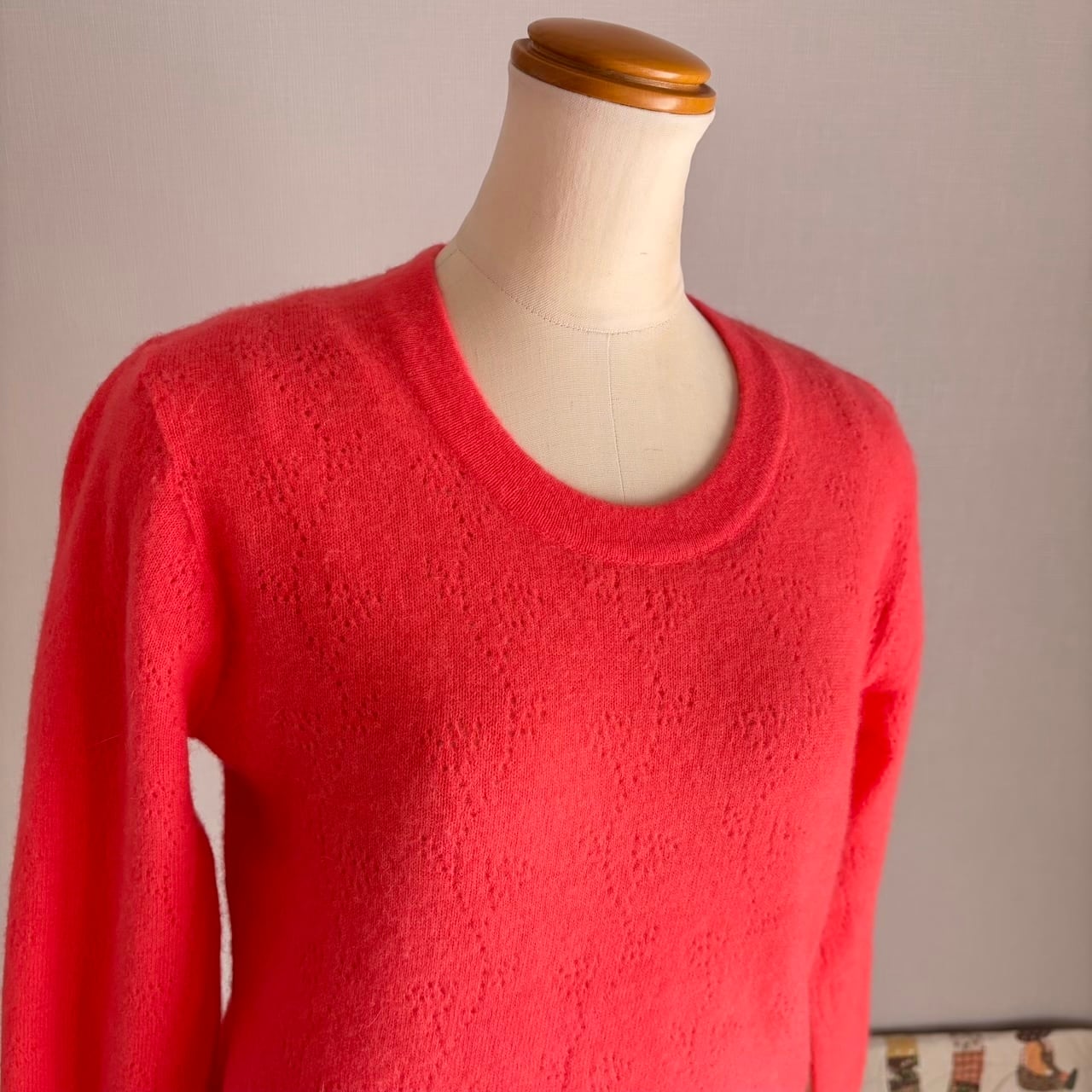 80s 透かし編み ニットセーター サーモンピンク 昭和レトロヴィンテージ古着