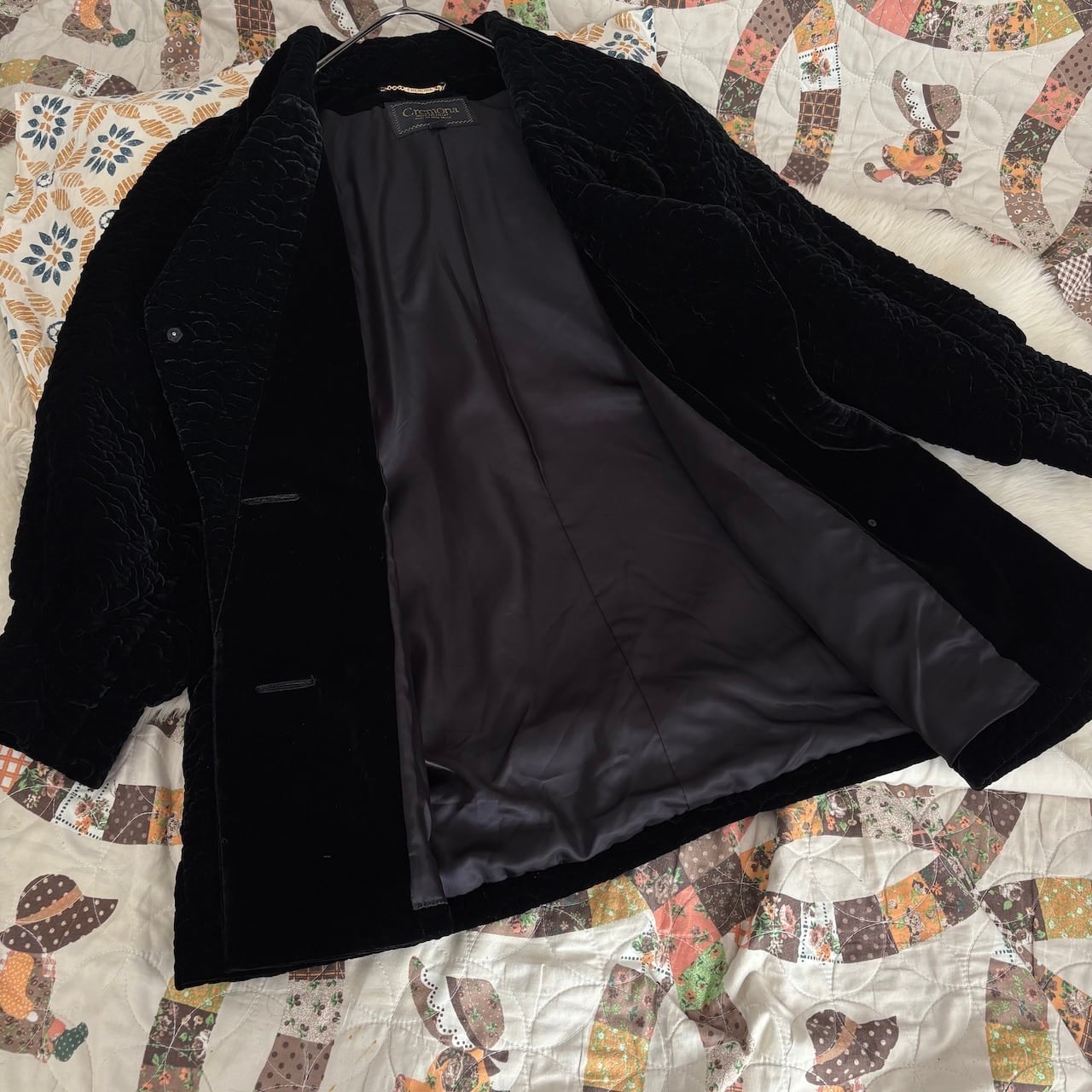 80s ベルベット キルティングコート シルク 昭和レトロヴィンテージ古着