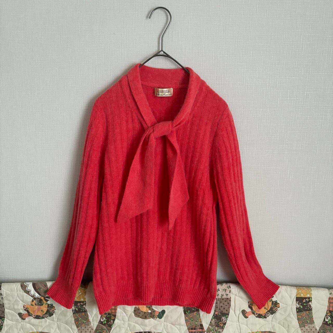 80s レナウン ボウタイ ニットセーター ピンク 昭和レトロヴィンテージ古着