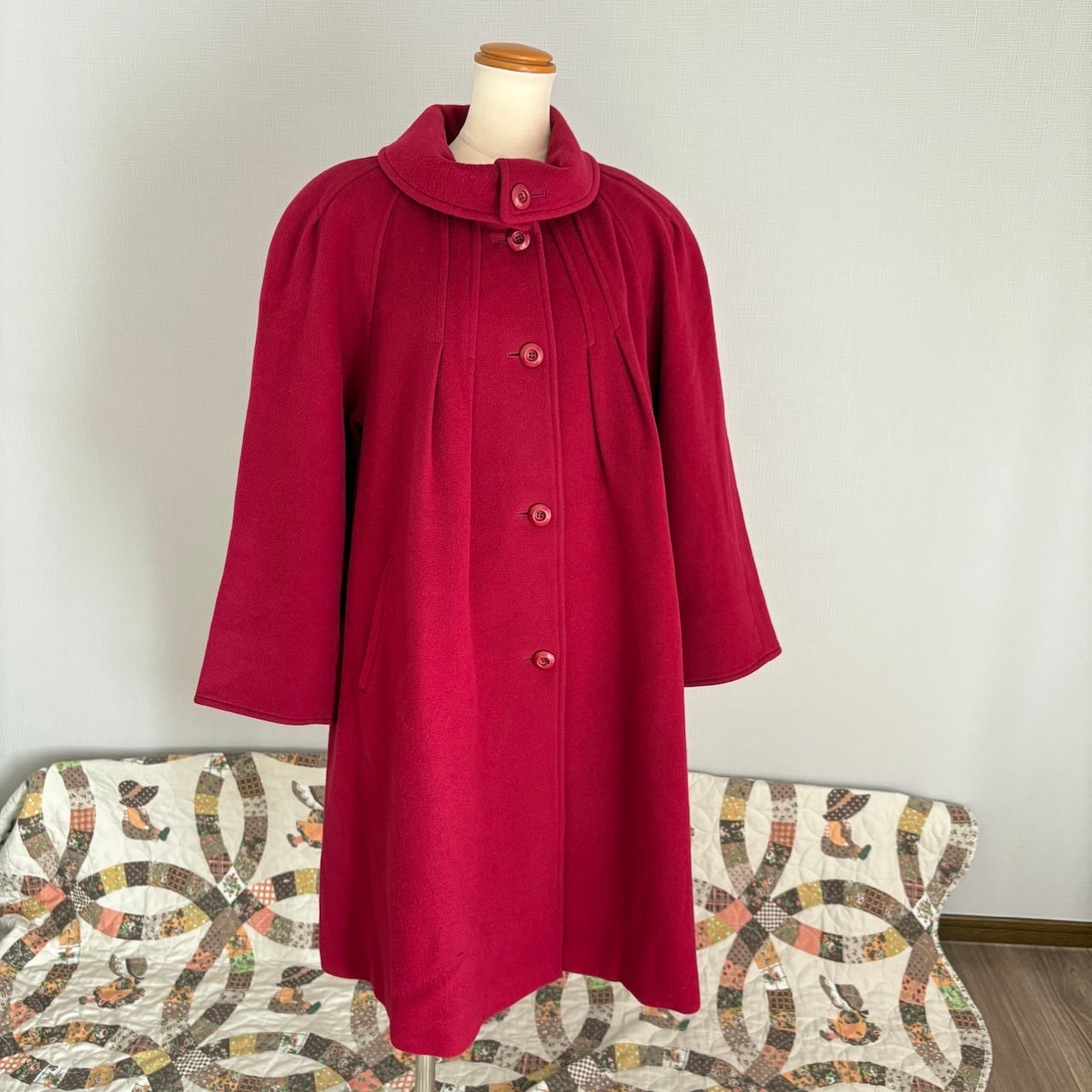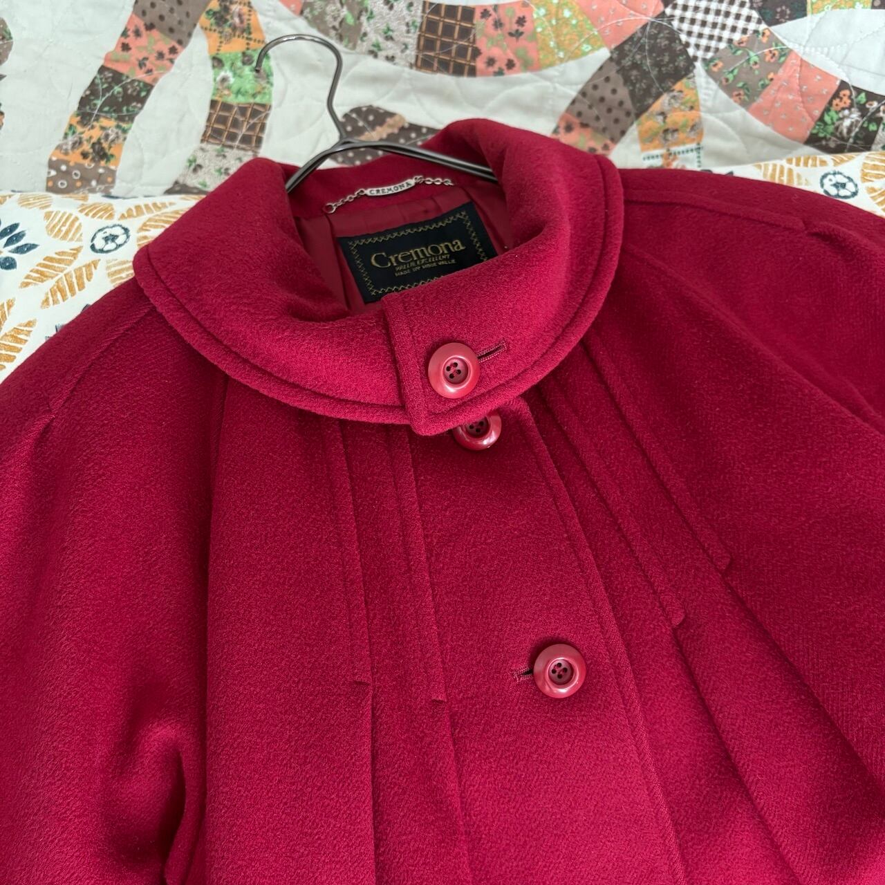 80s カシミヤ バーガンディ ロングコート 昭和レトロヴィンテージ古着