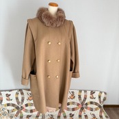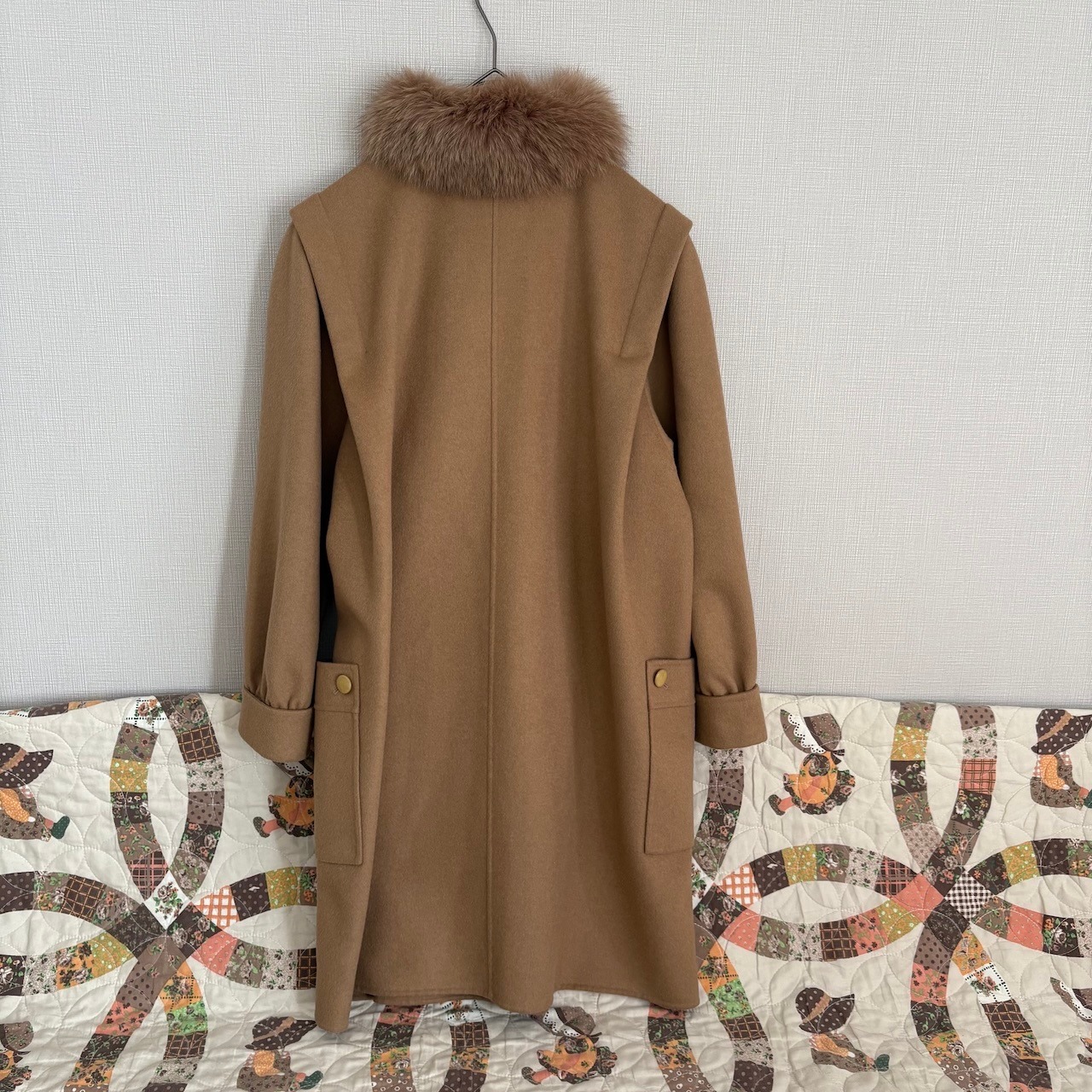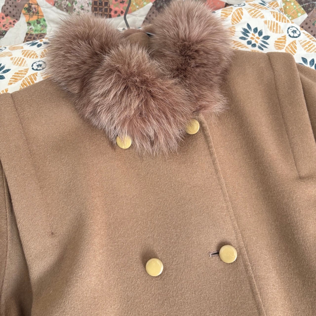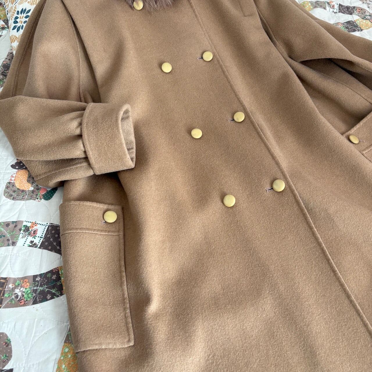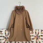 80s キャメル ファー付きウール ロングコート 昭和レトロヴィンテージ古着