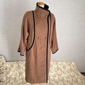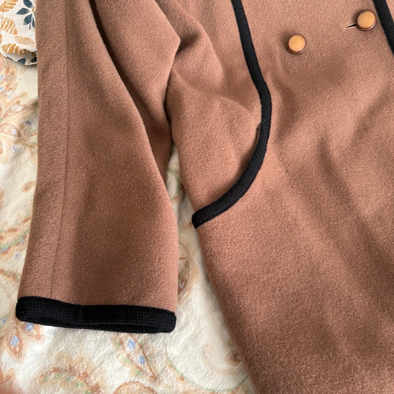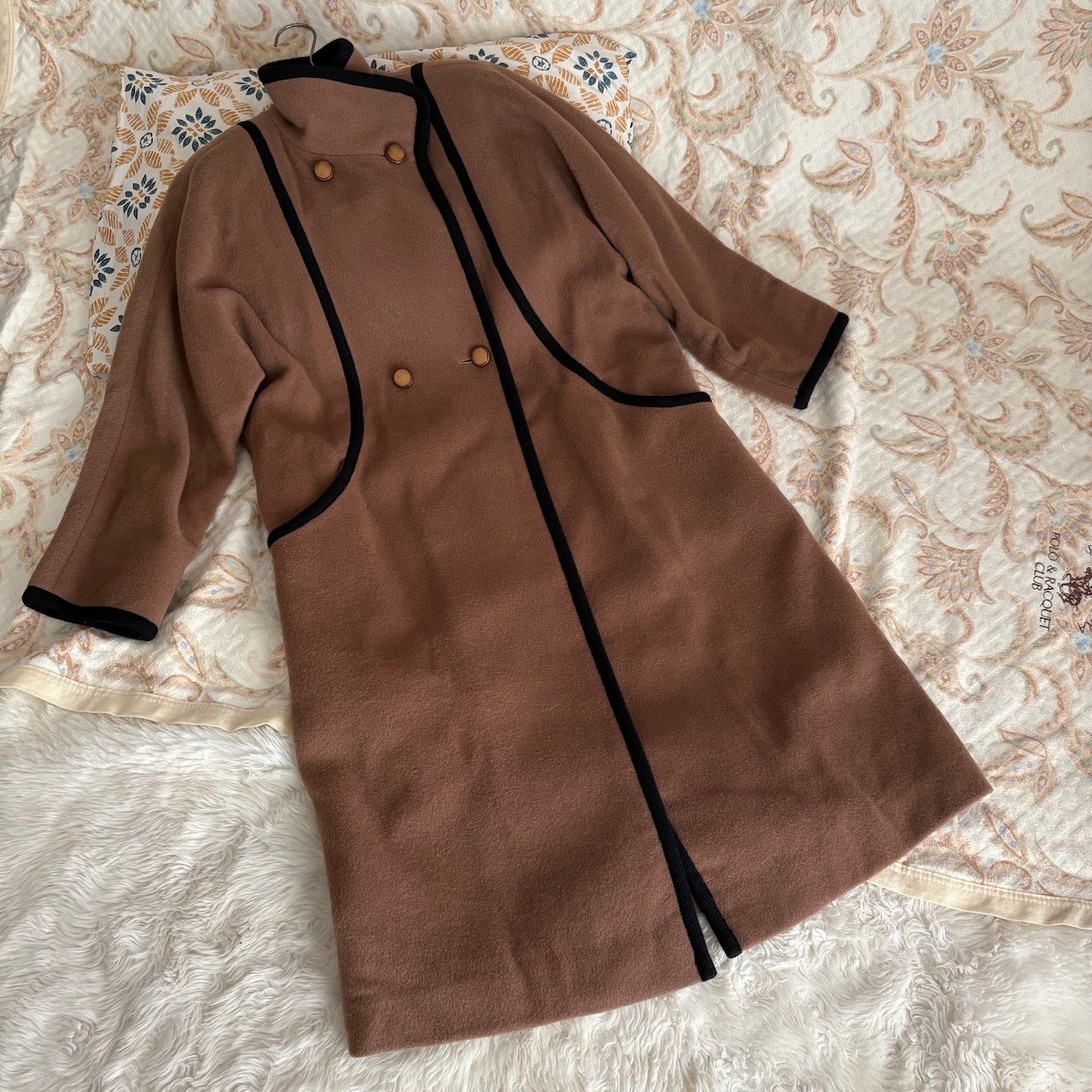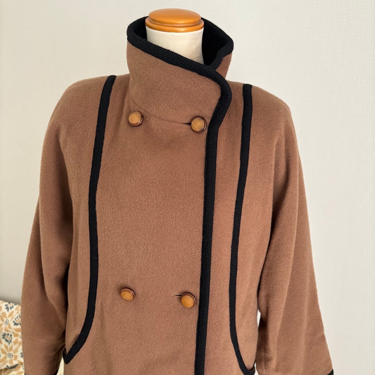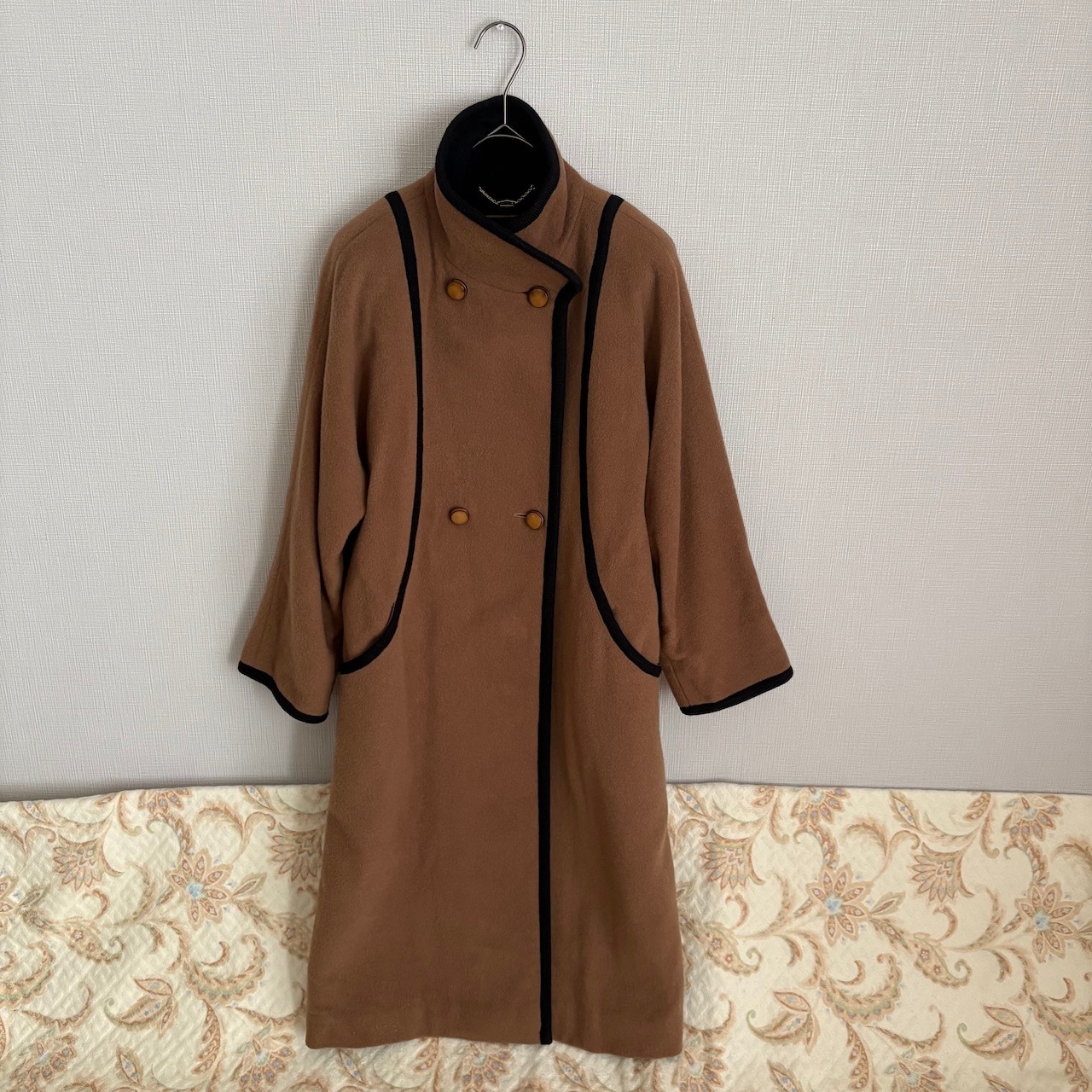 80s Onward ラムウール ライン入りキャメル ロングコート 昭和レトロヴィンテージ古着