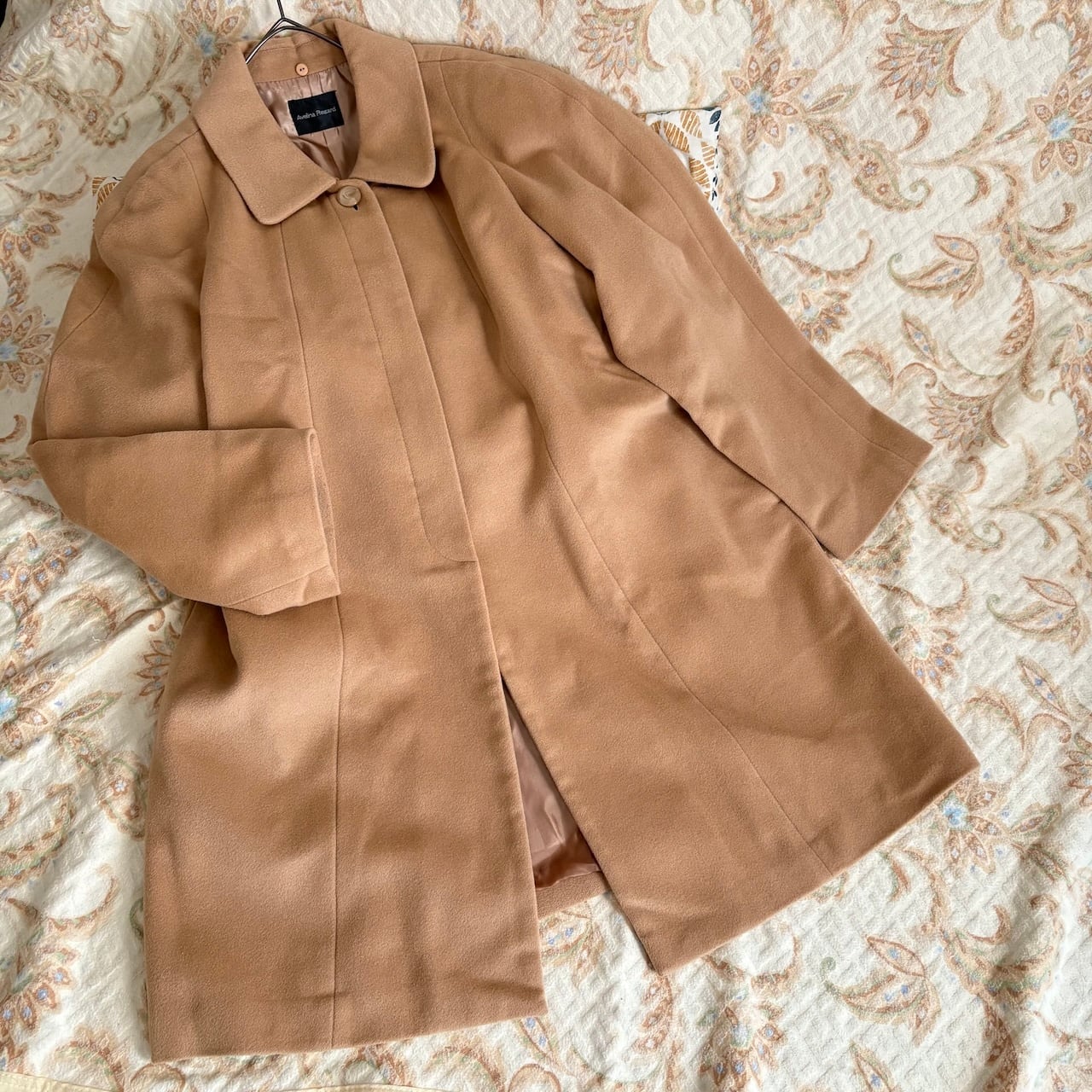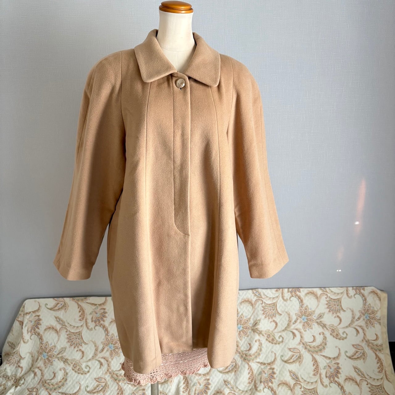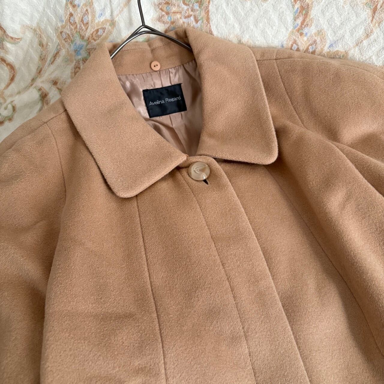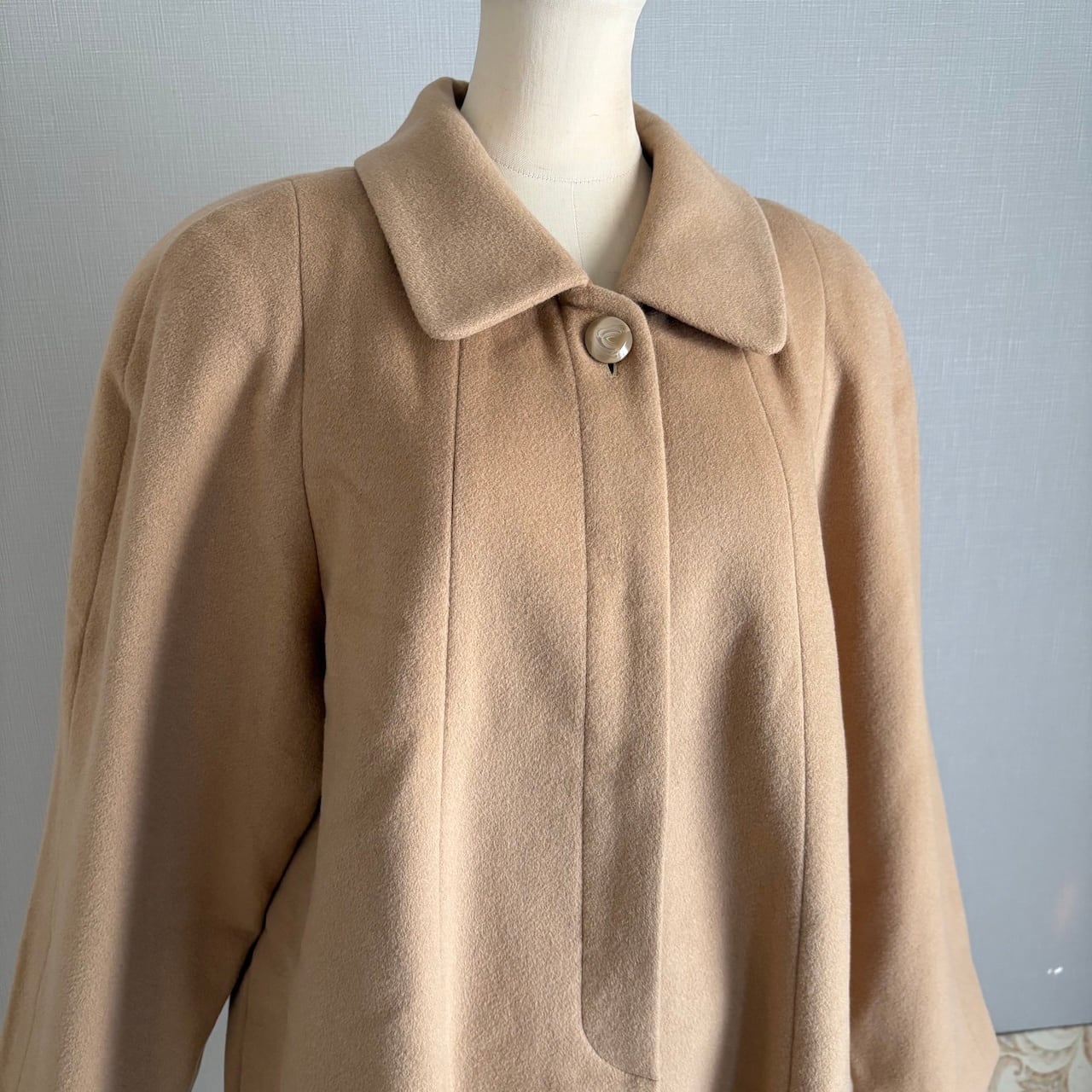 90s スキンベージュ ステンカラーコート アンゴラウール レトロヴィンテージ古着