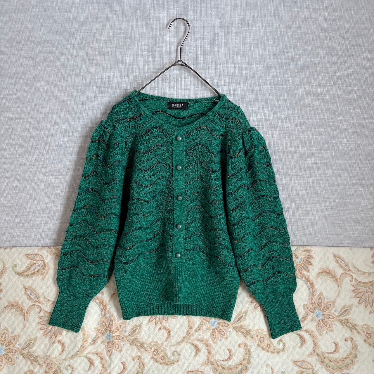 80s 緑ファンシーヤーン ニットセーター 昭和レトロヴィンテージ古着