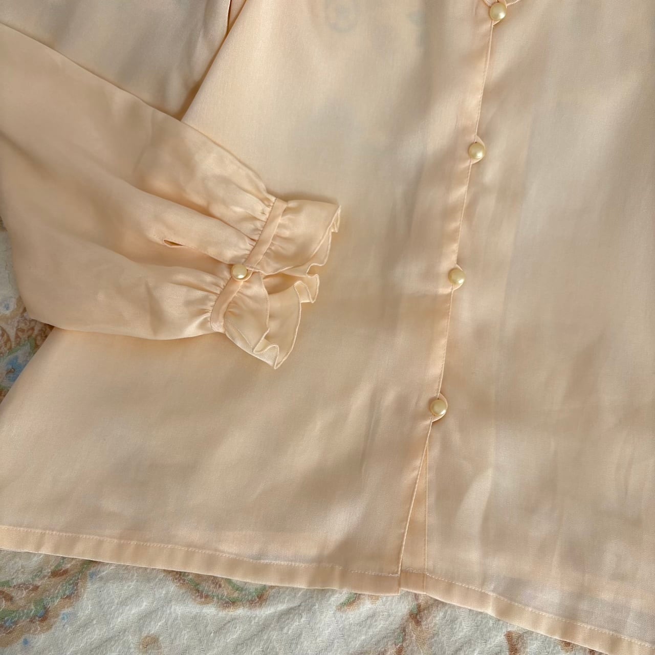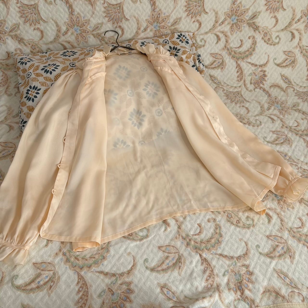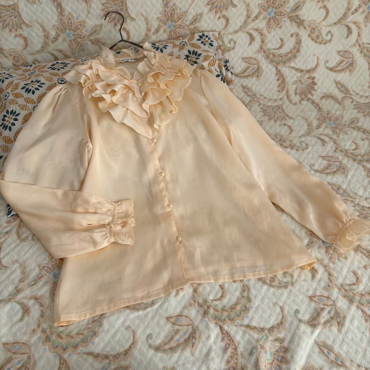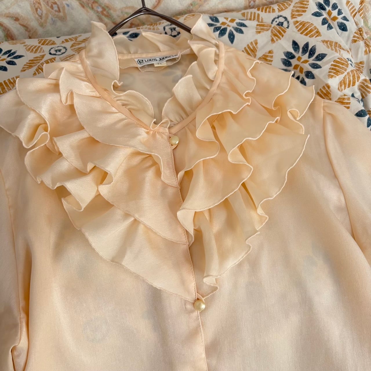 80s サテン生成りブラウス フリル襟 昭和レトロヴィンテージ古着