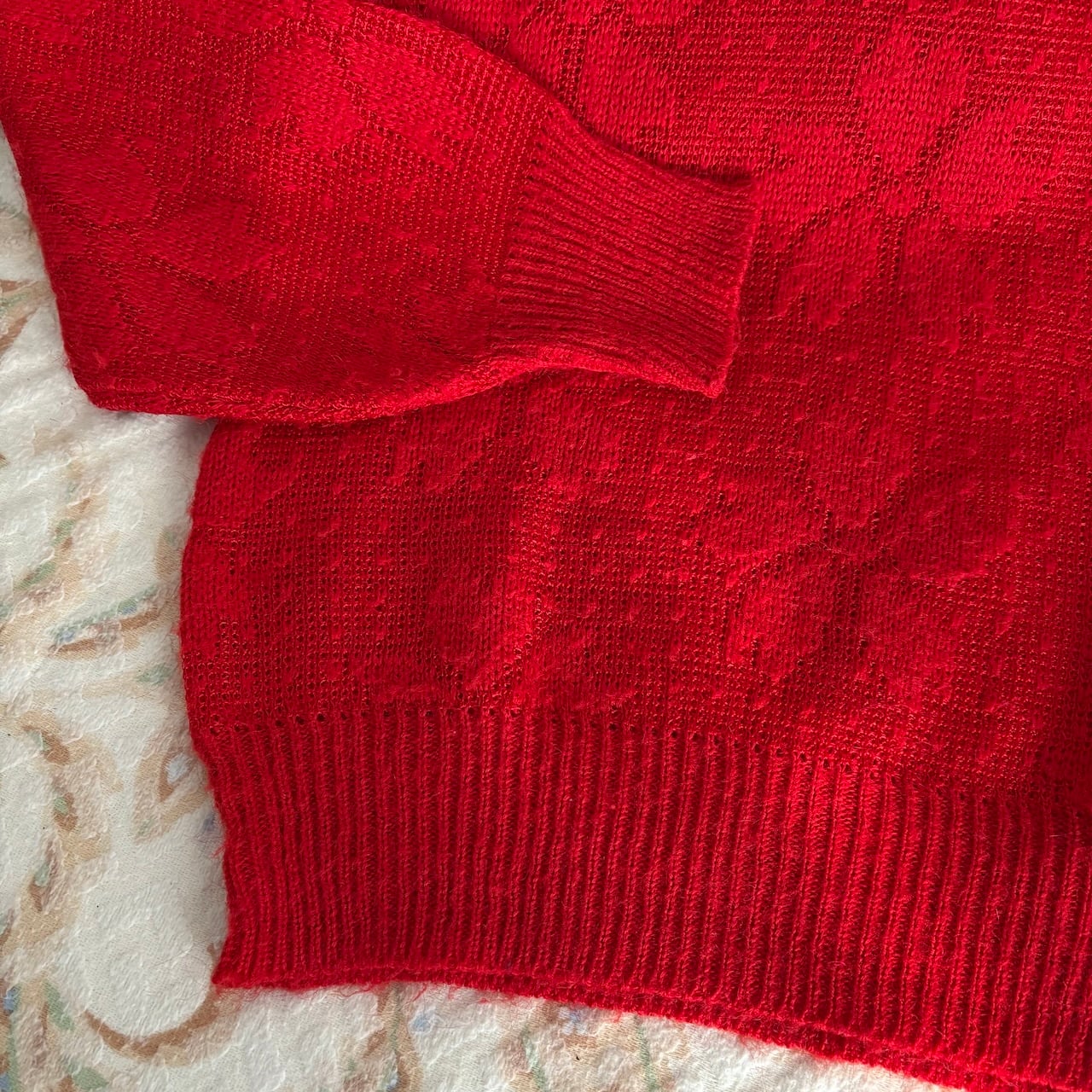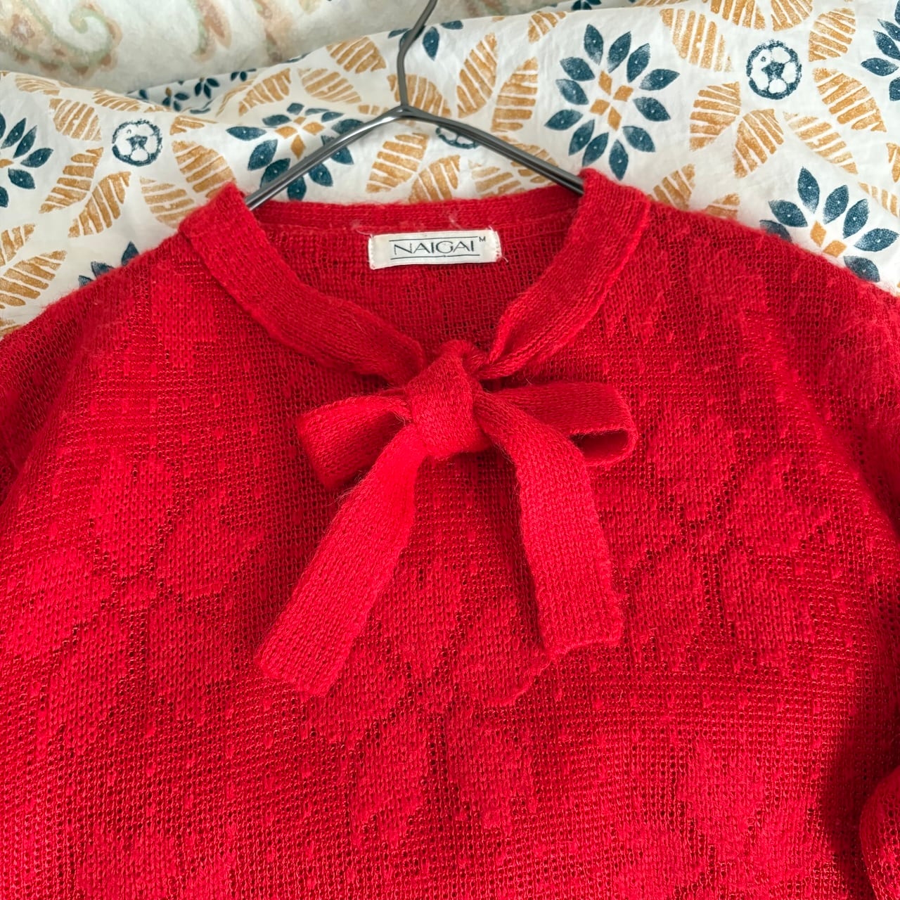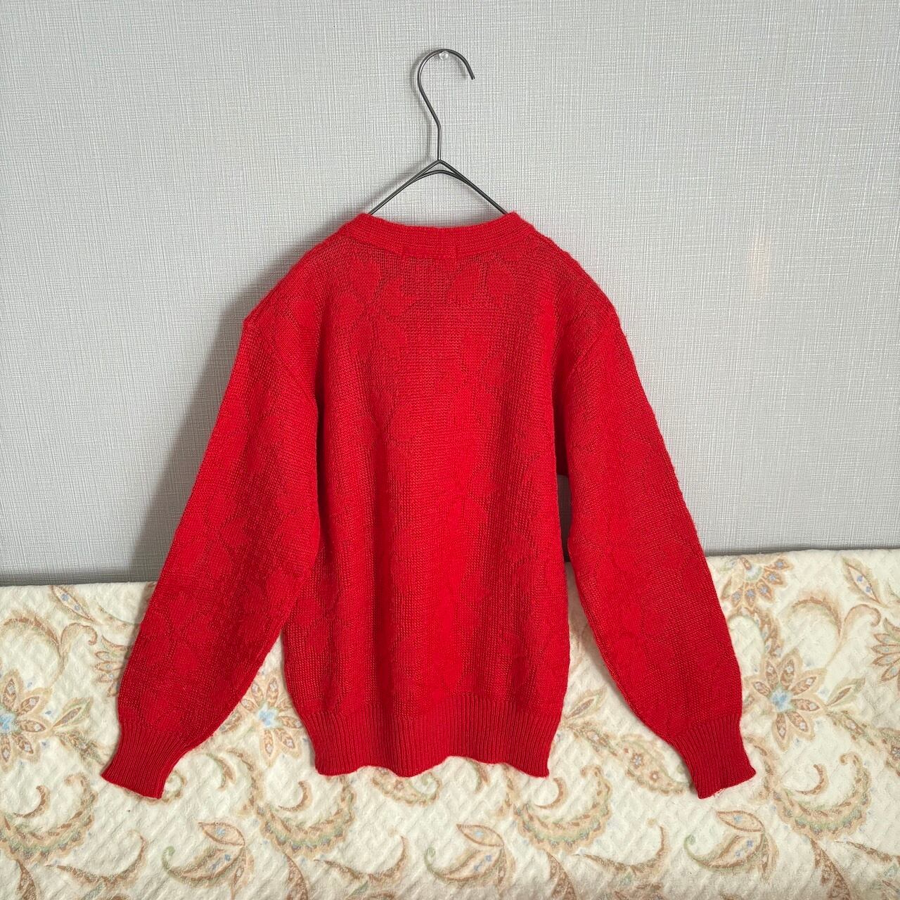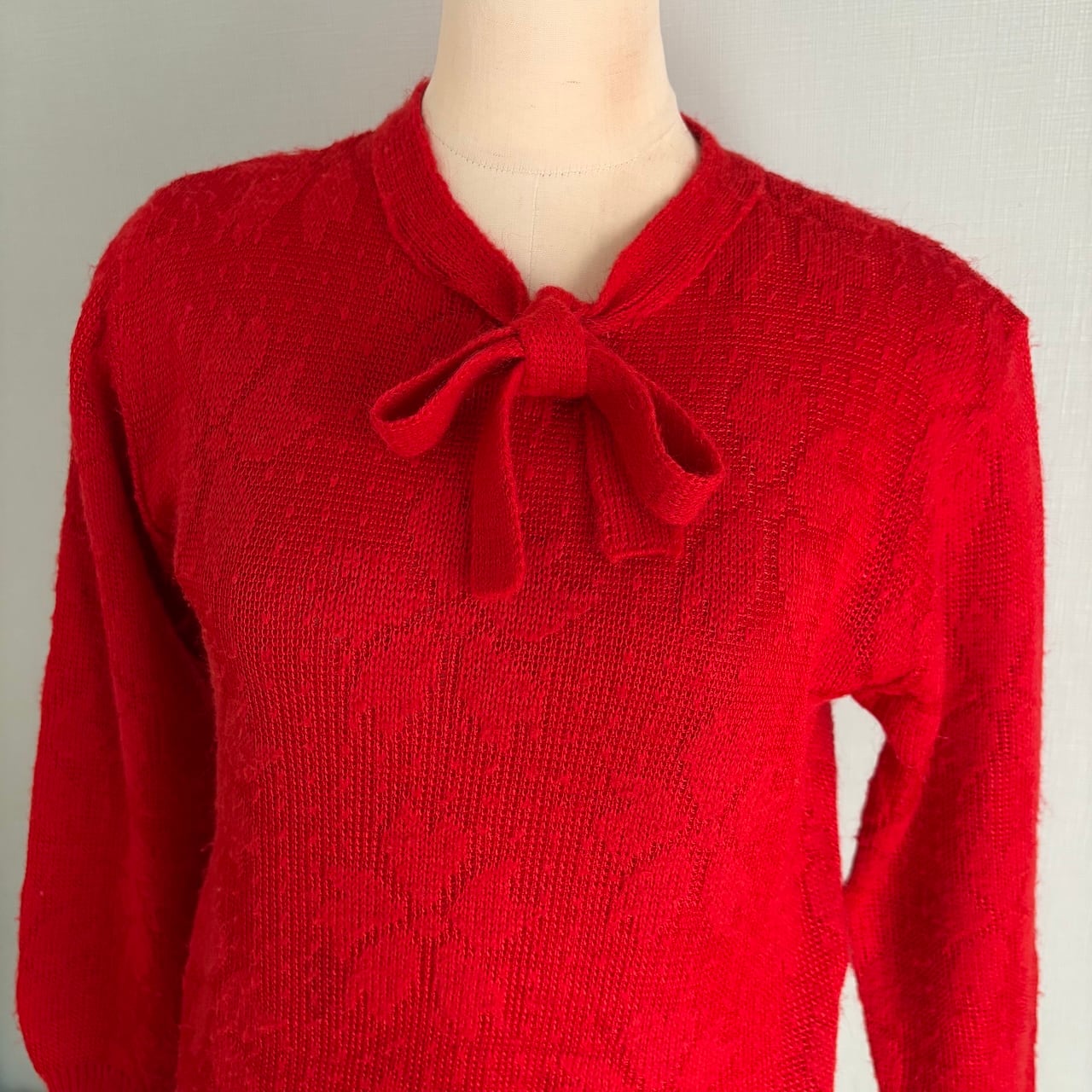 80s ボウタイ付きニットセーター 赤 昭和レトロヴィンテージ古着