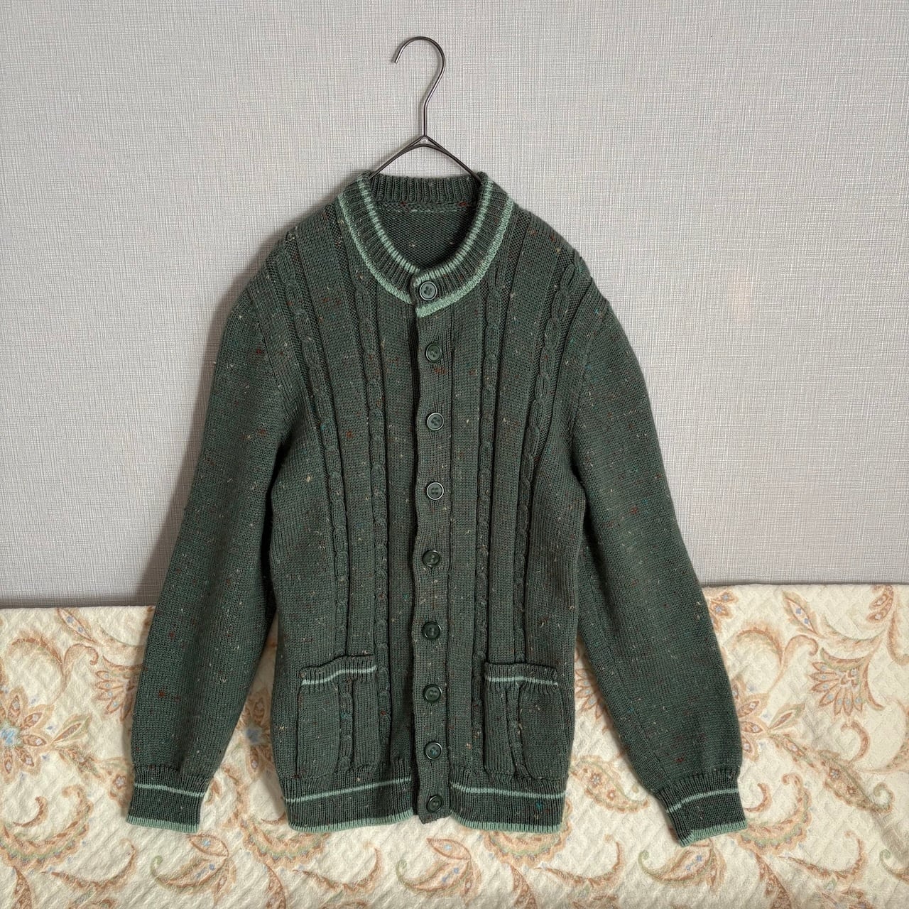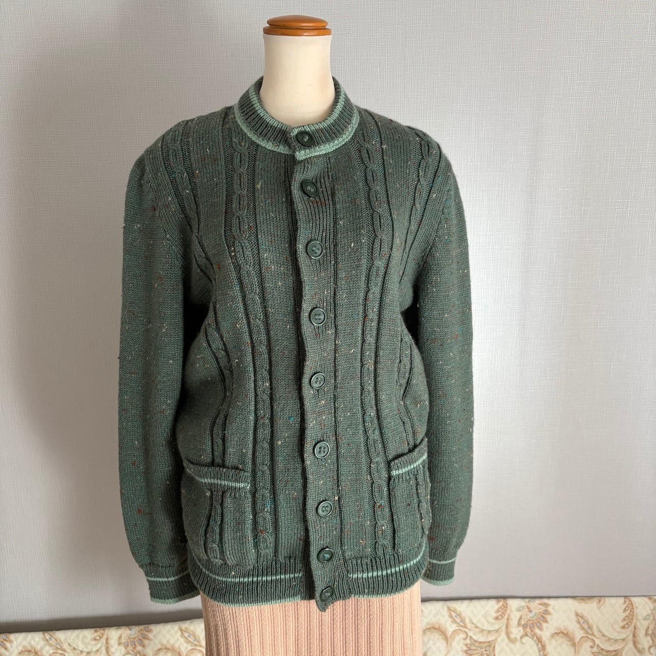 90s モスグリーン ニットカーディガン 昭和レトロヴィンテージ古着