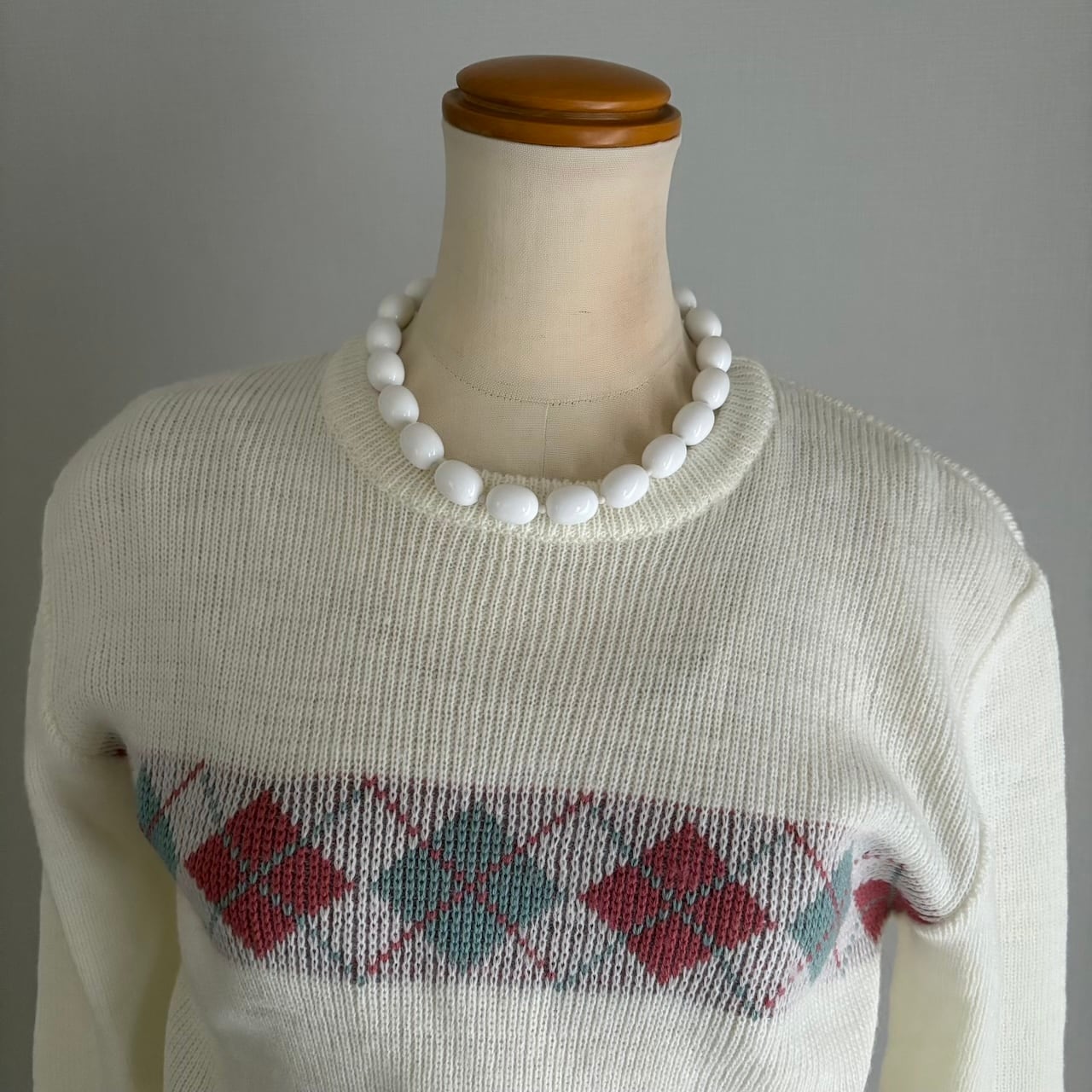 80s チョーカー丈 ポップネックレス ホワイト 昭和レトロヴィンテージ アクセサリー