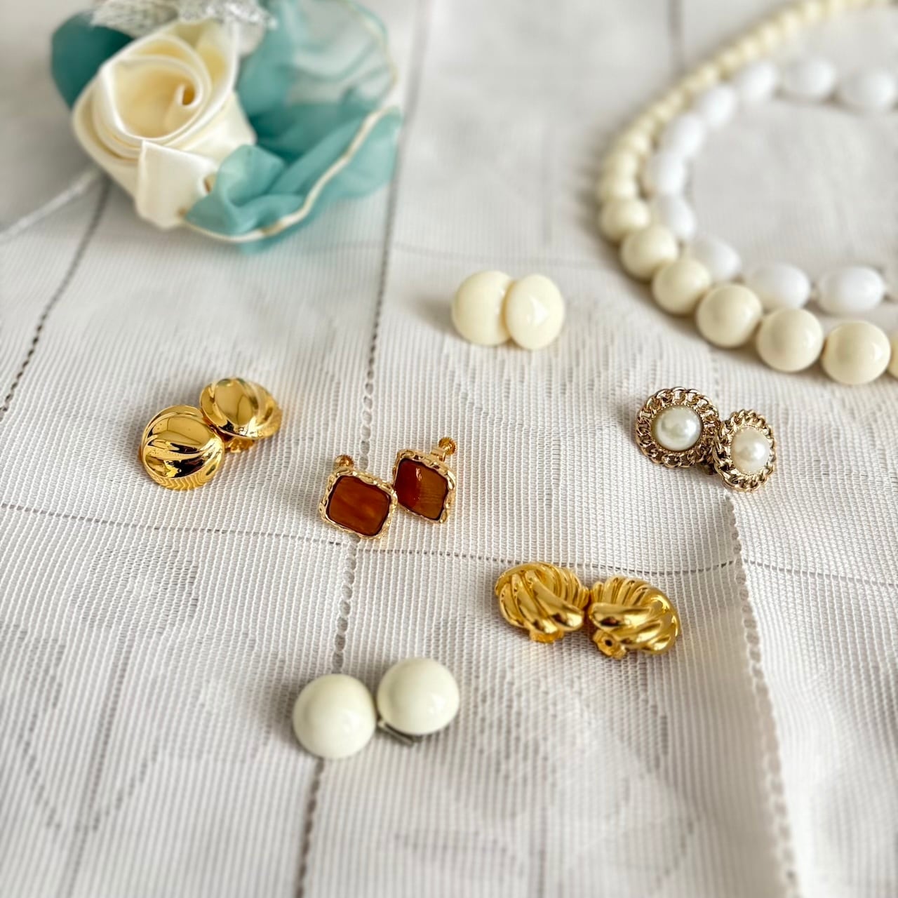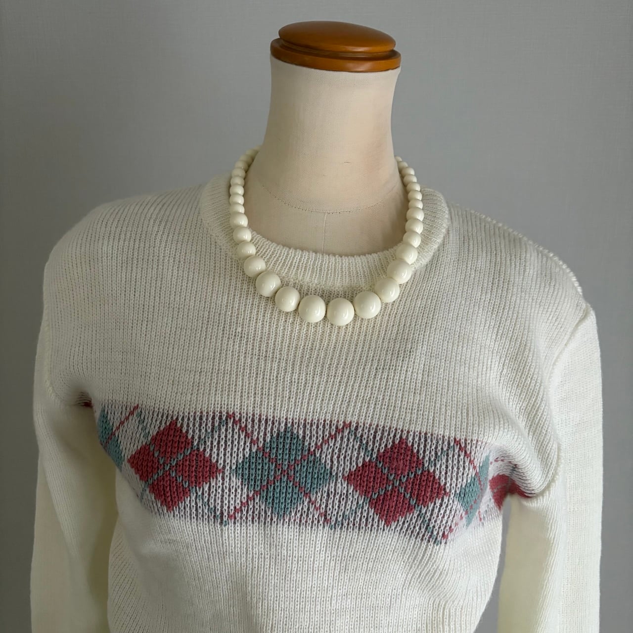 80s ポップネックレス ホワイト 昭和レトロヴィンテージ アクセサリー