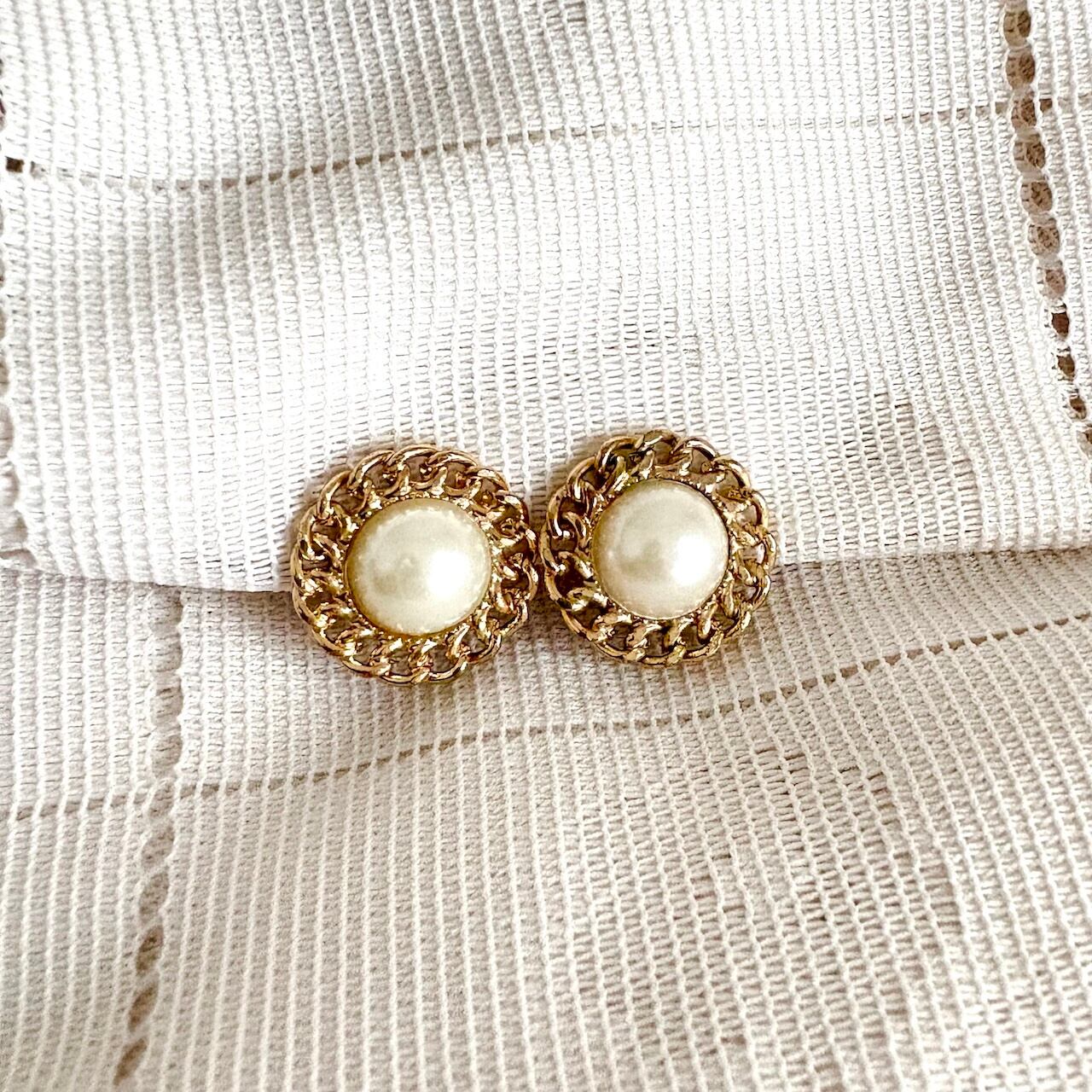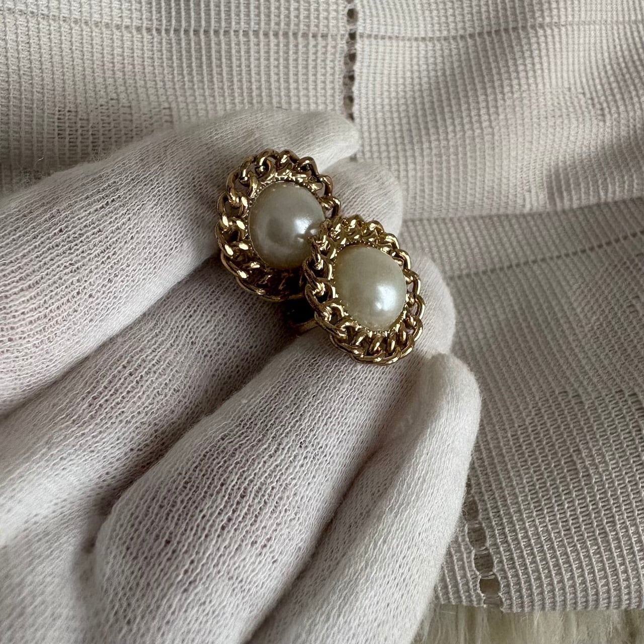 ゴールド縁 パール イヤリング 昭和レトロヴィンテージ アクセサリー