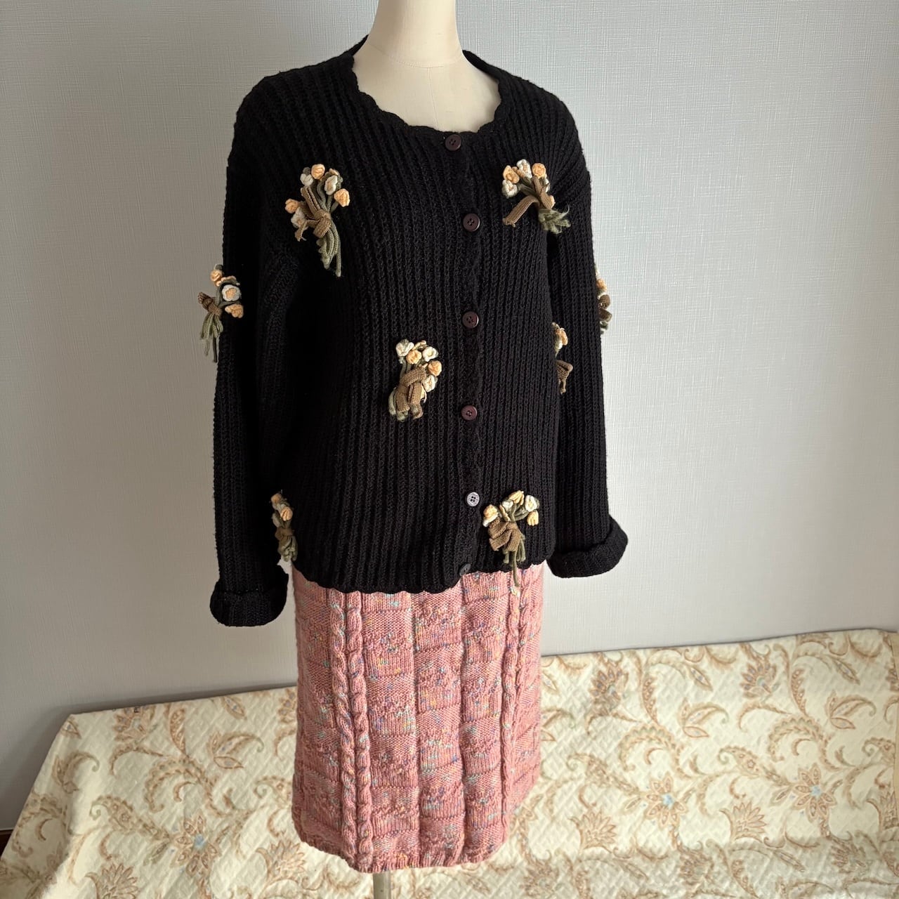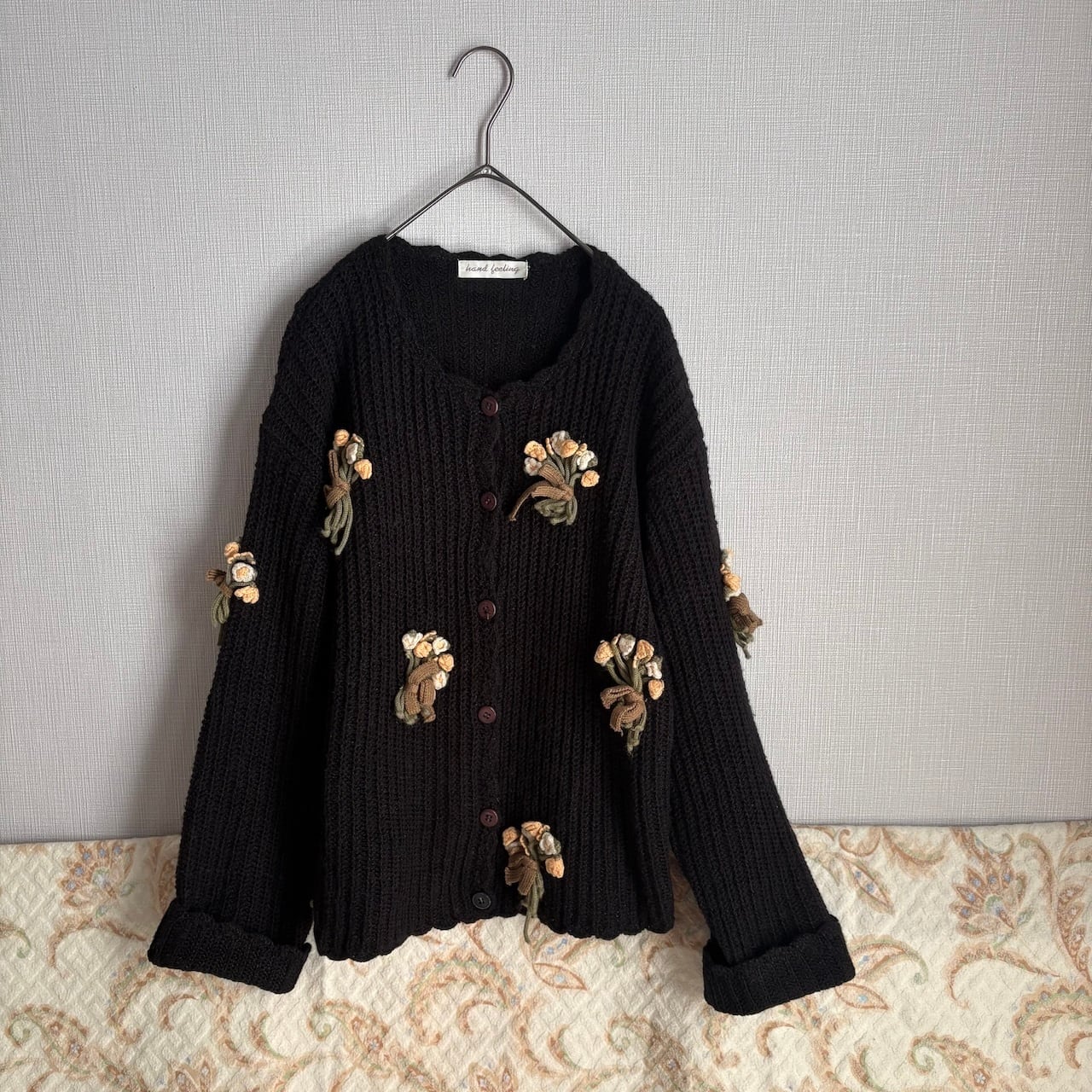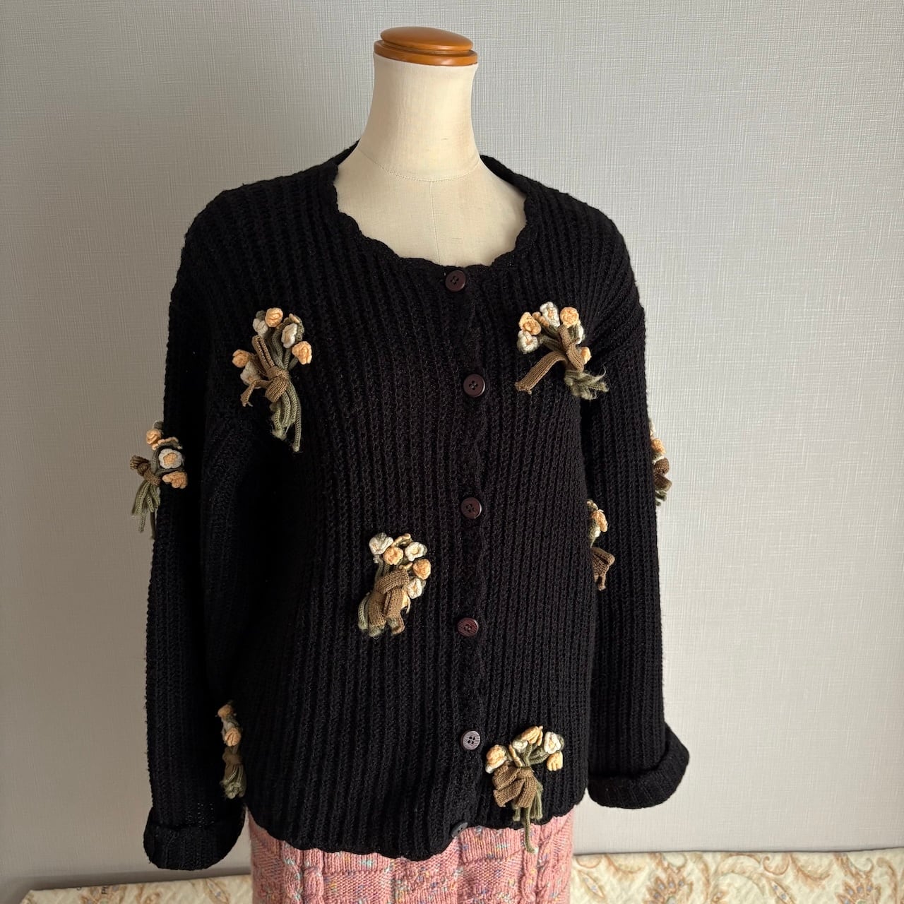 80s 花束飾り付き ニットカーディガン 昭和レトロヴィンテージ古着