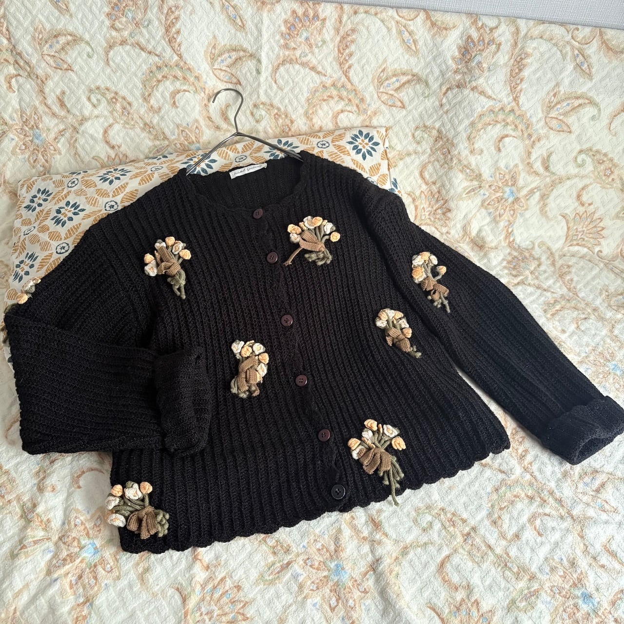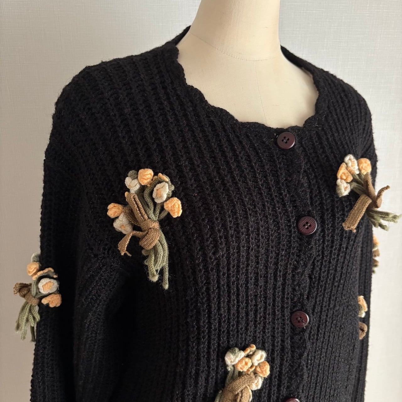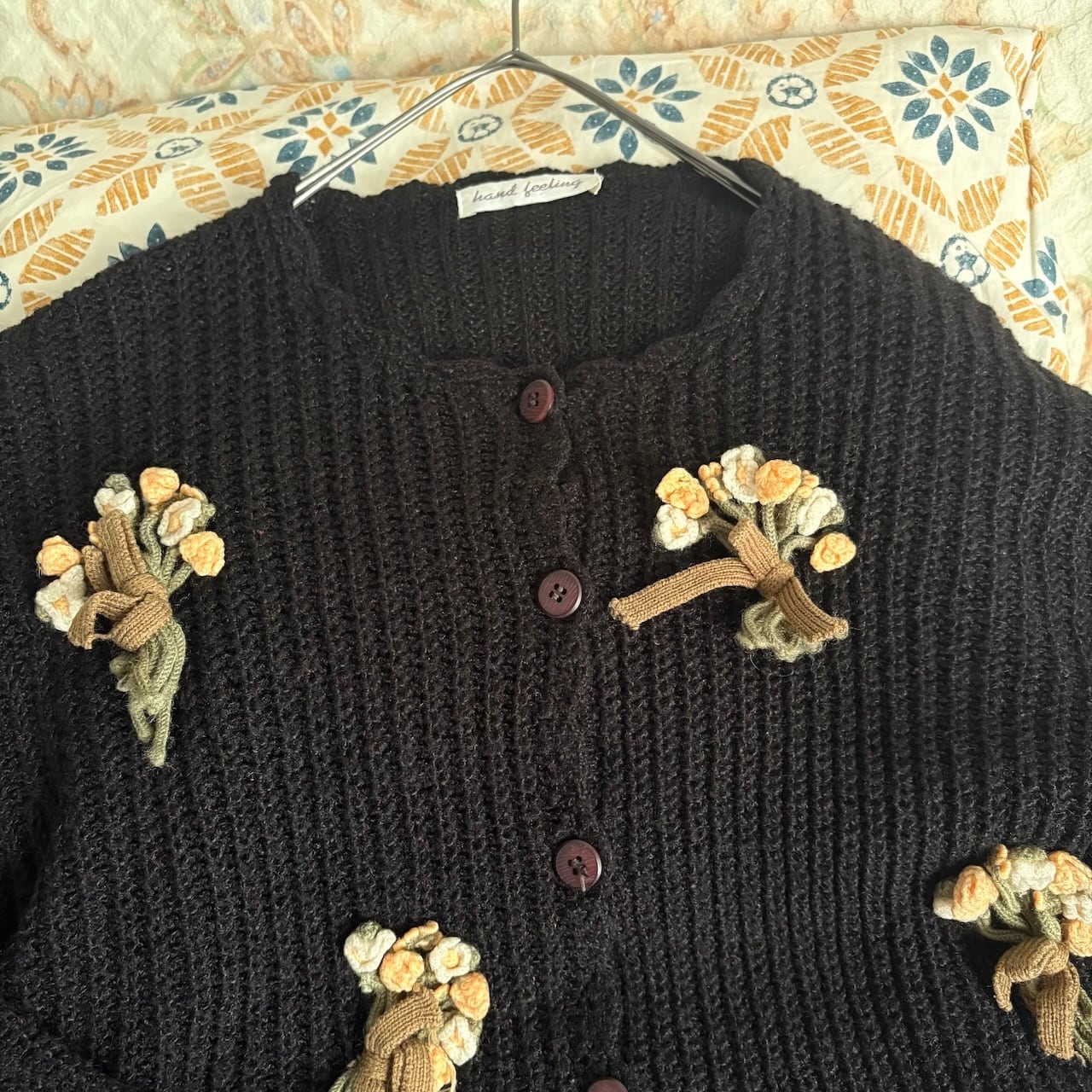 80s 花束飾り付き ニットカーディガン 昭和レトロヴィンテージ古着