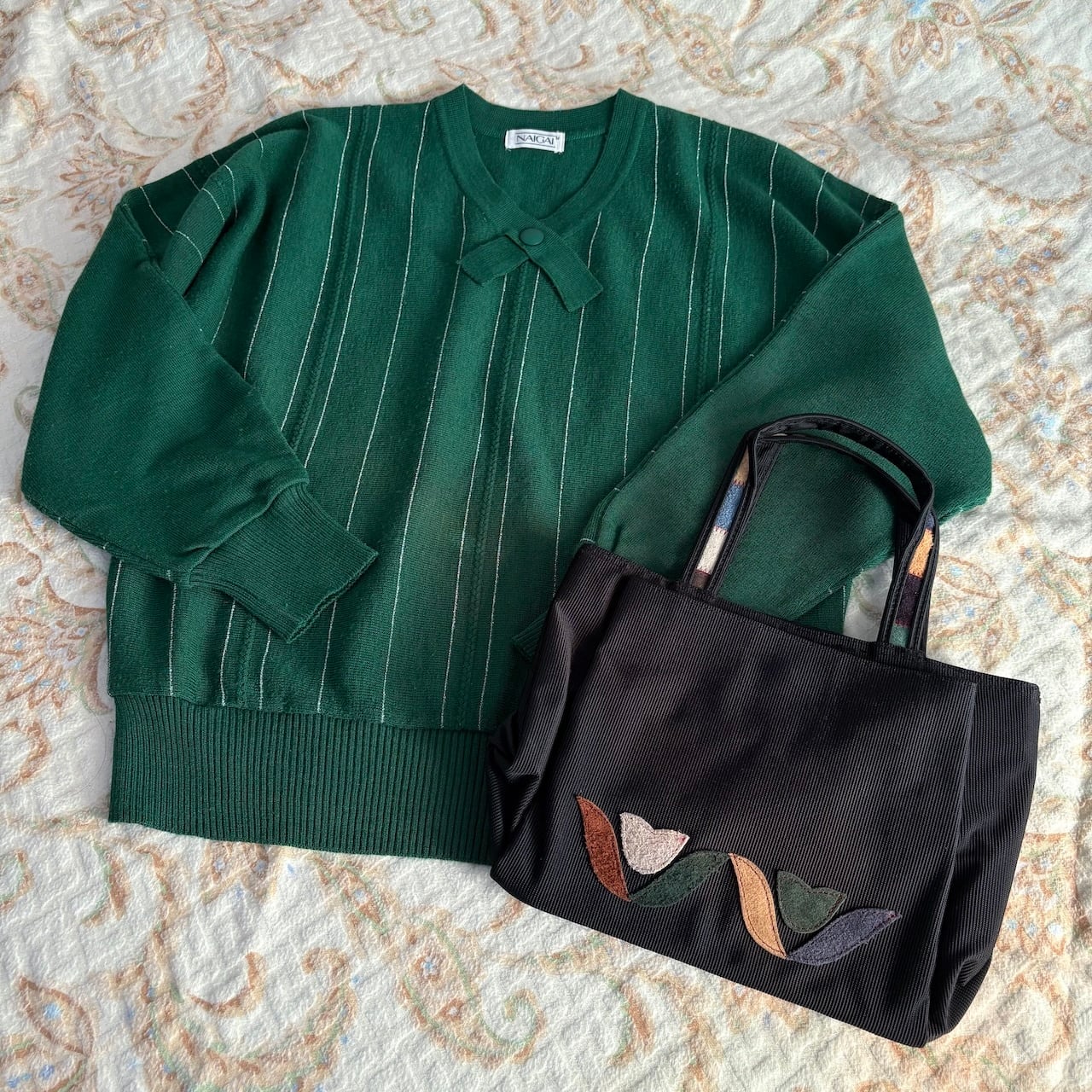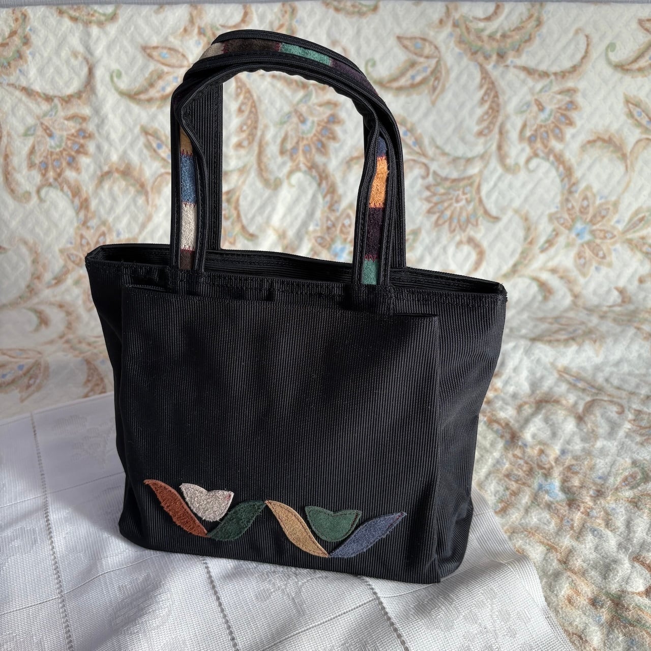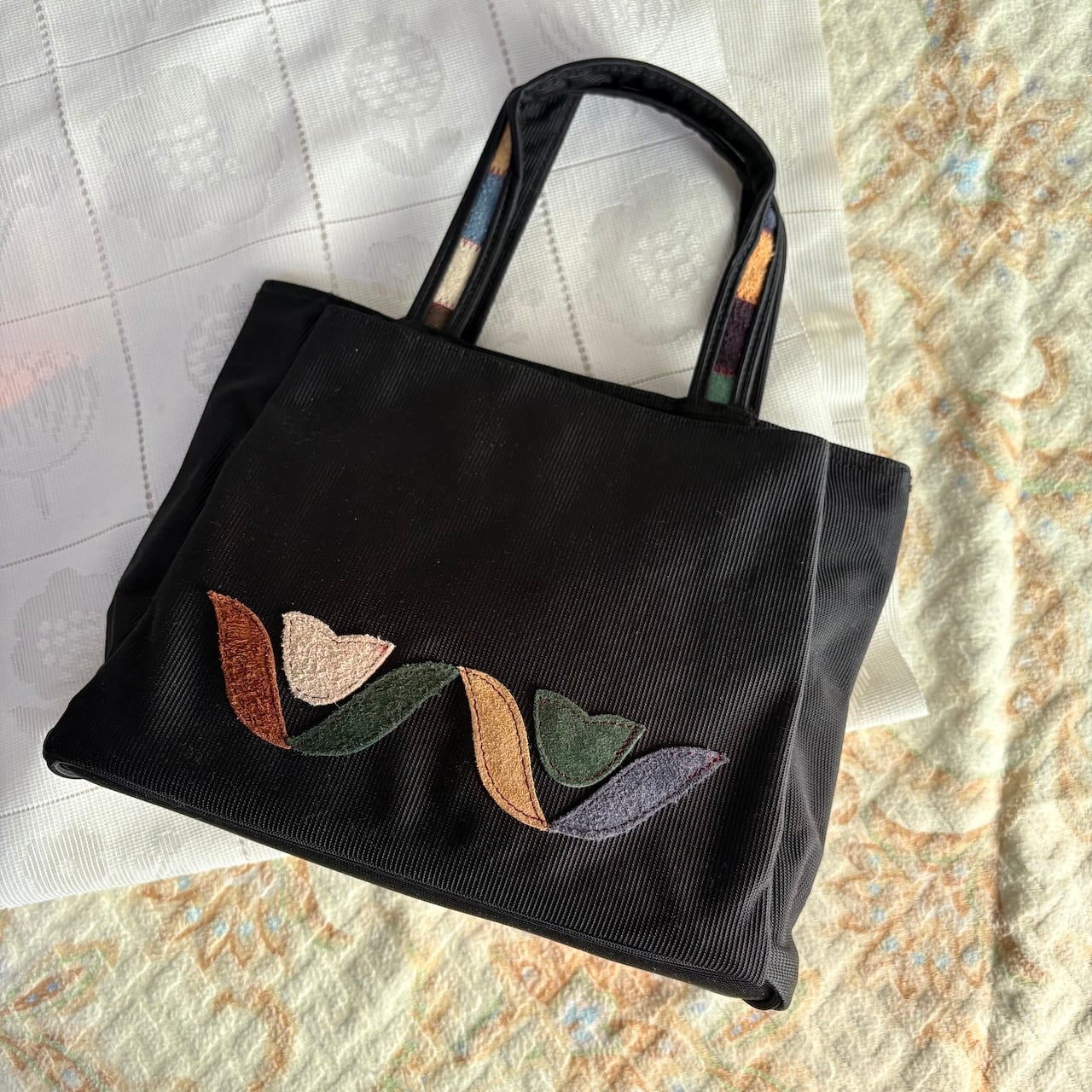 80s チューリップアップリケ付き トートバッグ 昭和レトロヴィンテージ古着