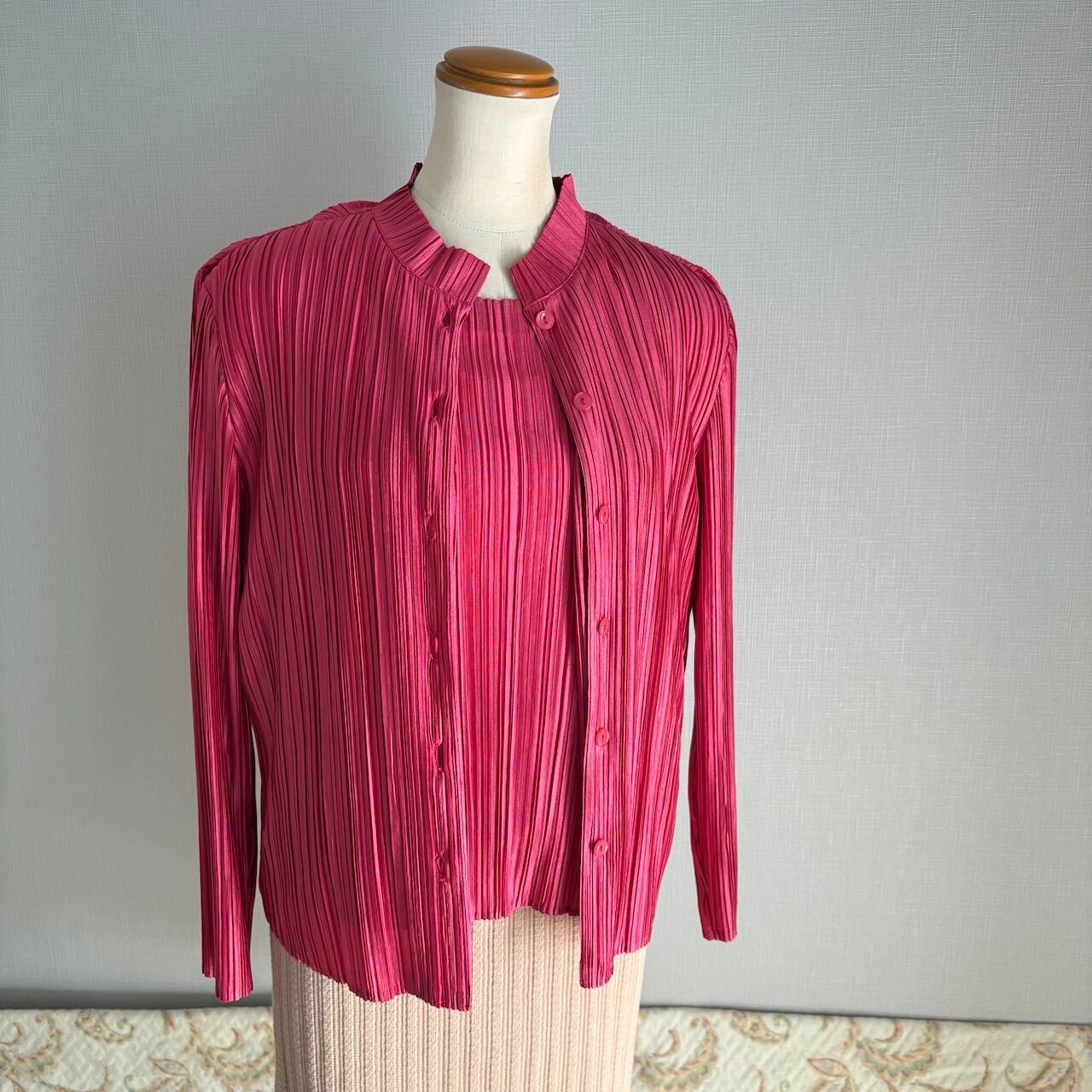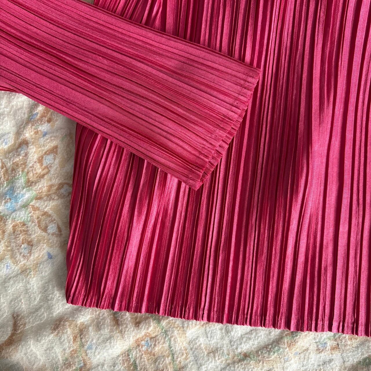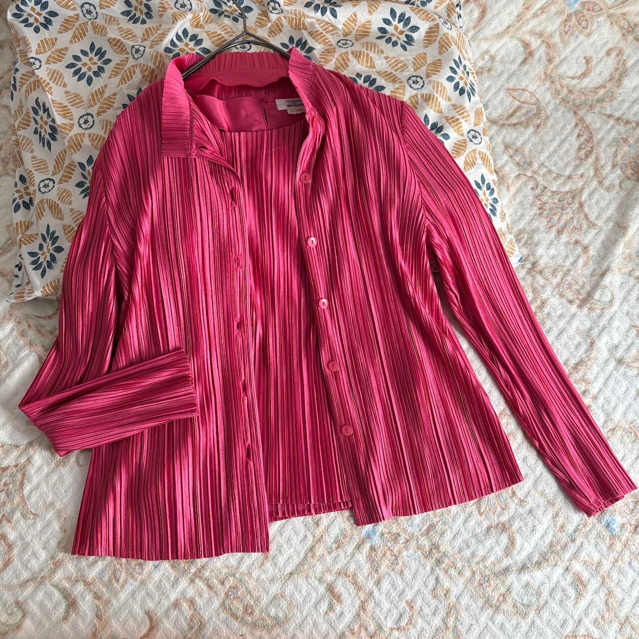 80s アンサンブルブラウス ローズピンク プリーツ 昭和レトロヴィンテージ古着