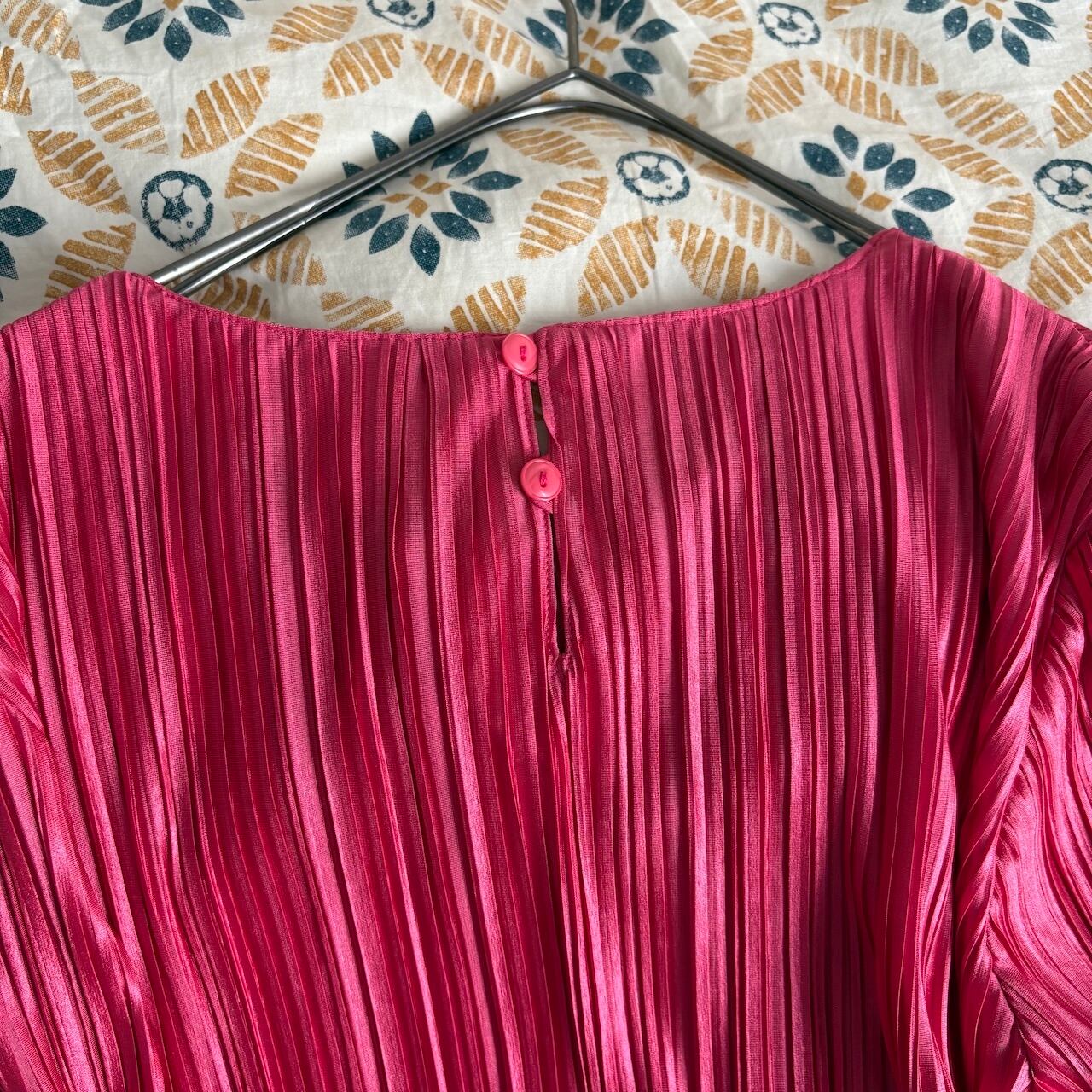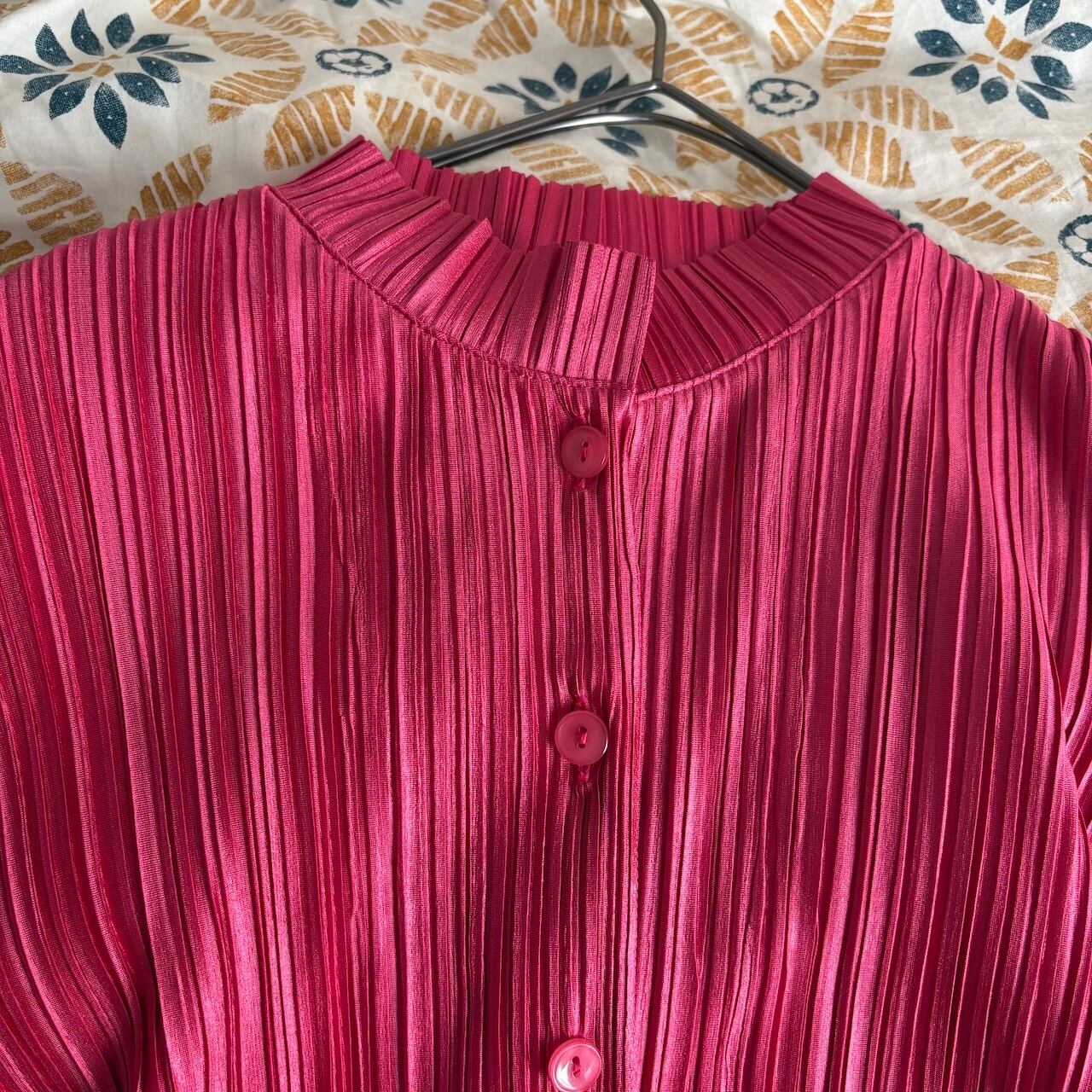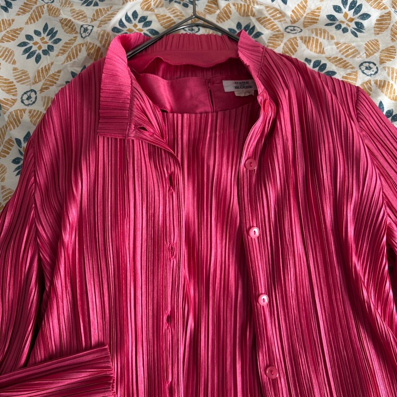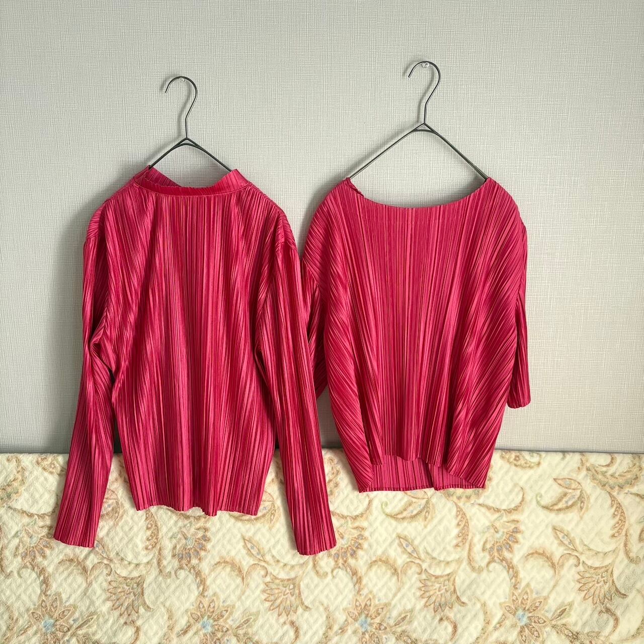 80s アンサンブルブラウス ローズピンク プリーツ 昭和レトロヴィンテージ古着
