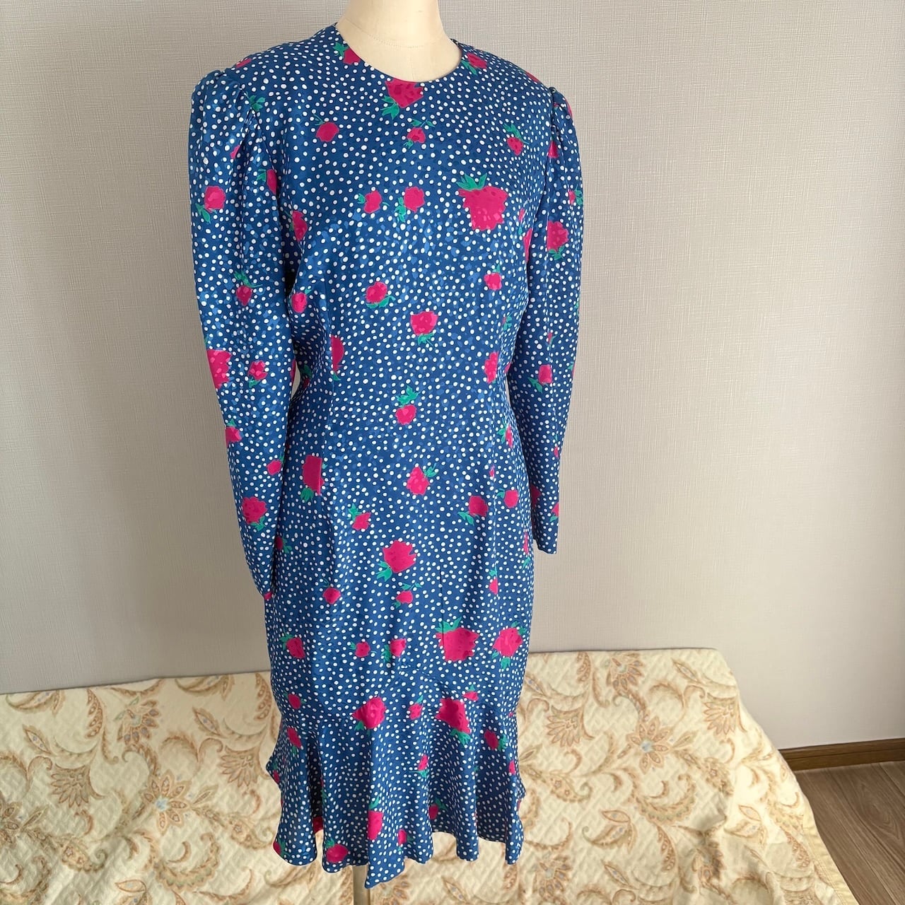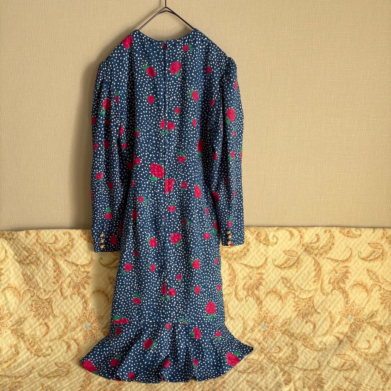 80s HANAE MORI ばら柄ワンピース 昭和レトロヴィンテージ古着