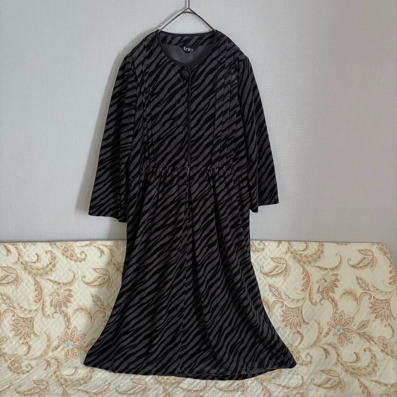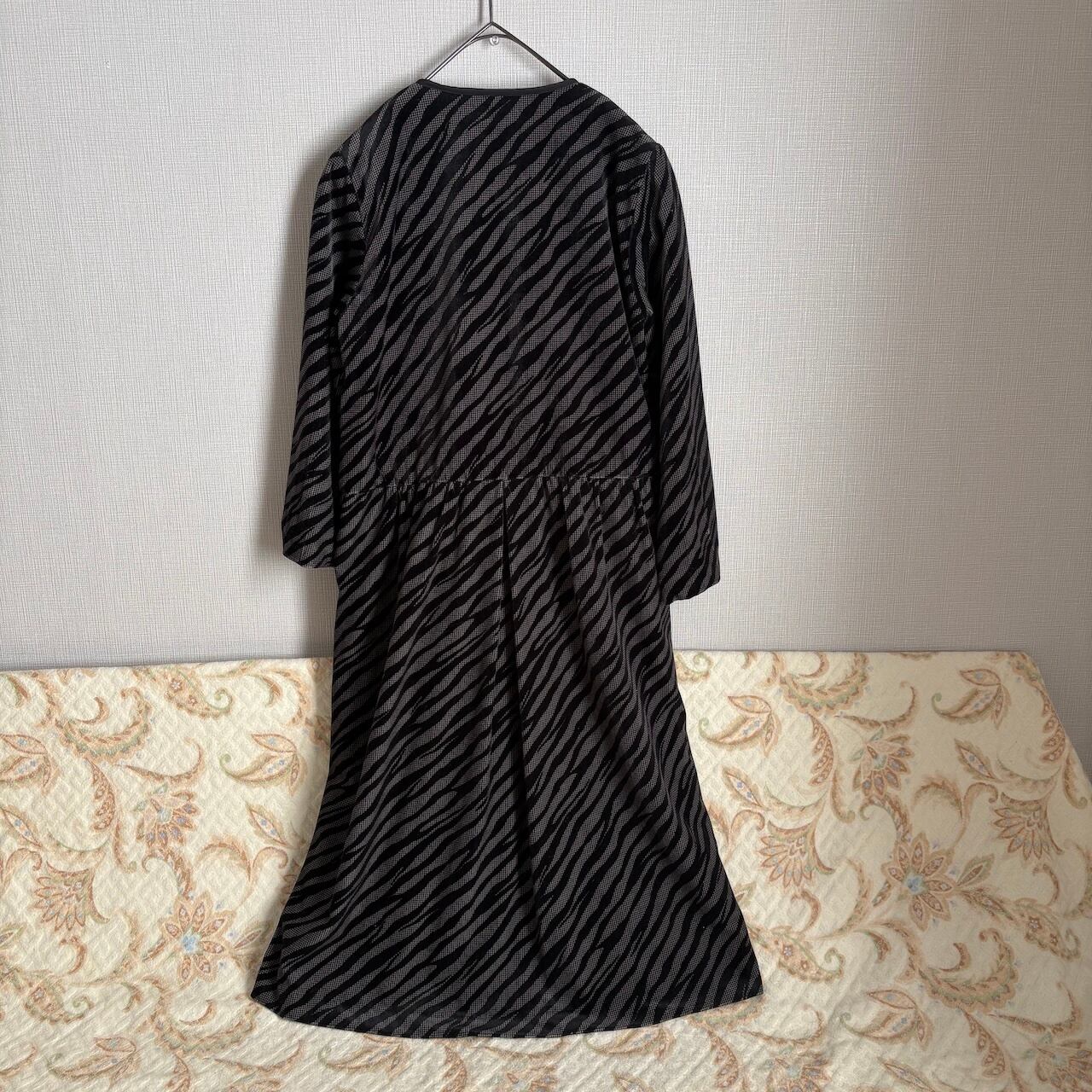 70s ベルベット ワンピース 縞模様 昭和レトロヴィンテージ古着