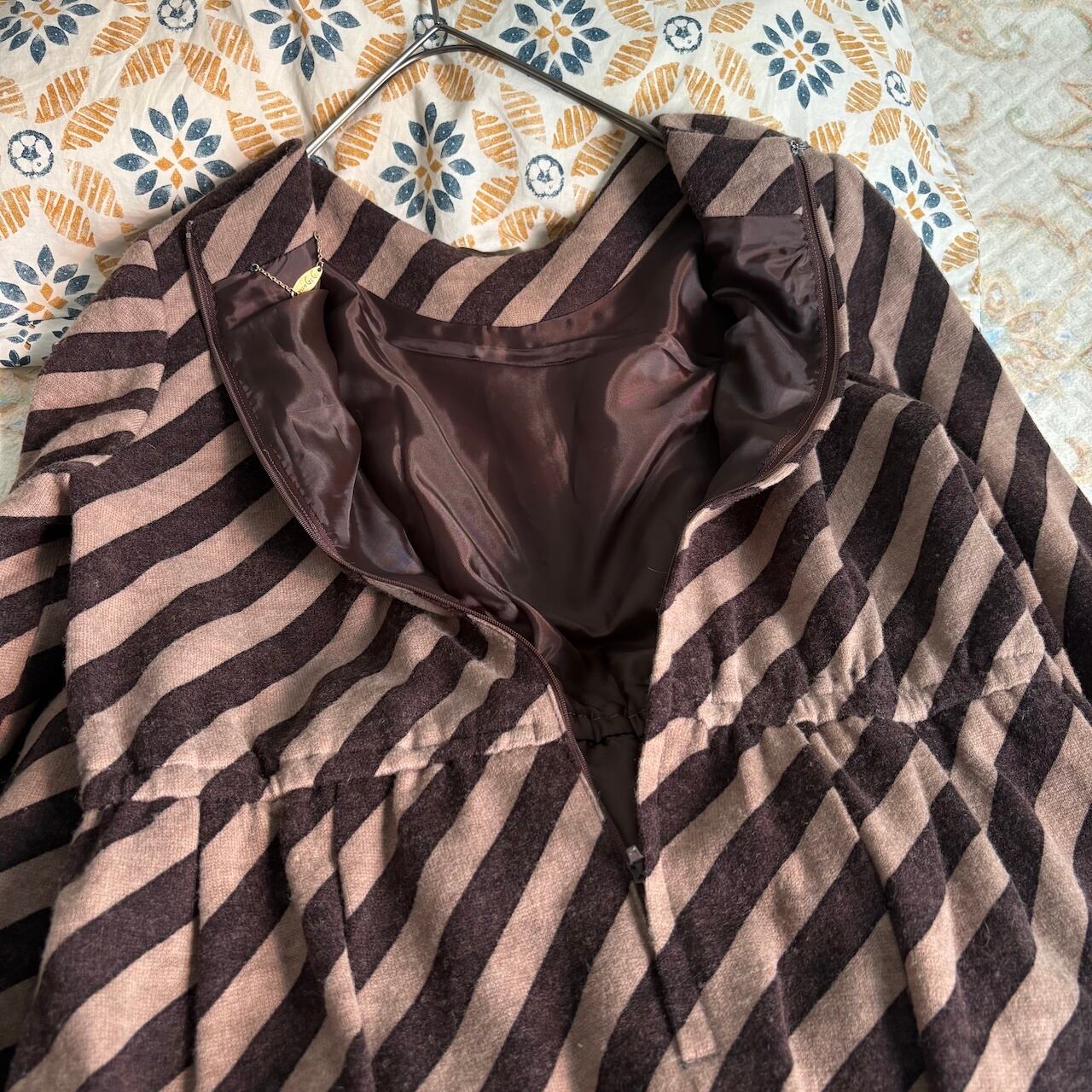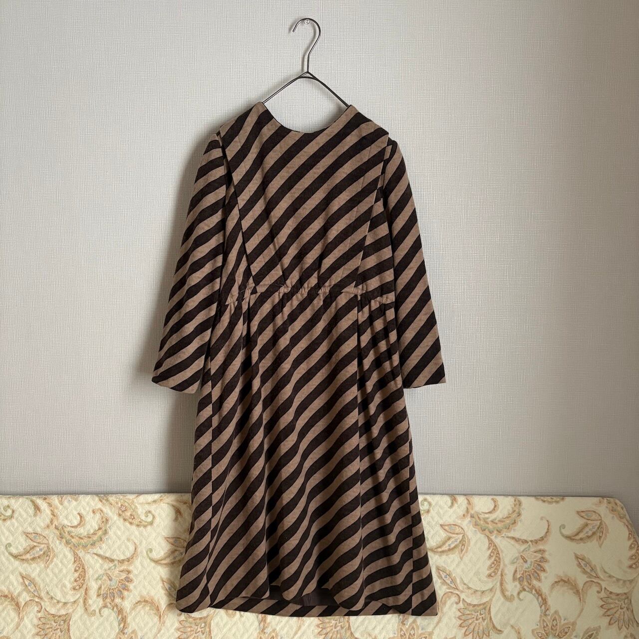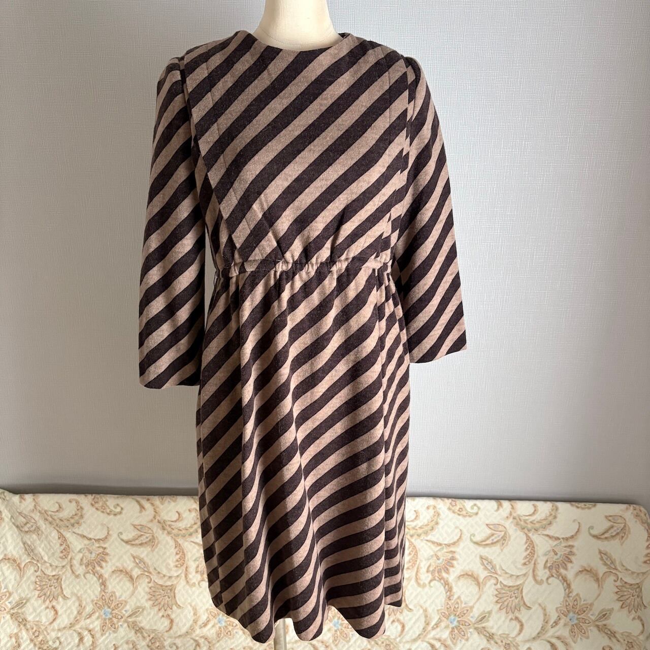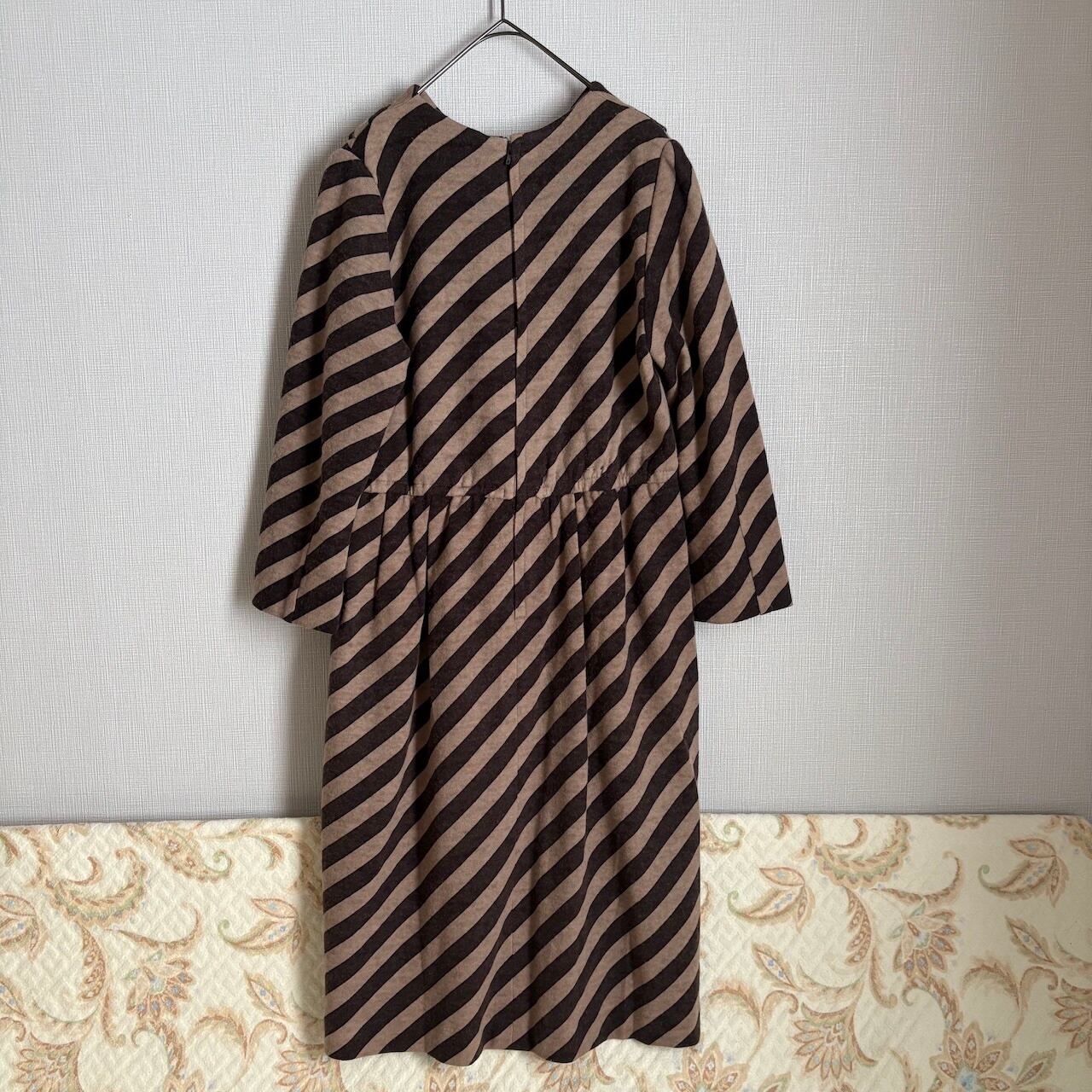 70s ウール ワンピース ブラウン系 斜めストライプ 昭和レトロヴィンテージ古着