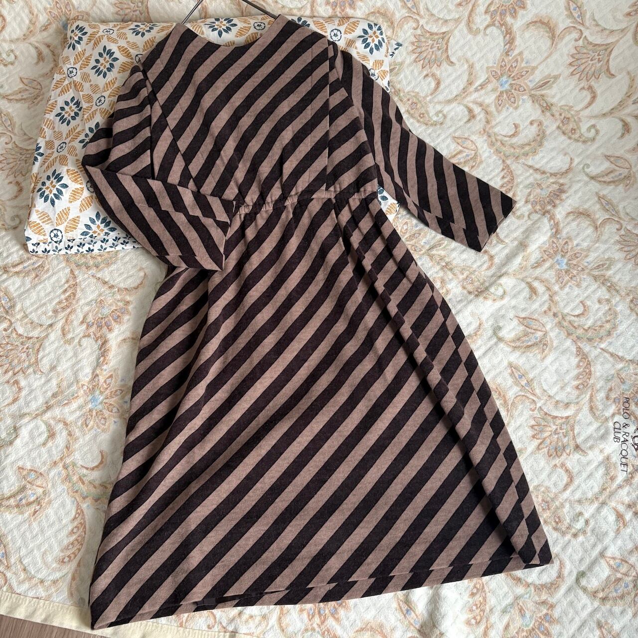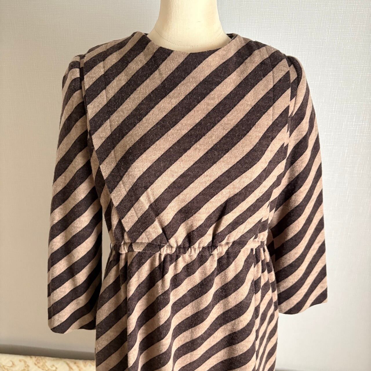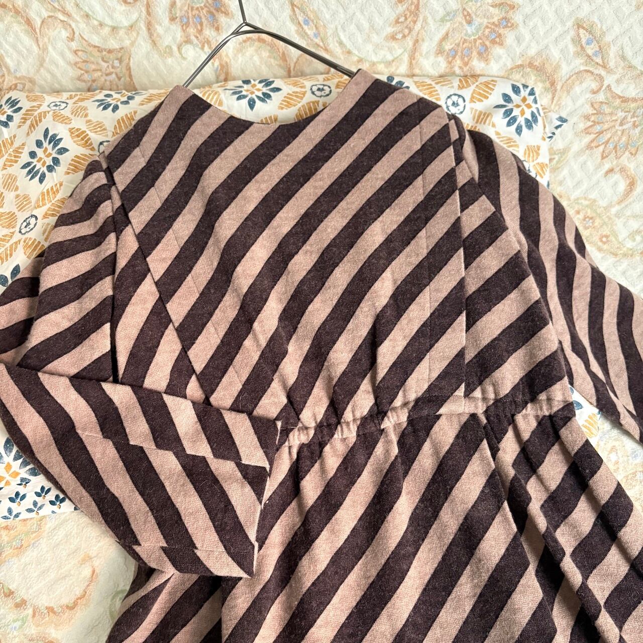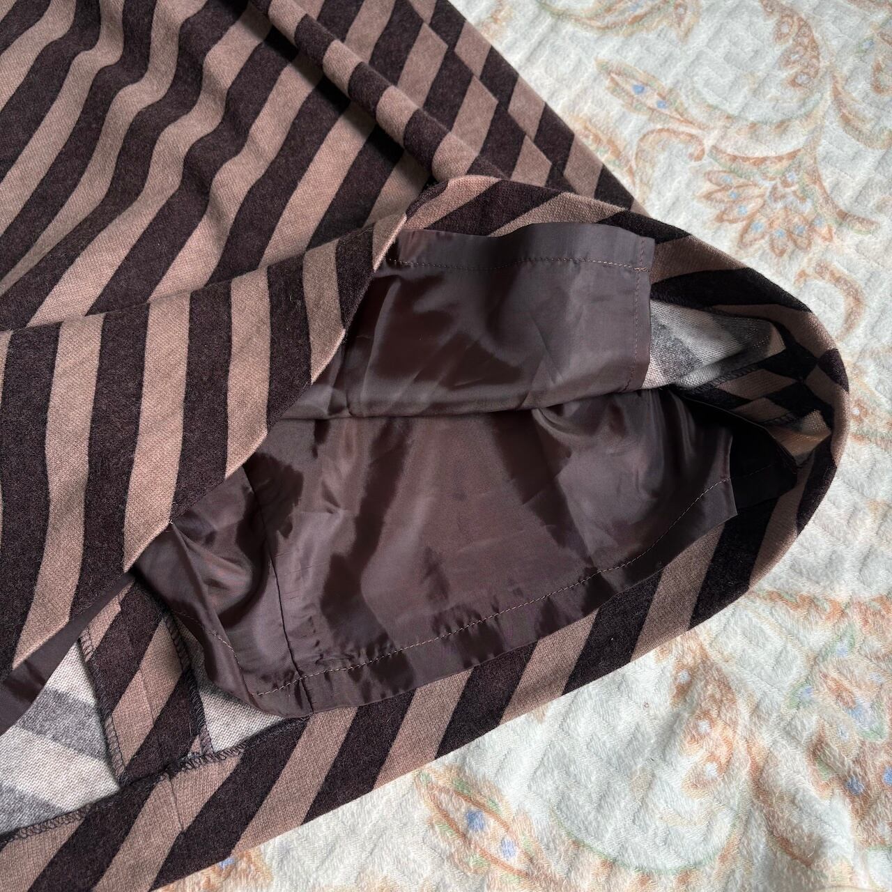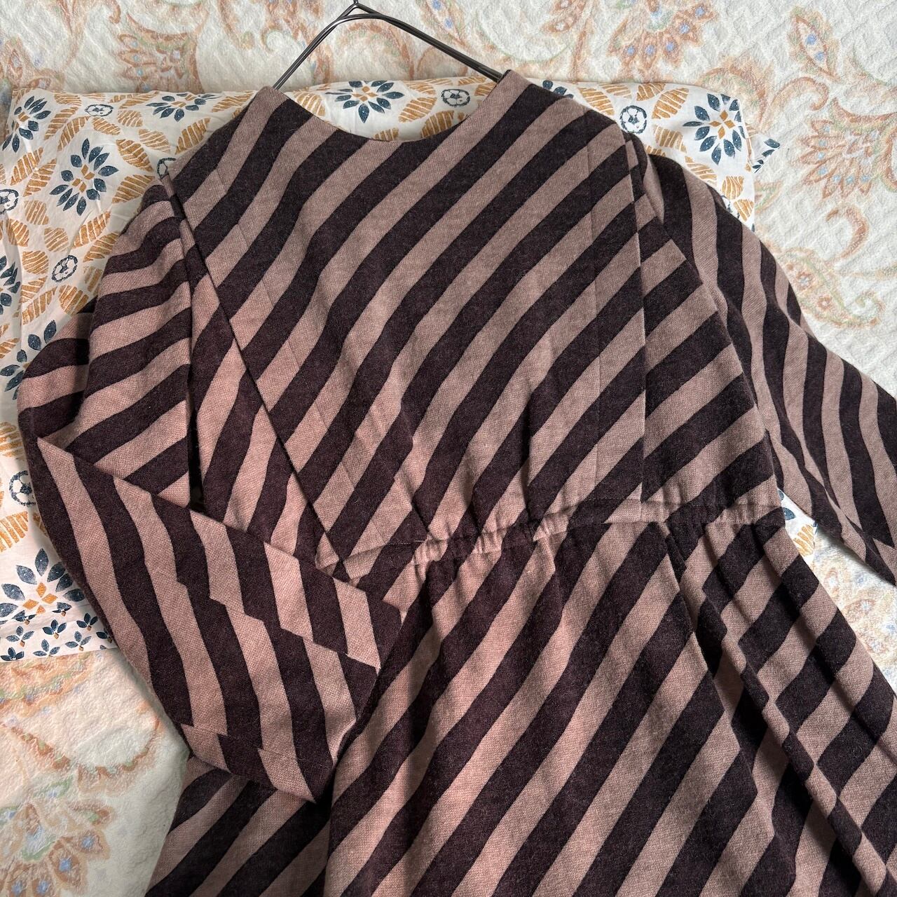 70s ウール ワンピース ブラウン系 斜めストライプ 昭和レトロヴィンテージ古着