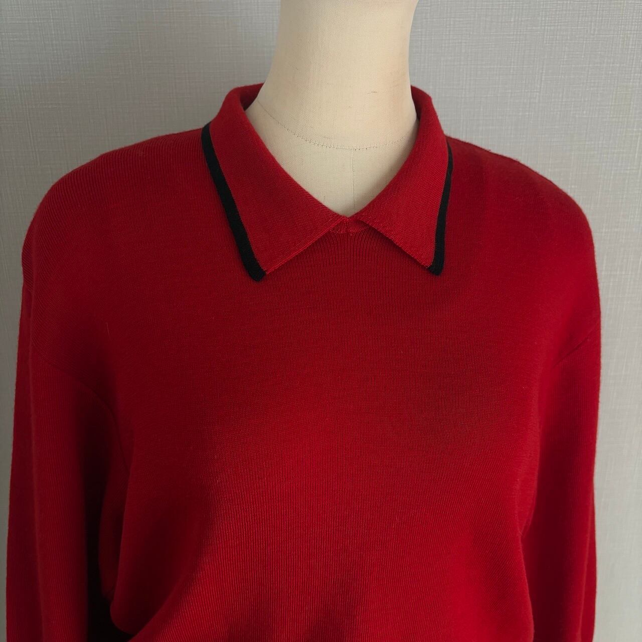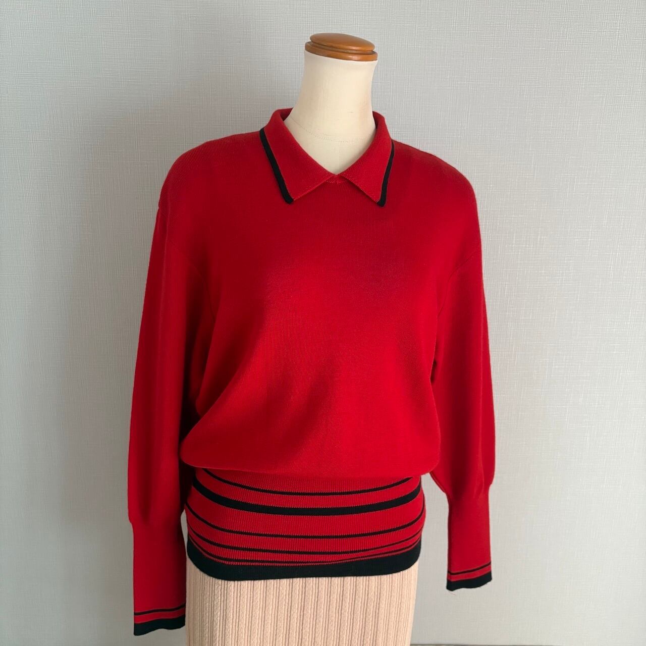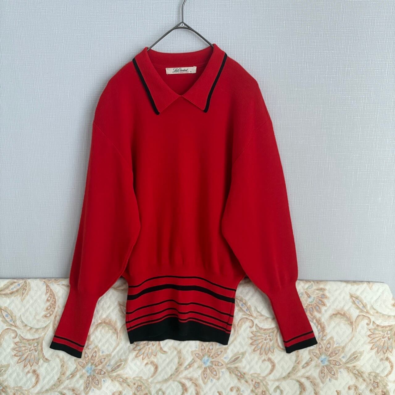 70s 赤×黒 ニットセーター ウール 昭和レトロヴィンテージ古着