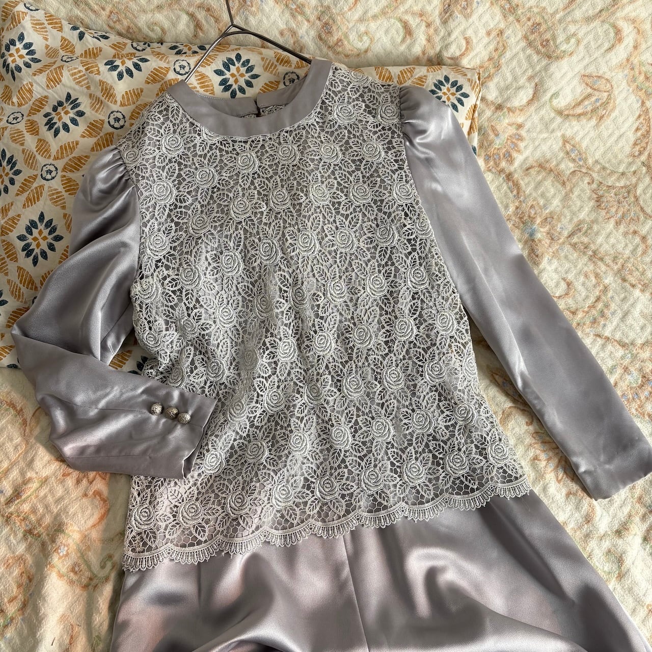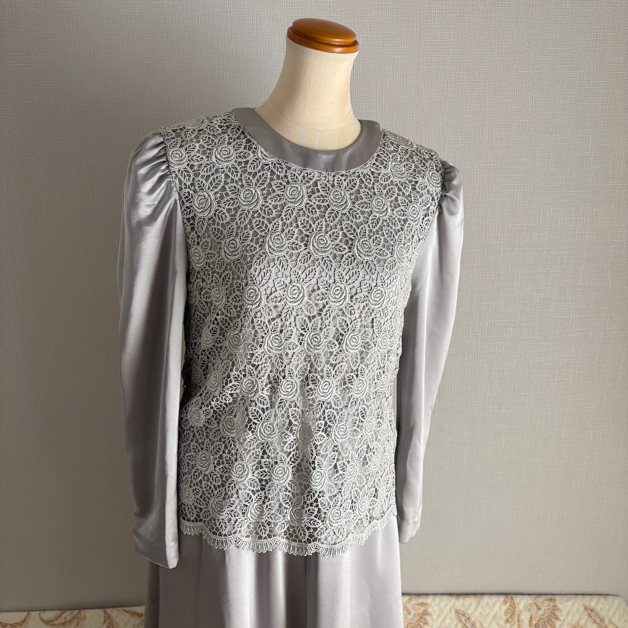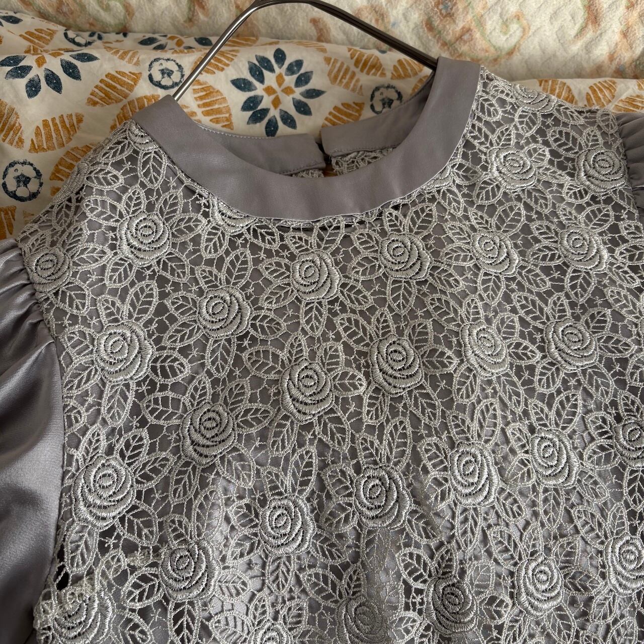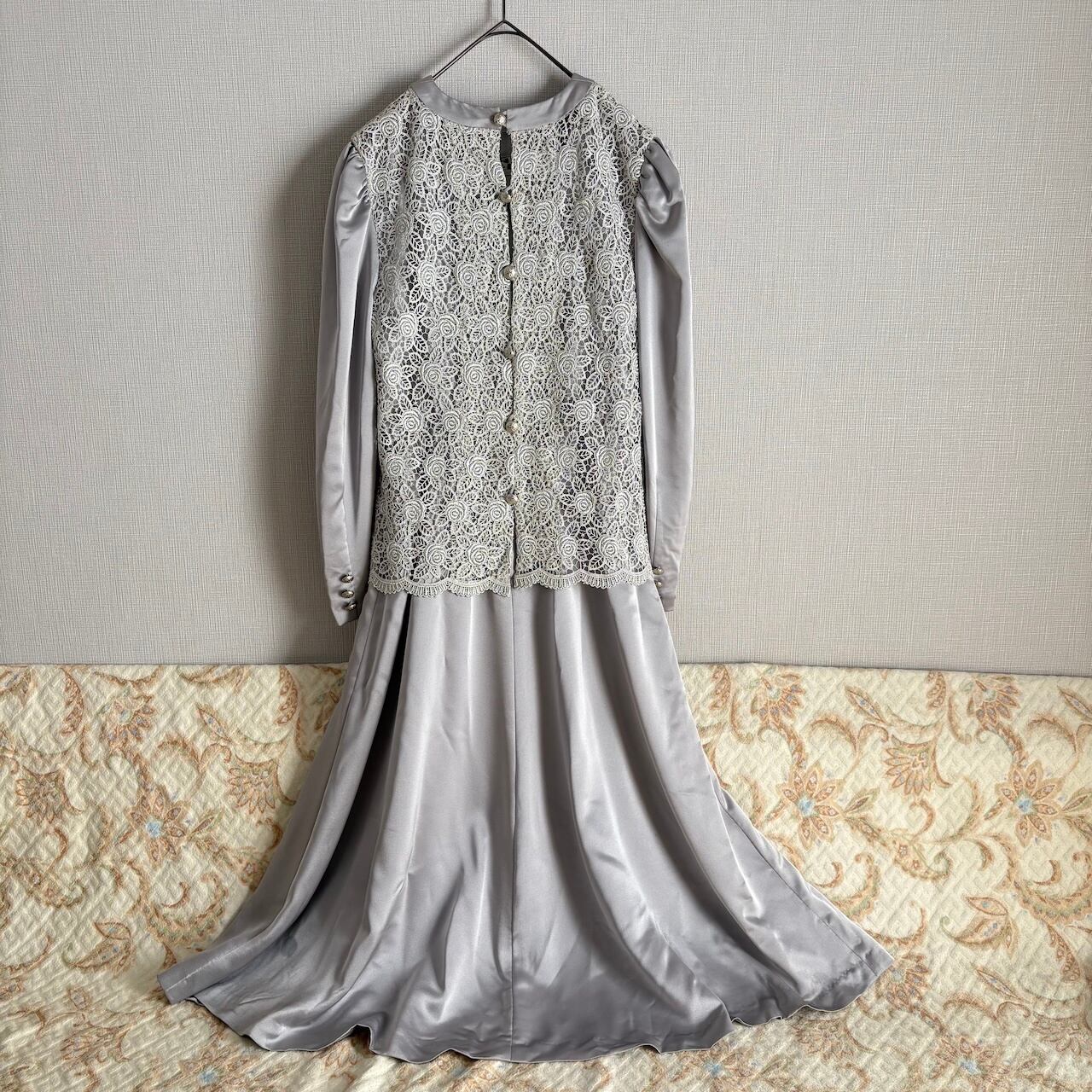 80s グレー×レース ドレスワンピース 昭和レトロヴィンテージ古着