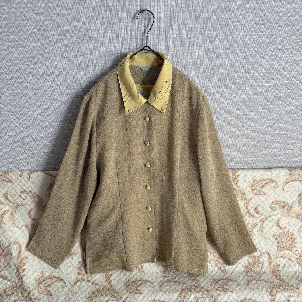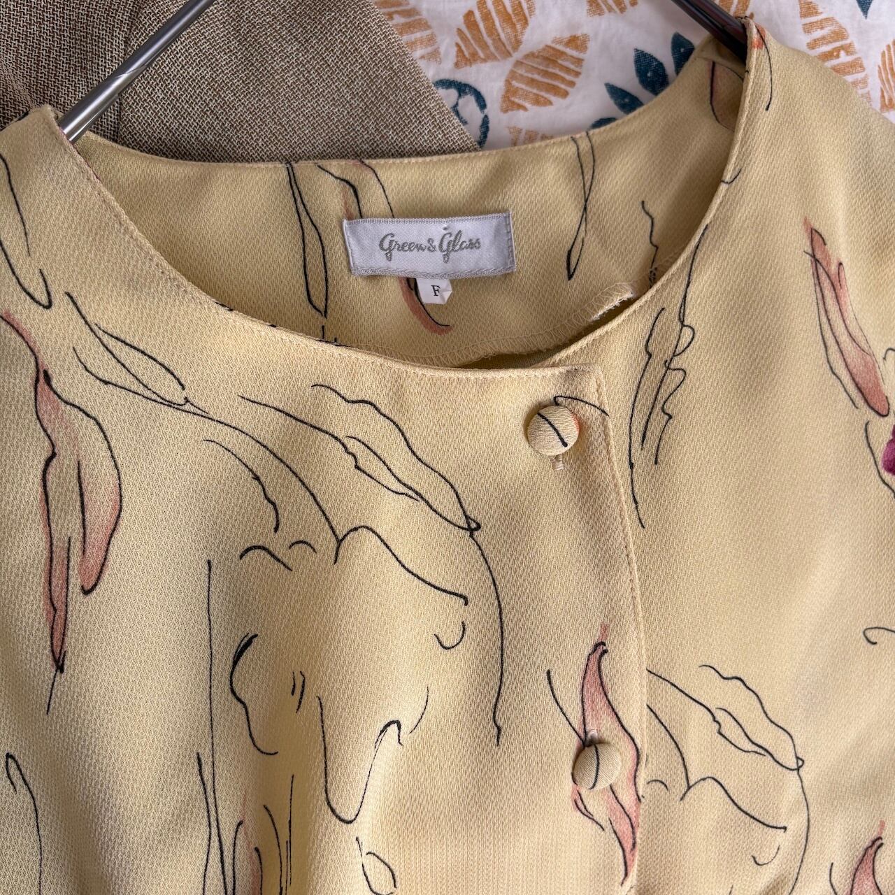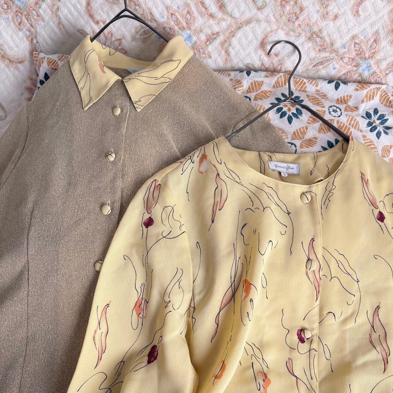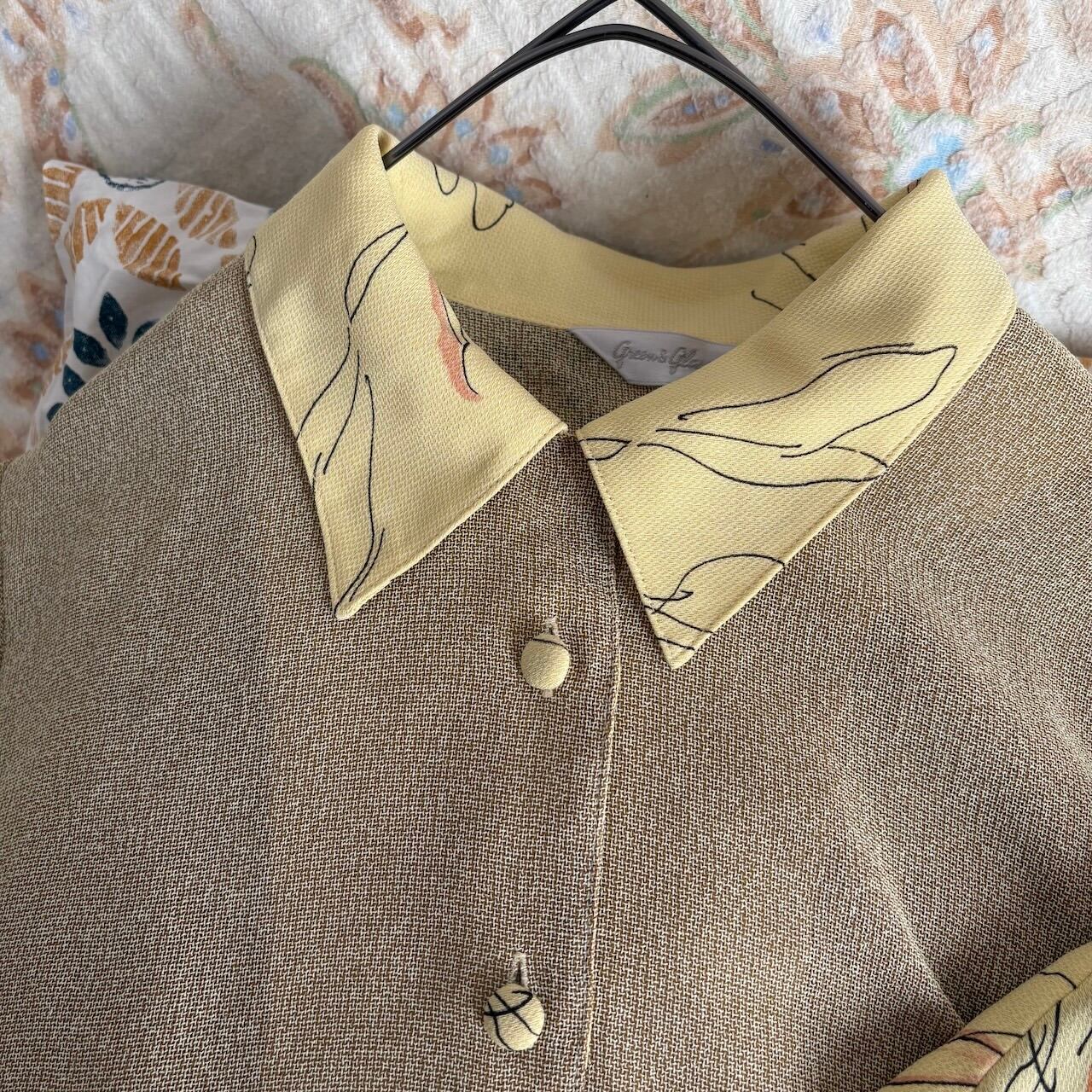 90s ブラウス コンビネゾン ベージュ×イエロー レトロヴィンテージ古着