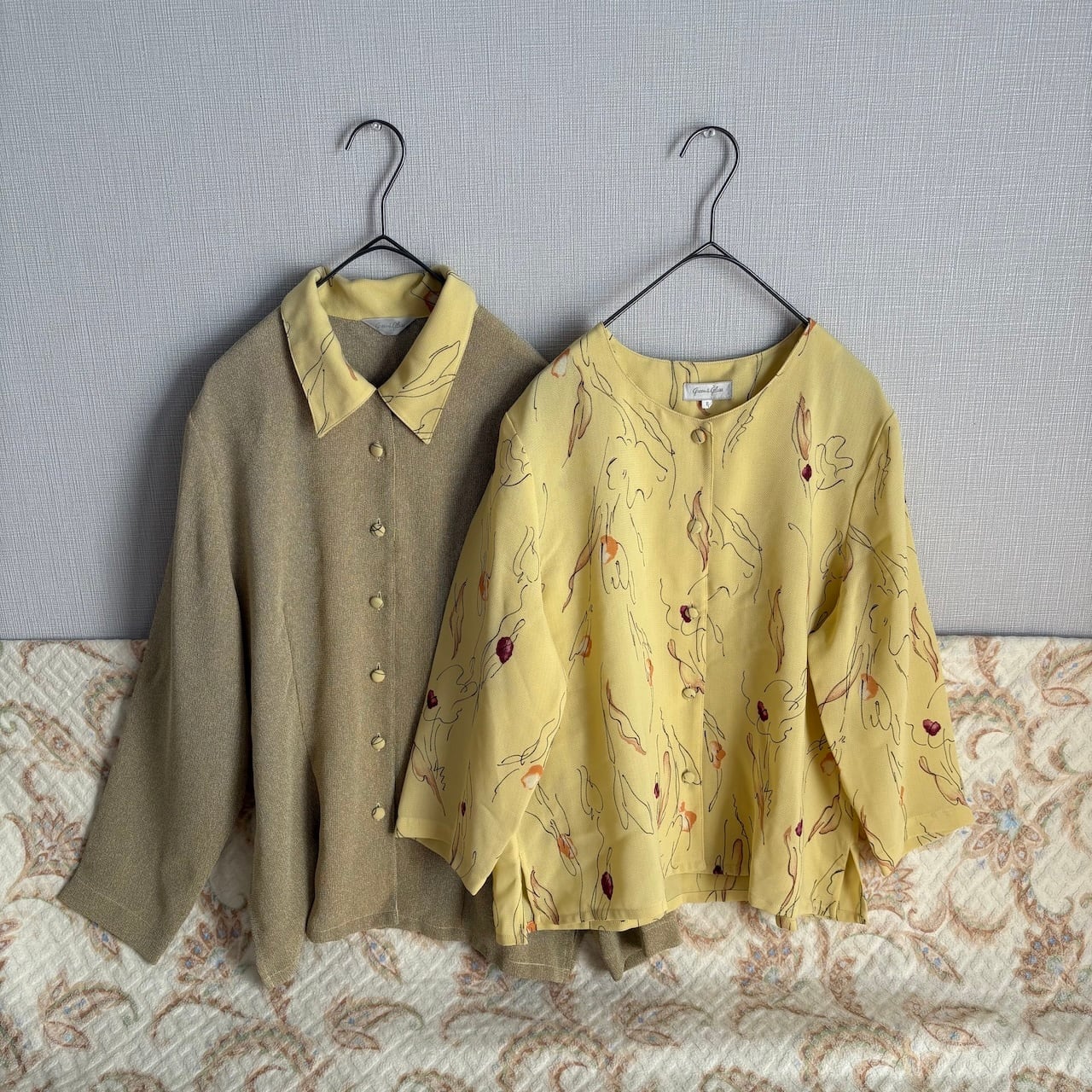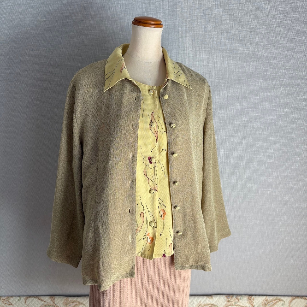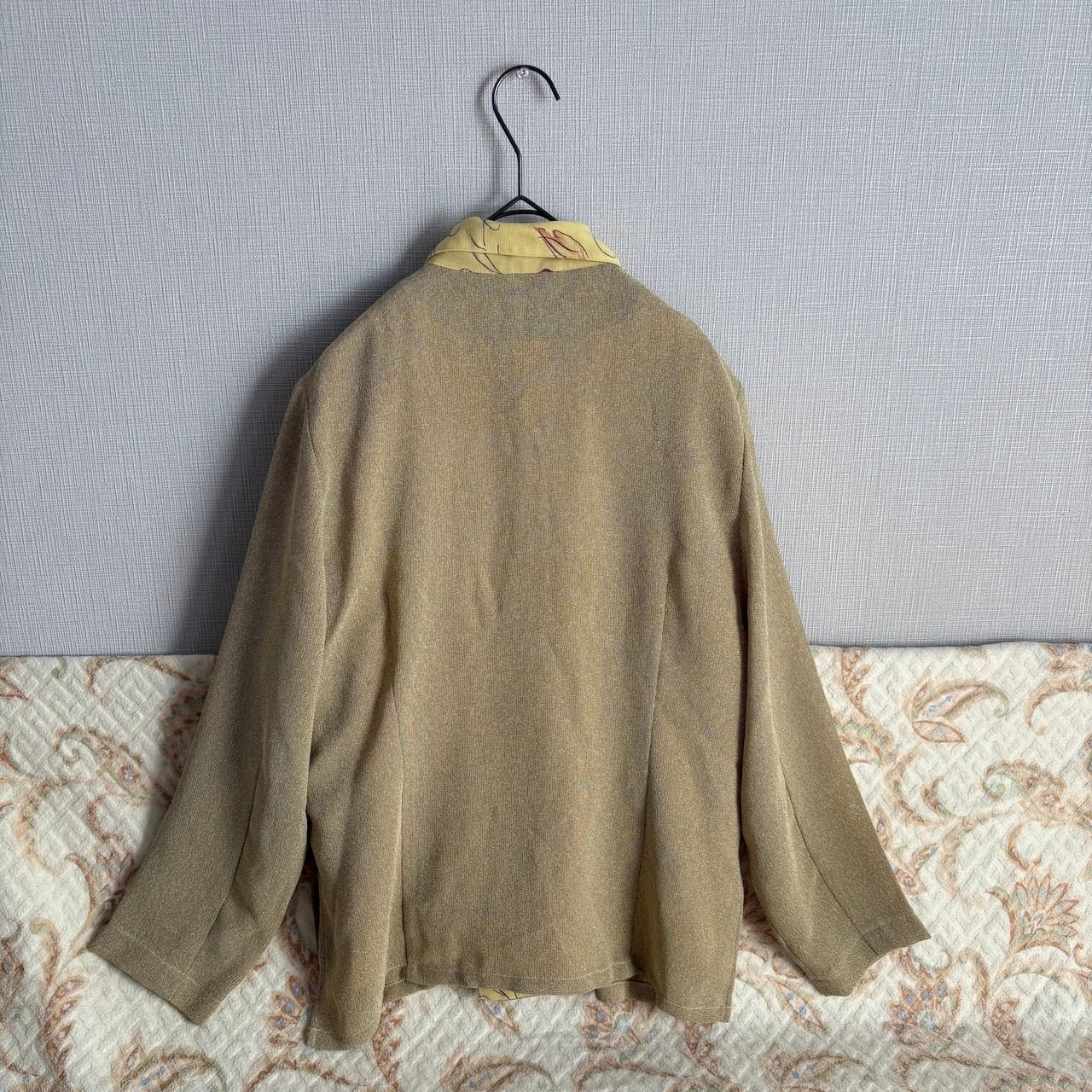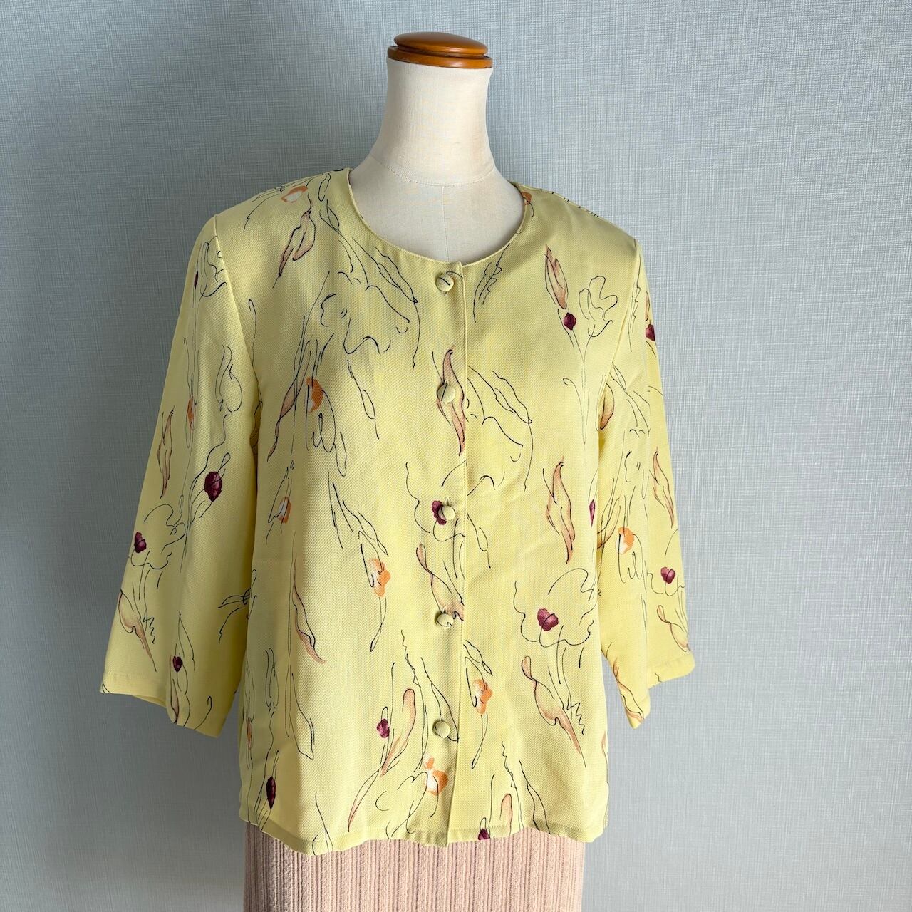 90s ブラウス コンビネゾン ベージュ×イエロー レトロヴィンテージ古着