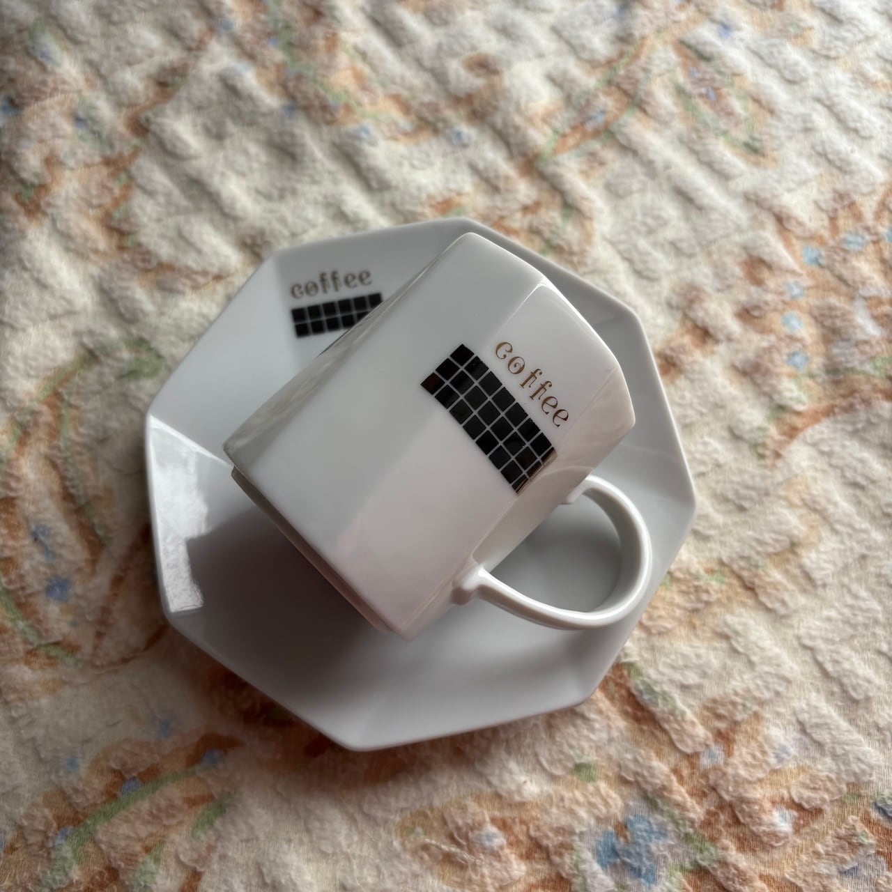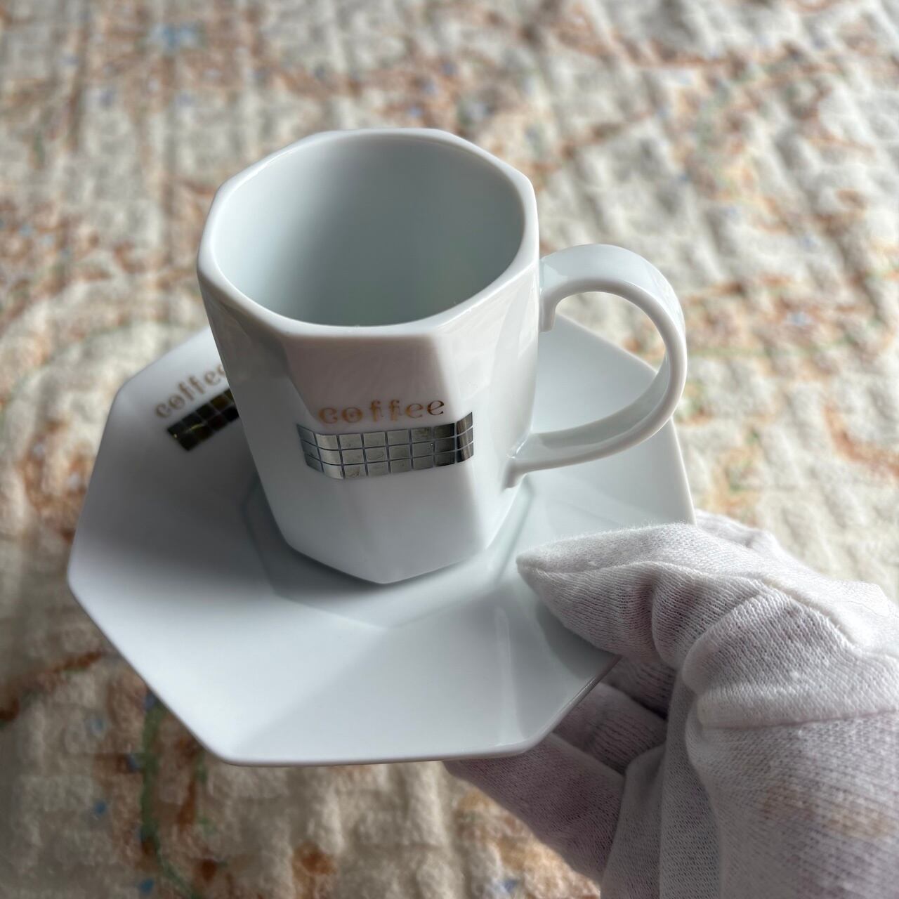70s デミタス カップ&ソーサー 八角形 ホワイト 昭和レトロヴィンテージ 食器