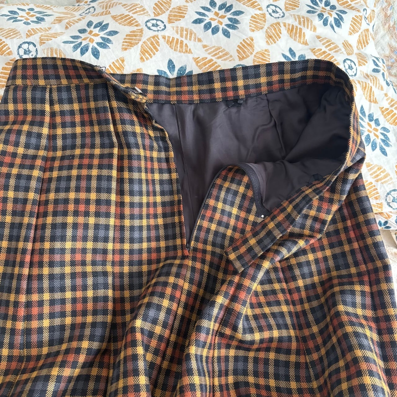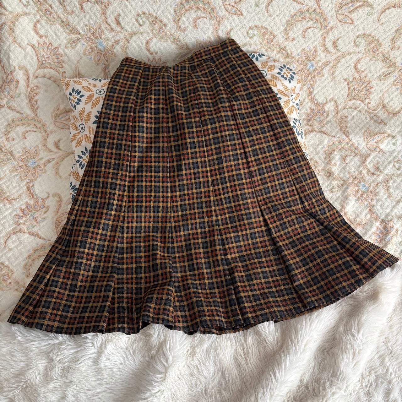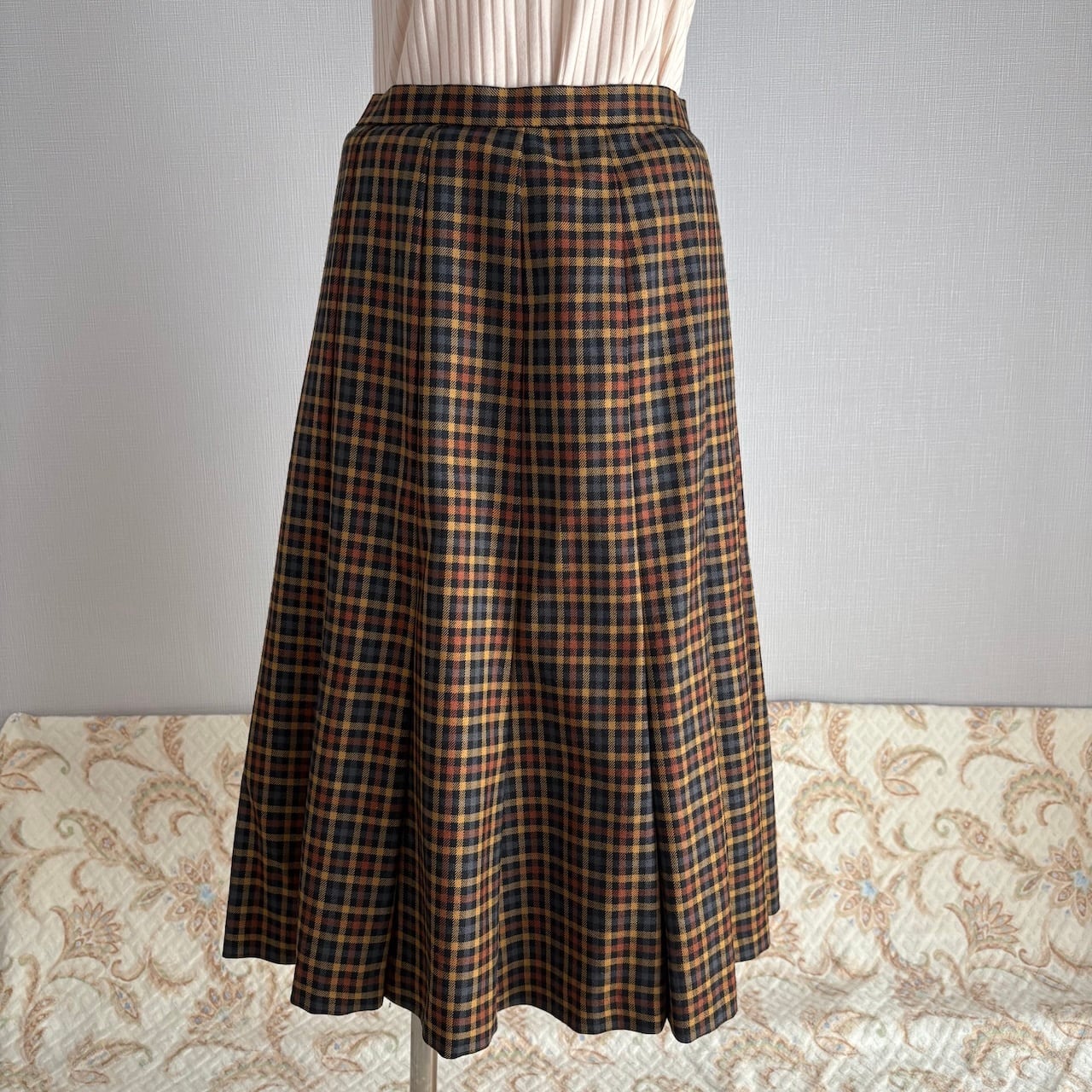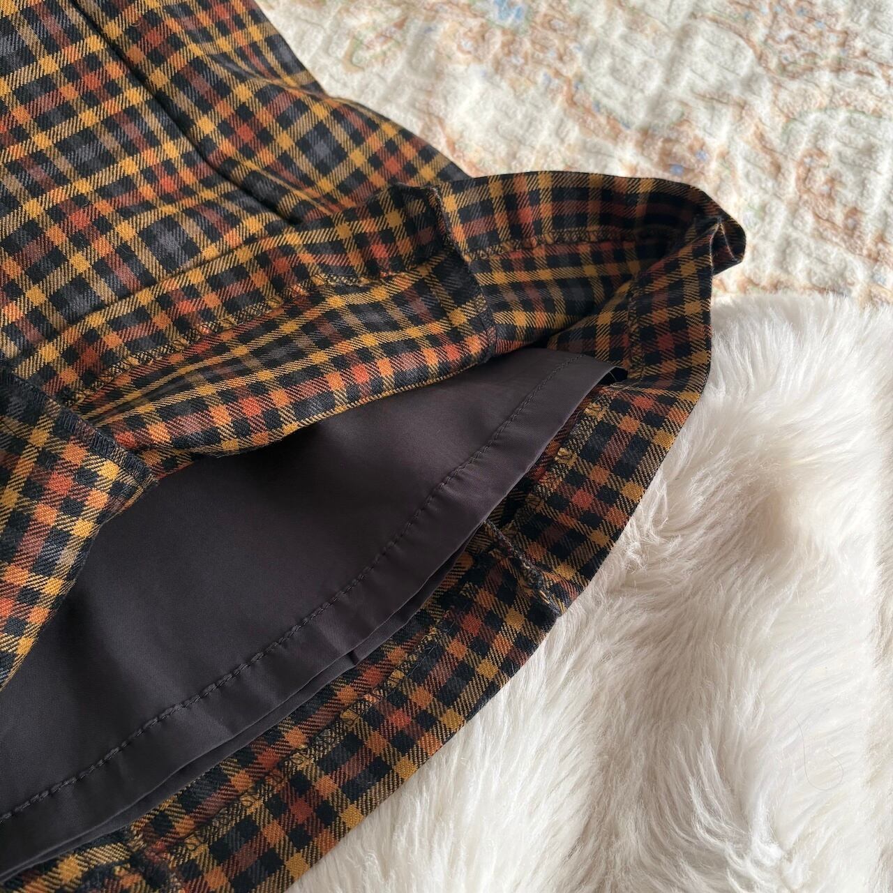 80s ブラウン チェック柄 フレアスカート 昭和レトロヴィンテージ古着