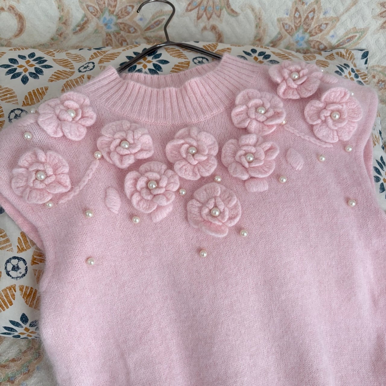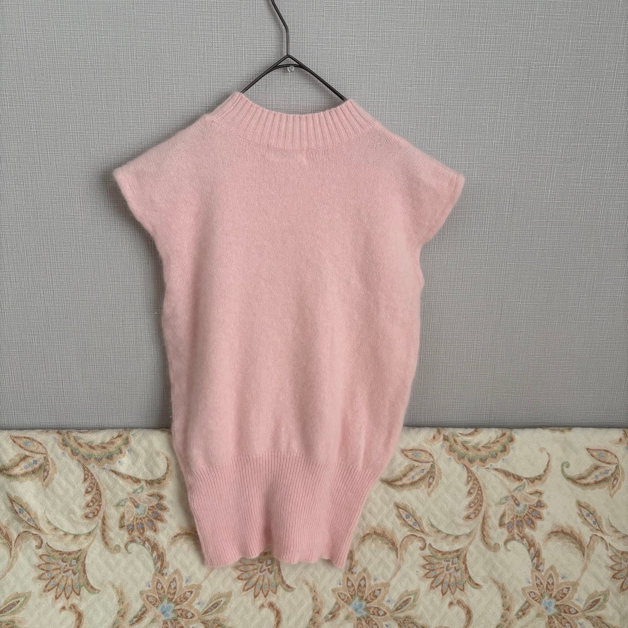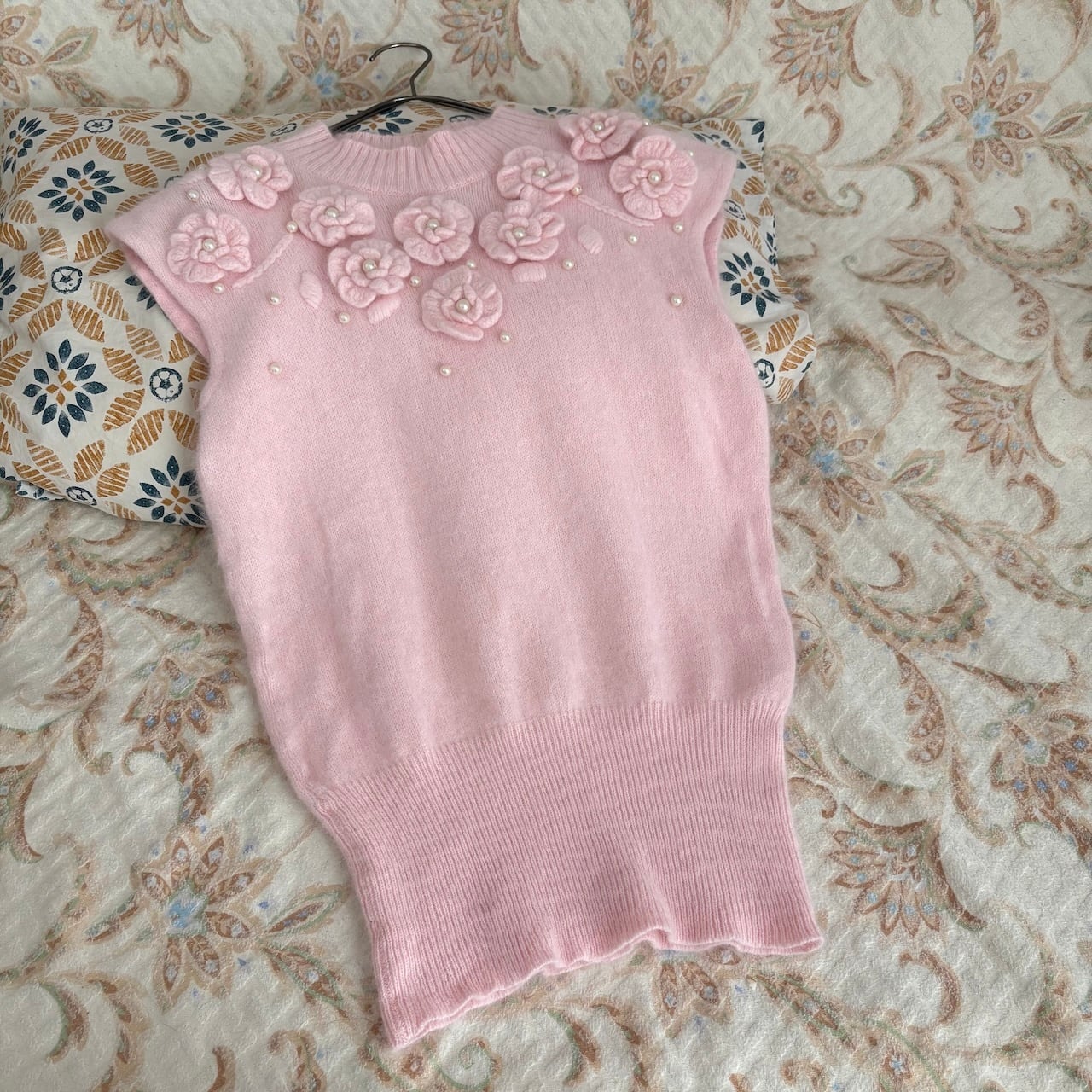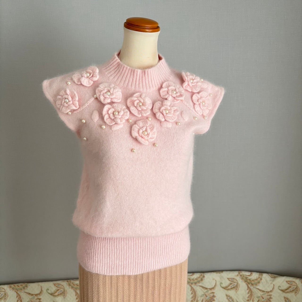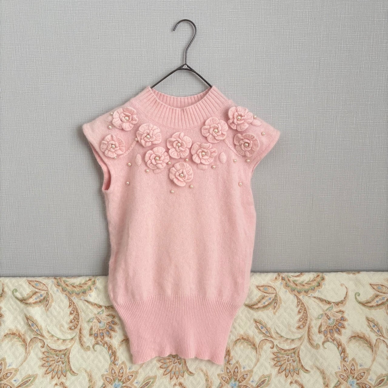 80s コサージュ付きノースリーブニット アンゴラ 昭和レトロヴィンテージ古着