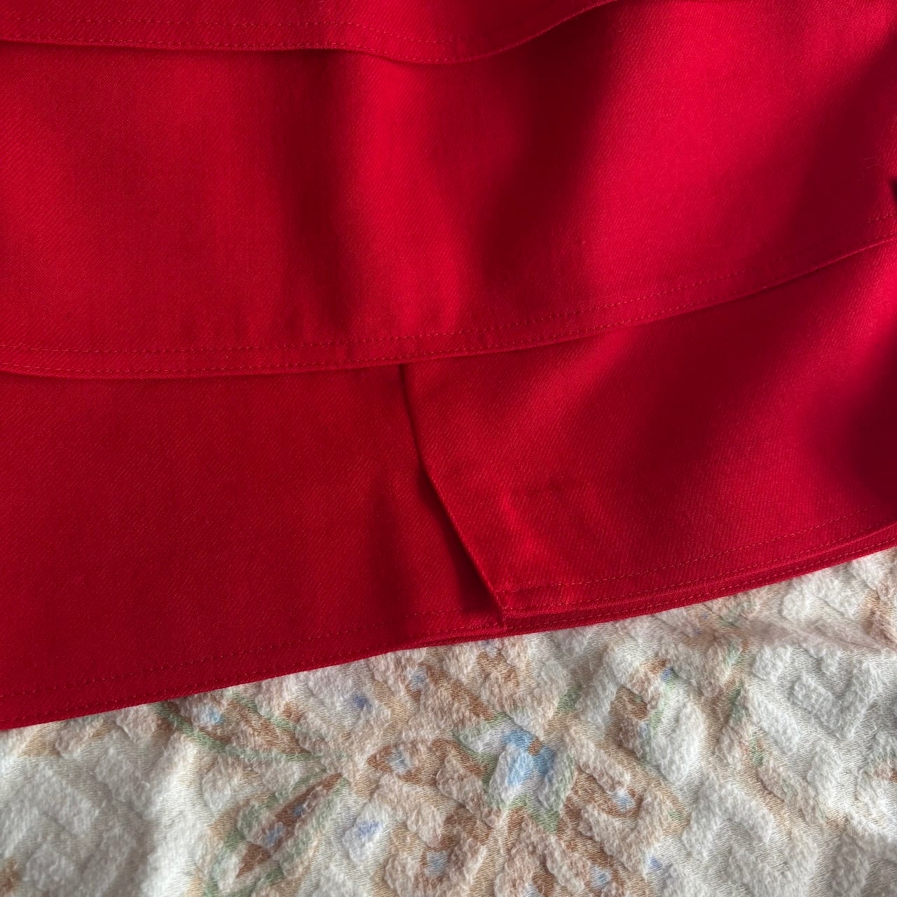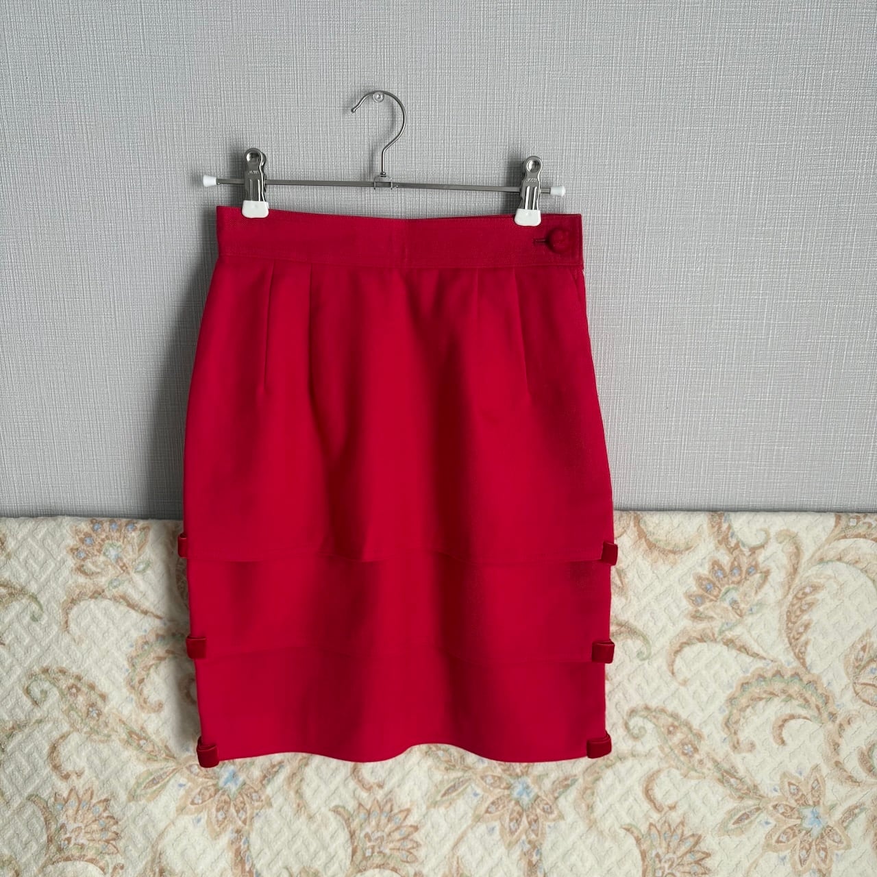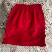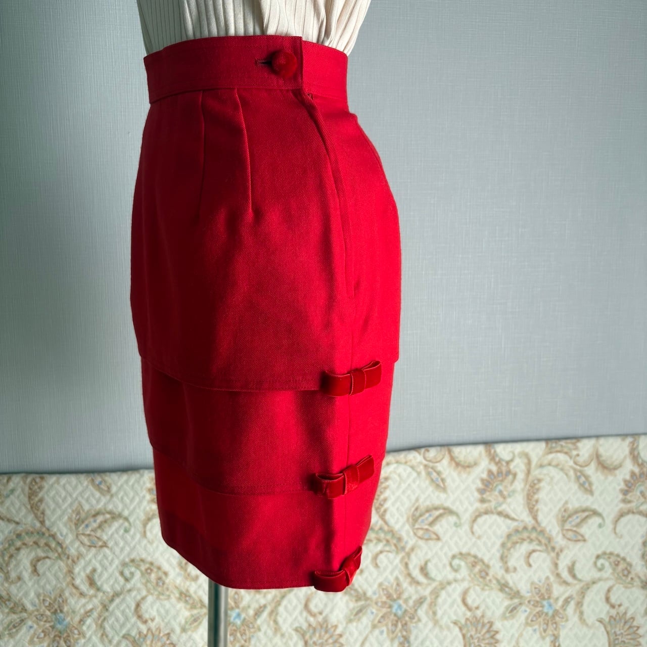 80s 赤 ベルベットのリボン付き フリルスカート 昭和レトロヴィンテージ古着