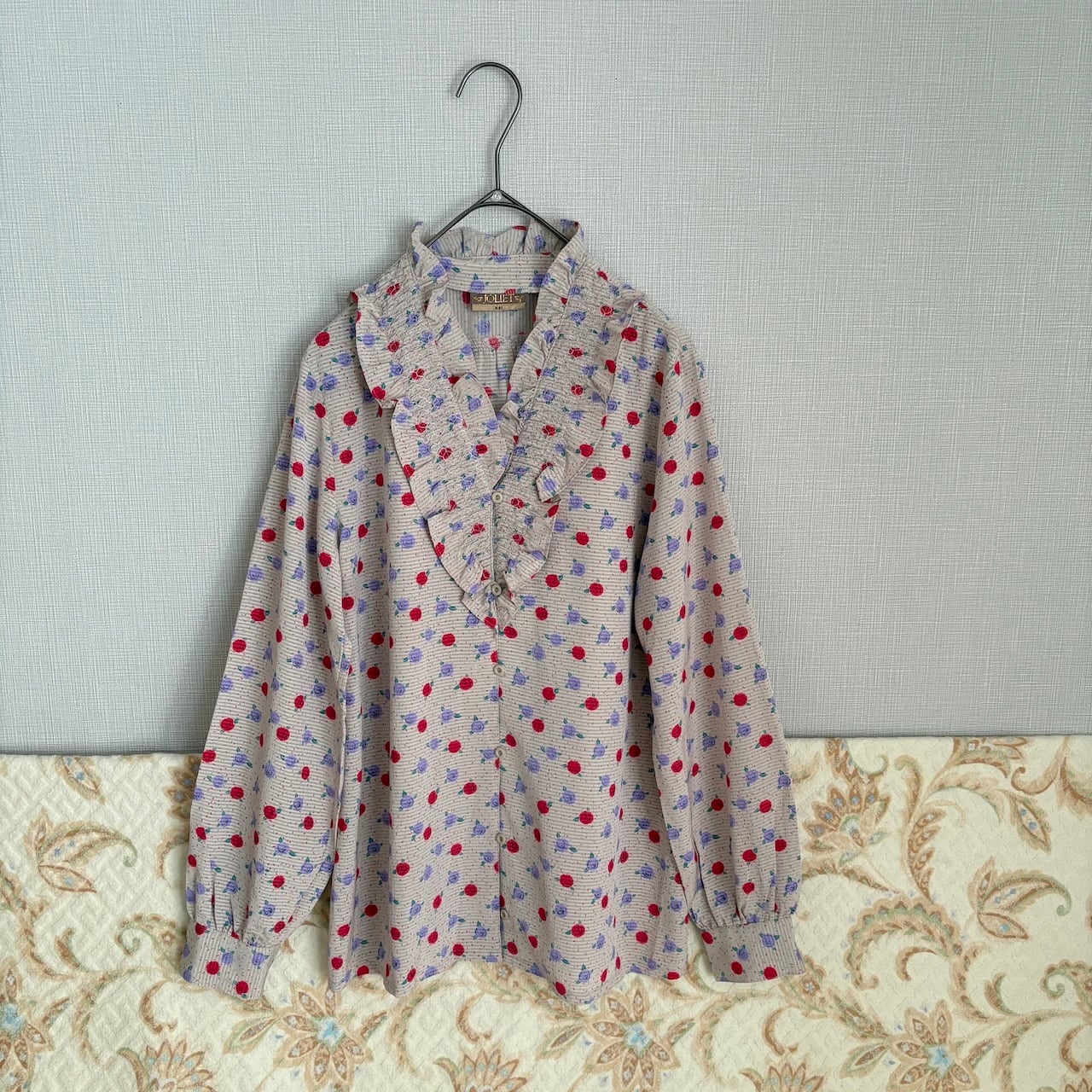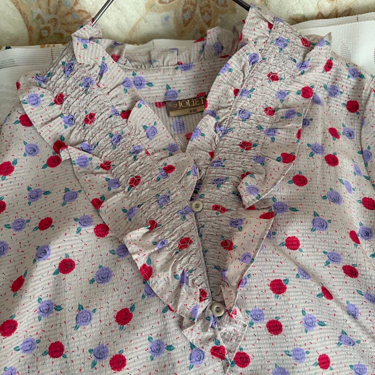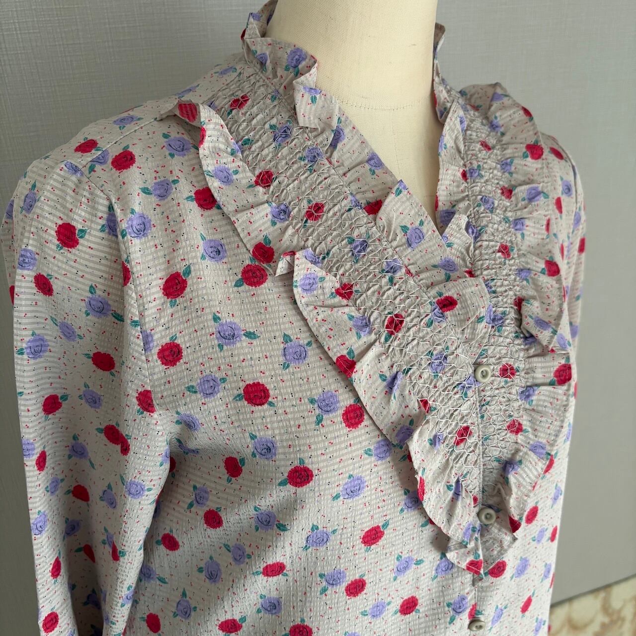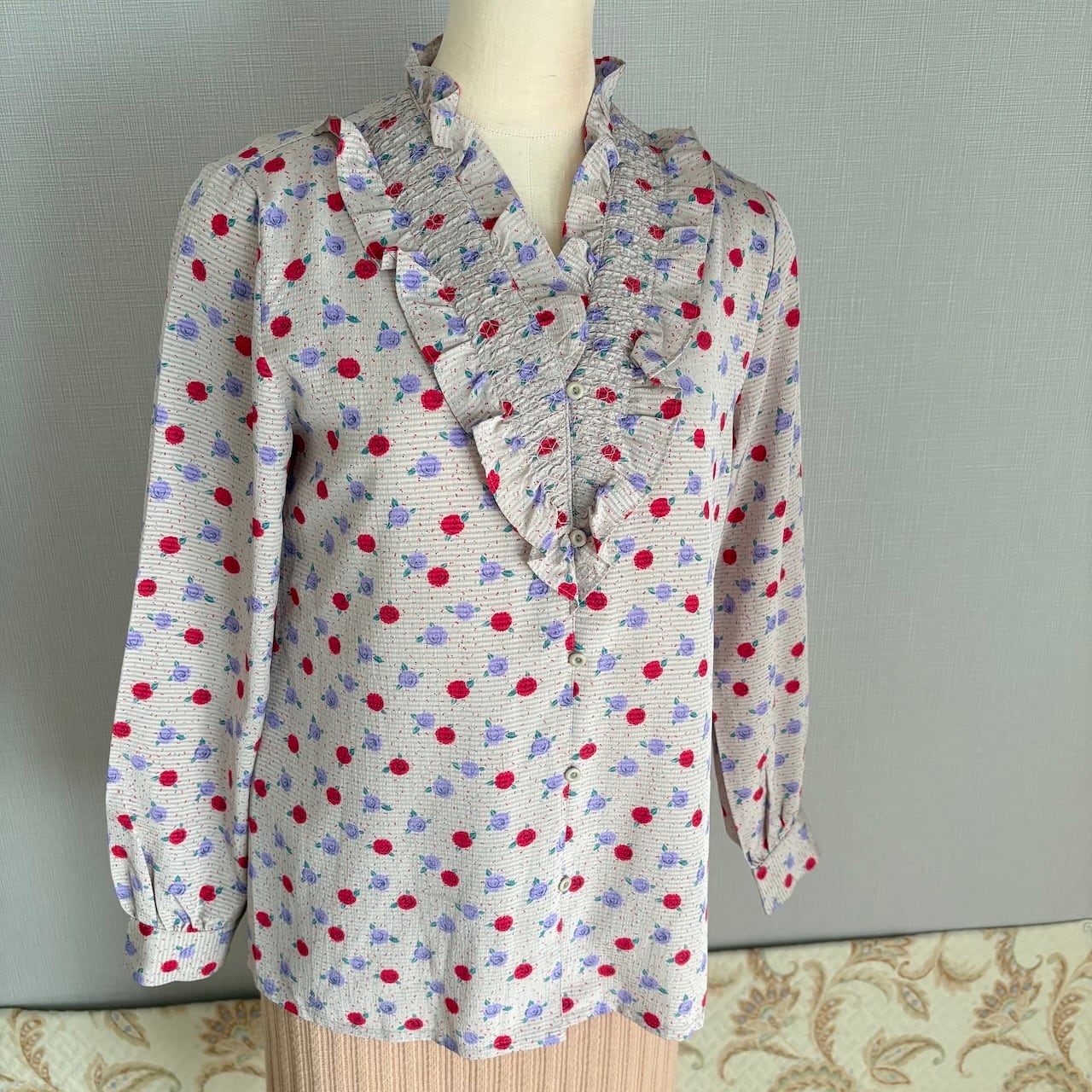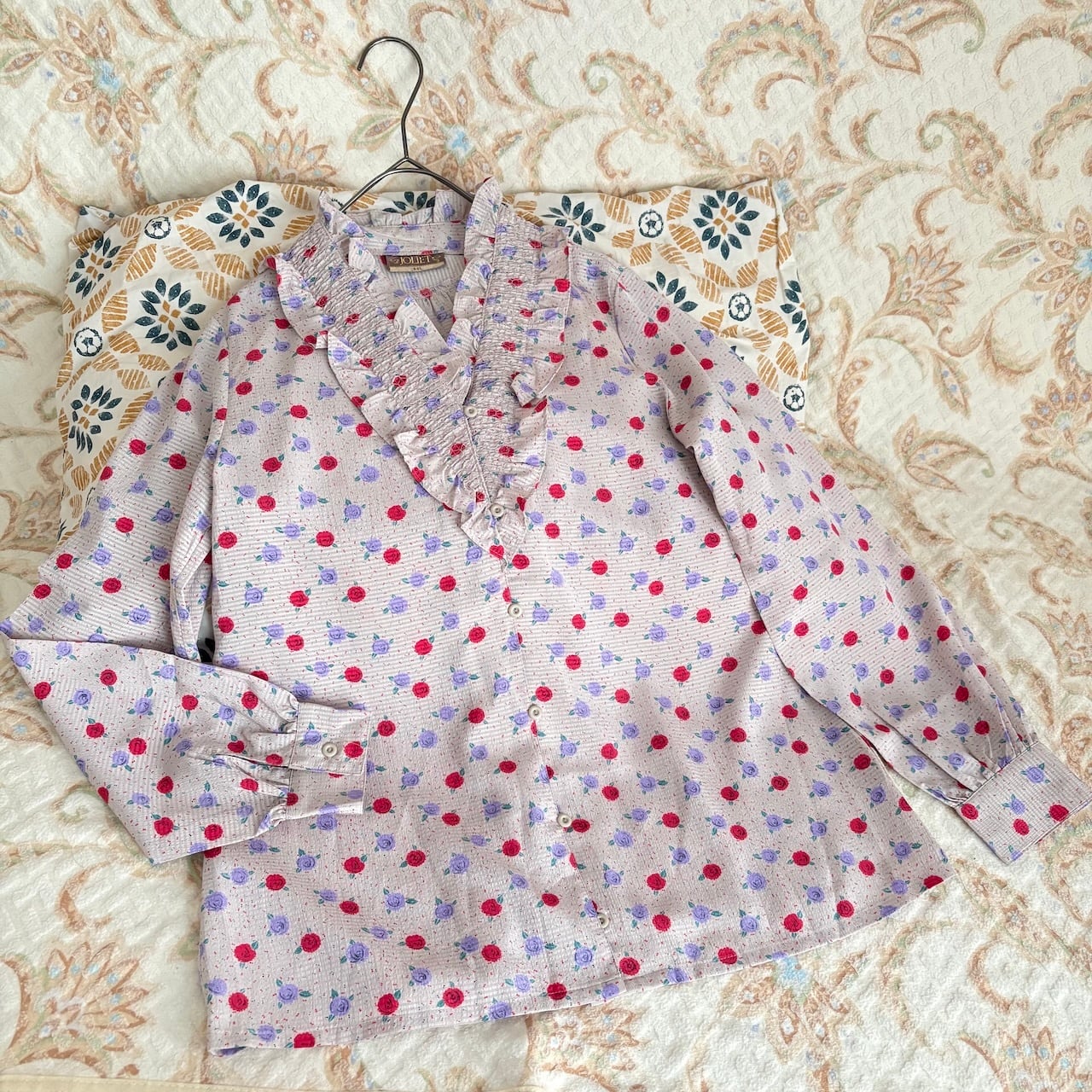 70s ばらの花柄 レトロブラウス 昭和レトロヴィンテージ古着
