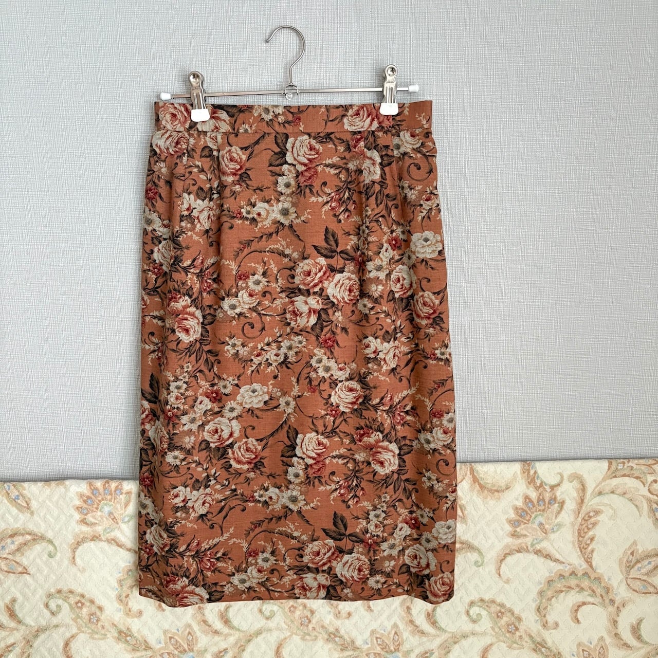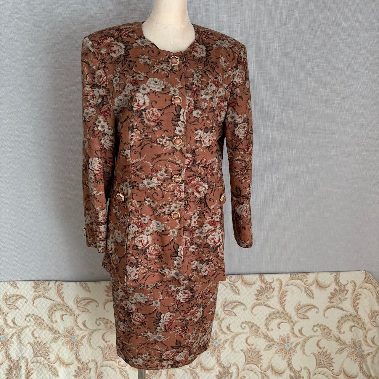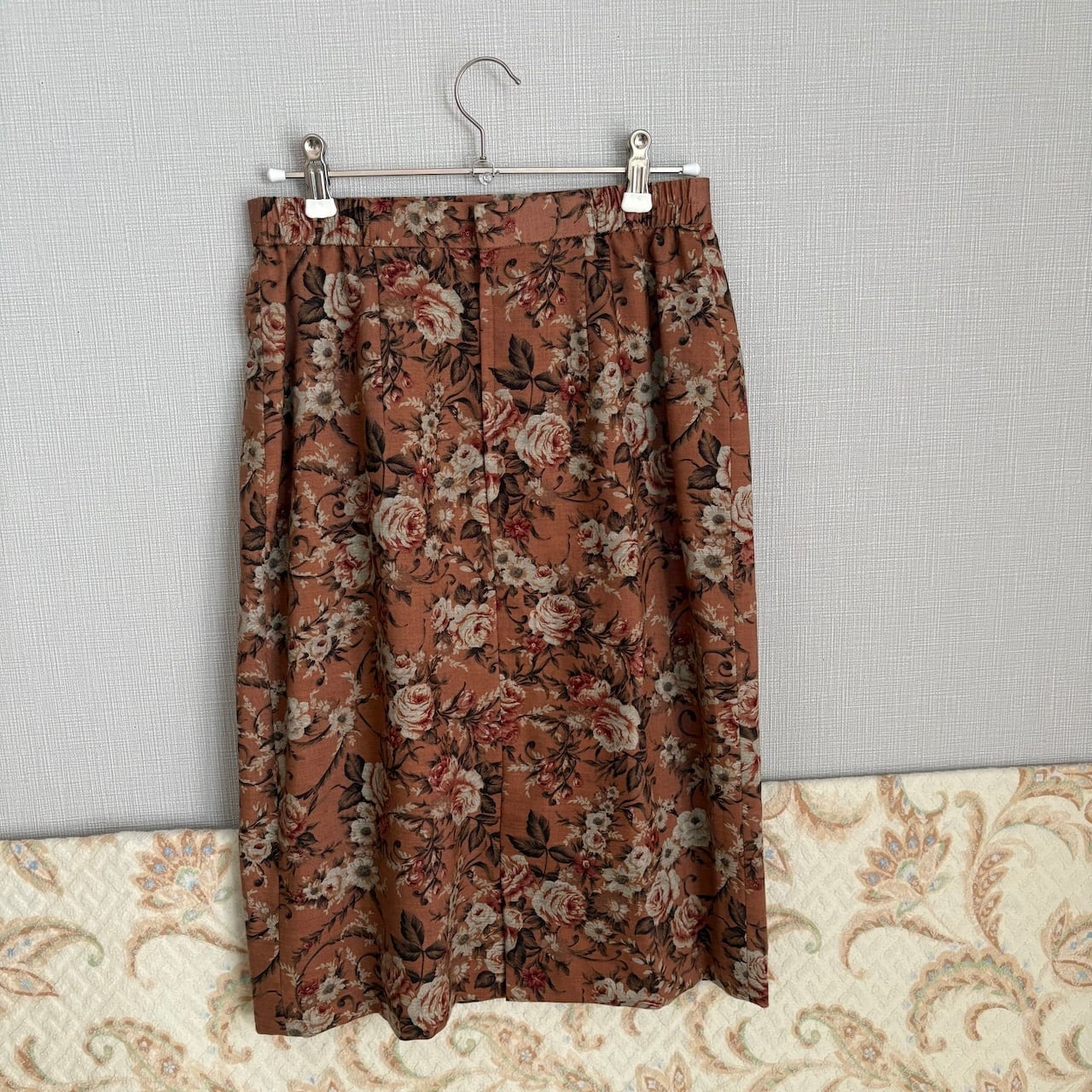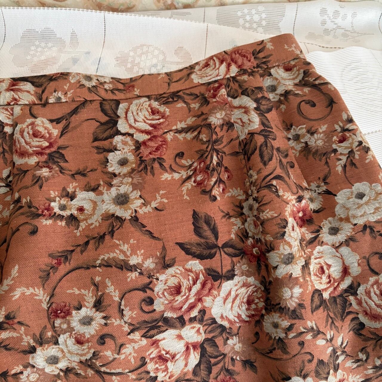 80s ヴィンテージブラウン ばら柄 スカート 昭和レトロヴィンテージ古着