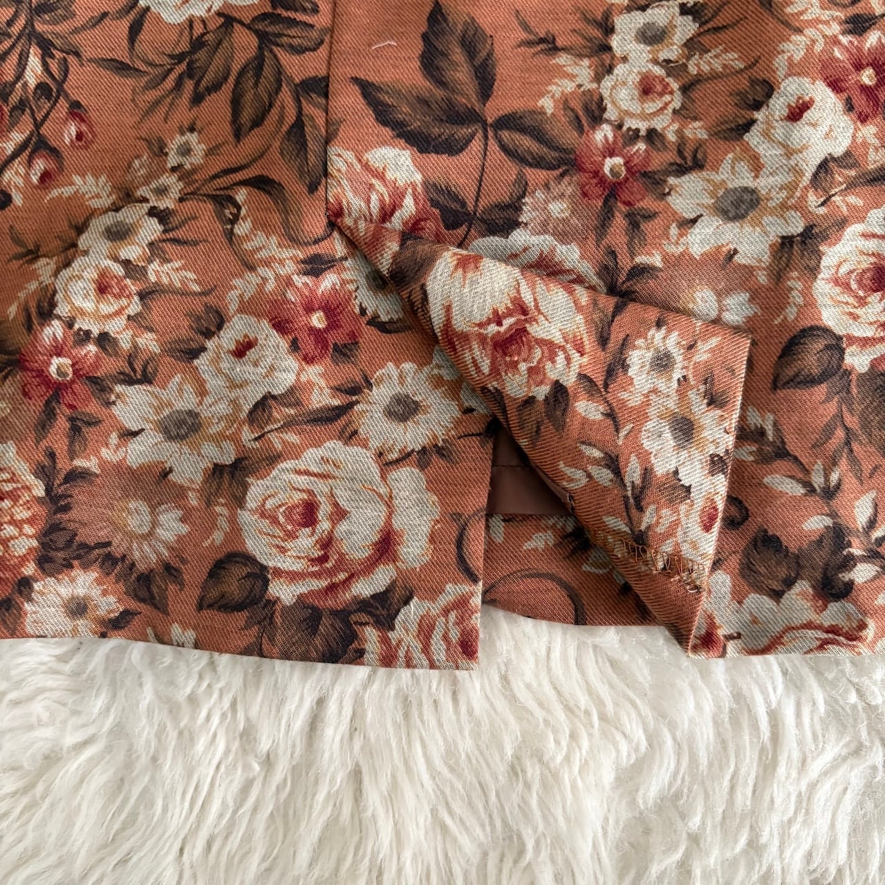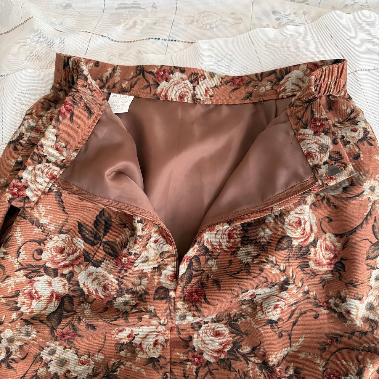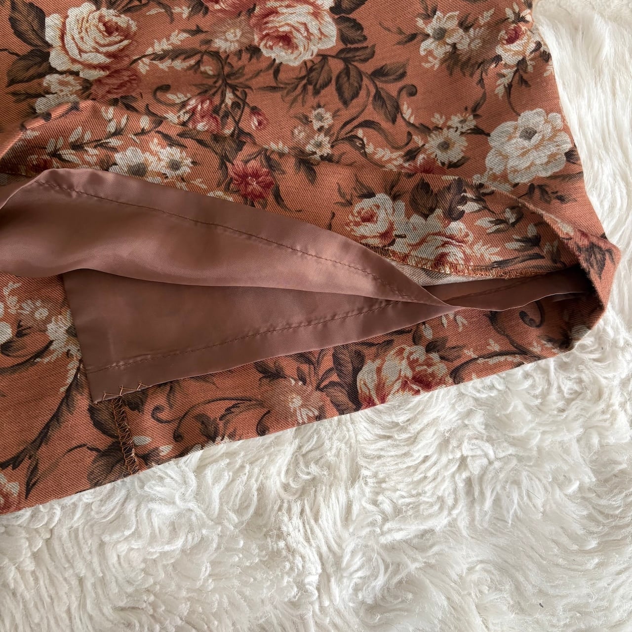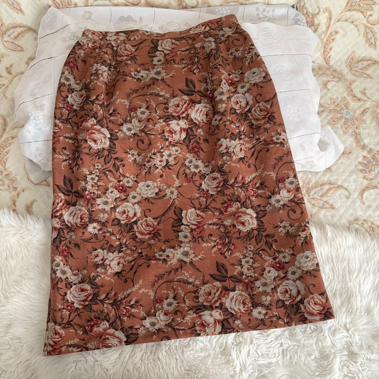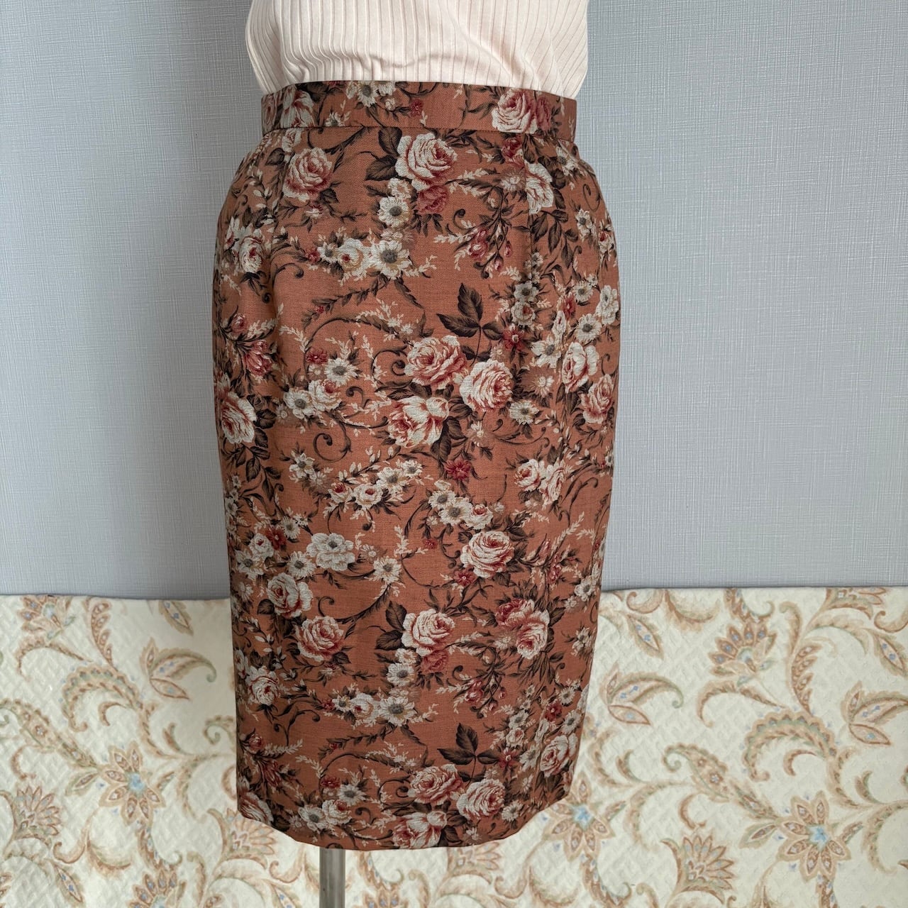 80s ヴィンテージブラウン ばら柄 スカート 昭和レトロヴィンテージ古着