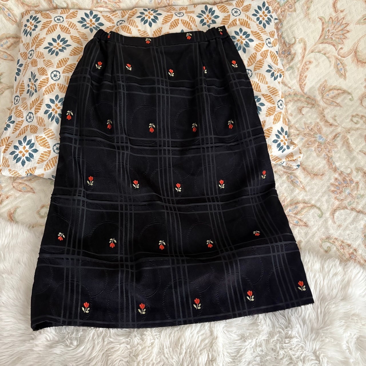 珍しい生地で作られた台形スカート