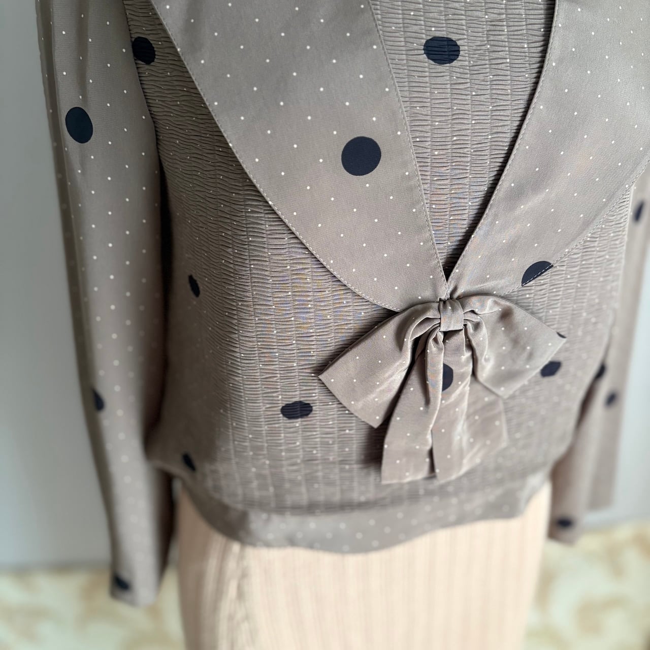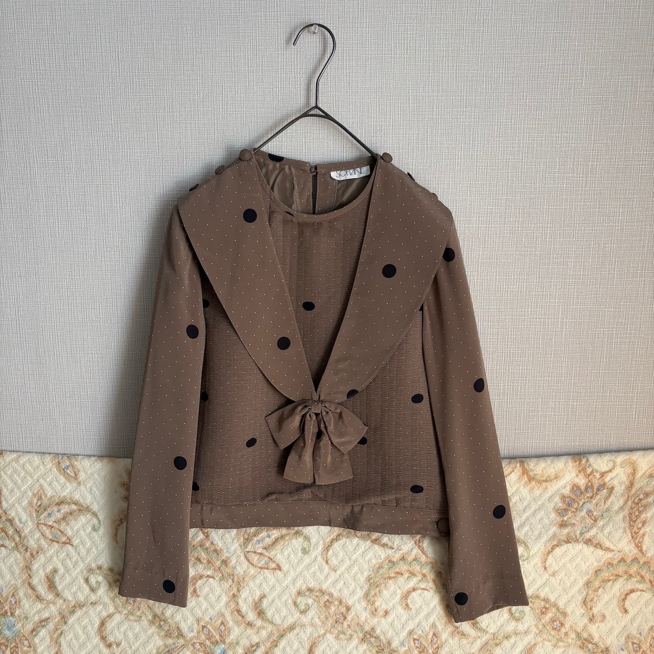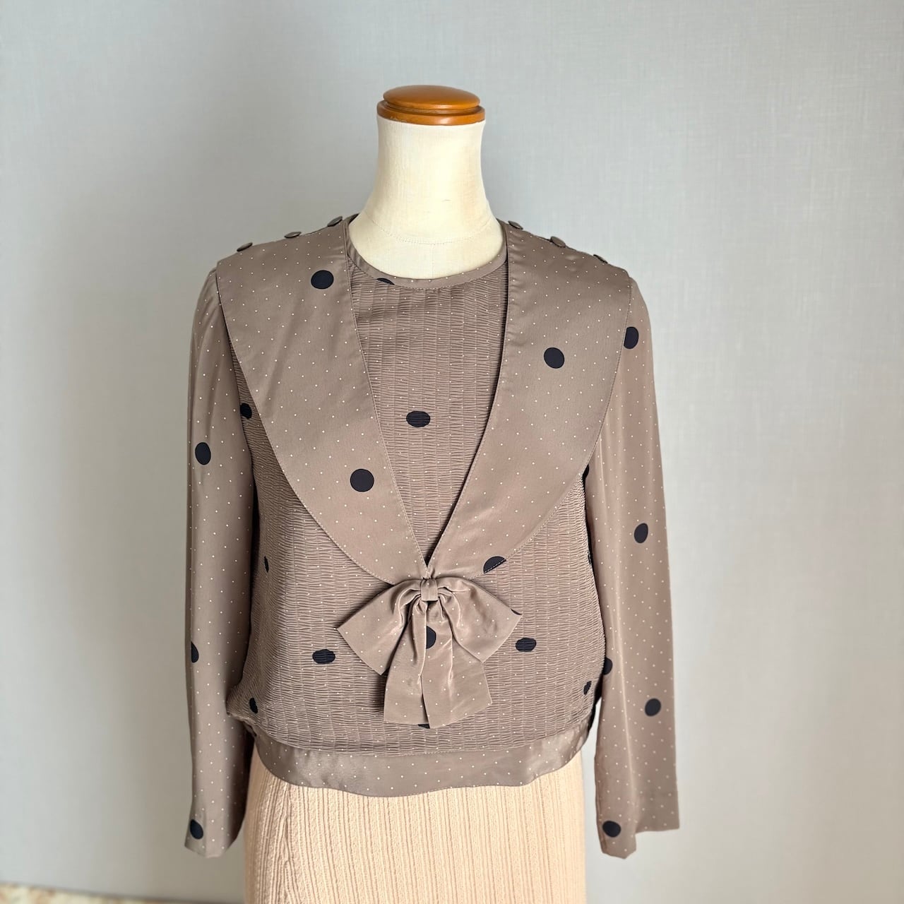 70s セーラー 水玉ドット ショート丈ブラウス 昭和レトロヴィンテージ古着