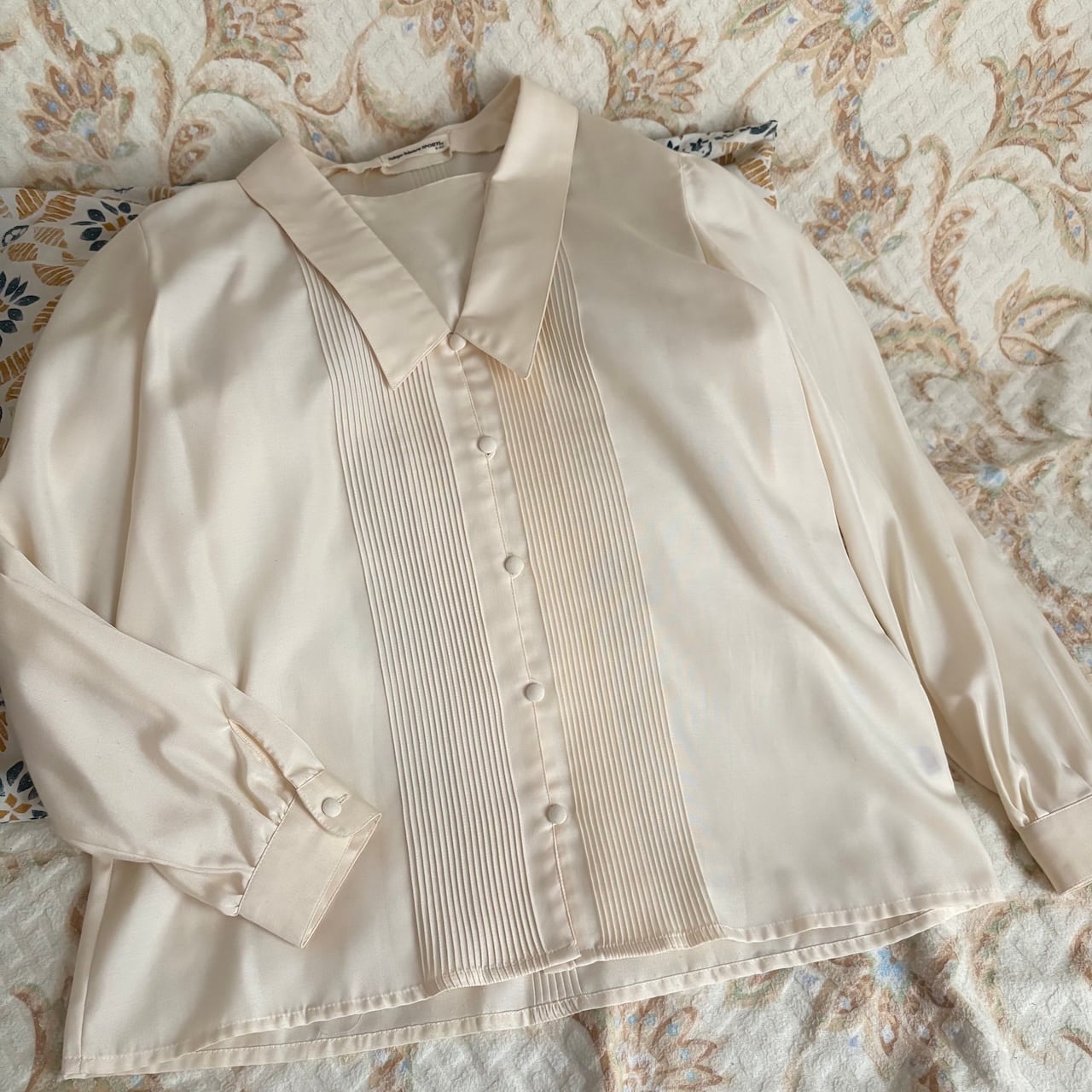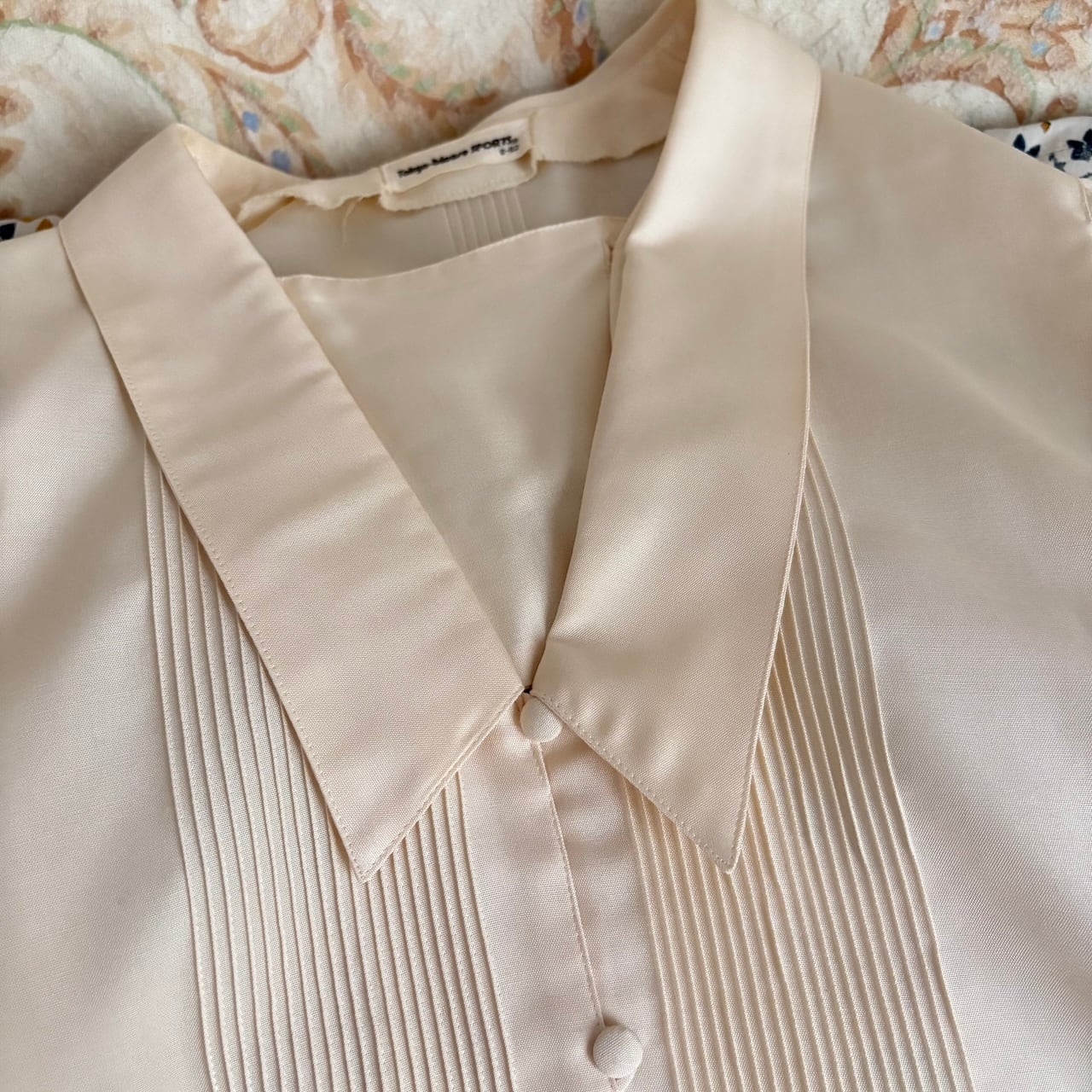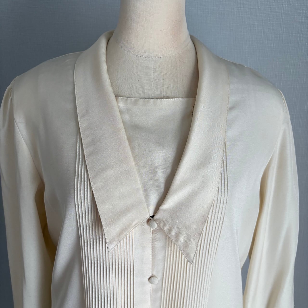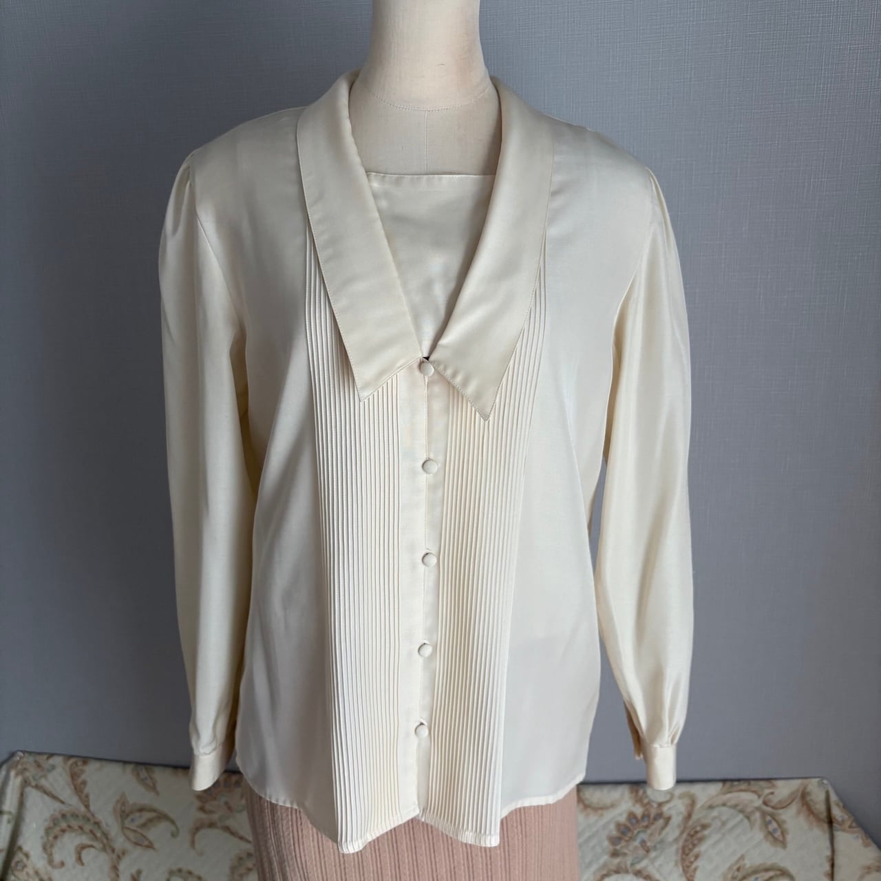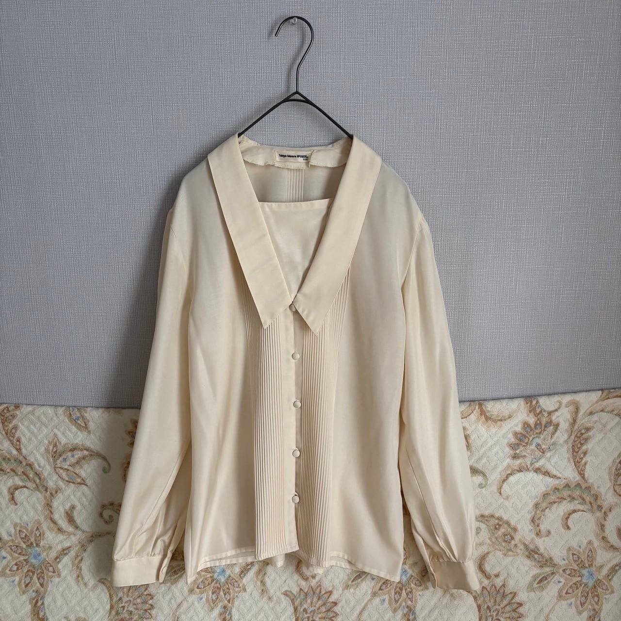 70s アイボリー 長袖ブラウス 胸あて付き 昭和レトロヴィンテージ古着