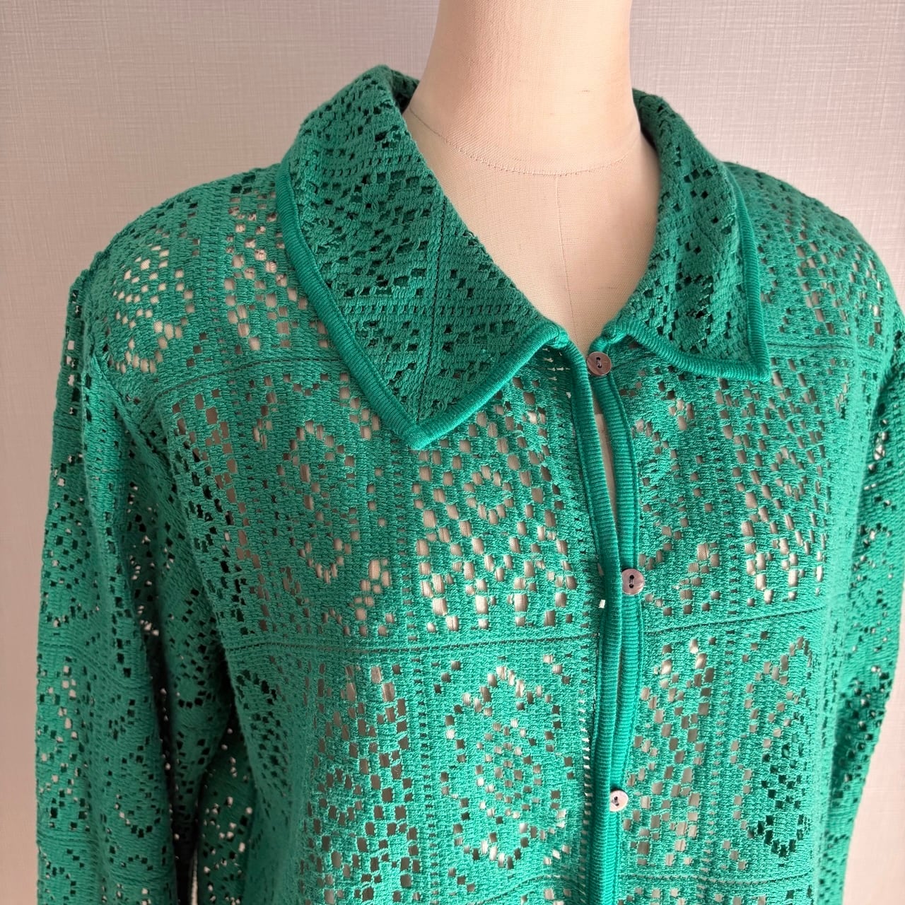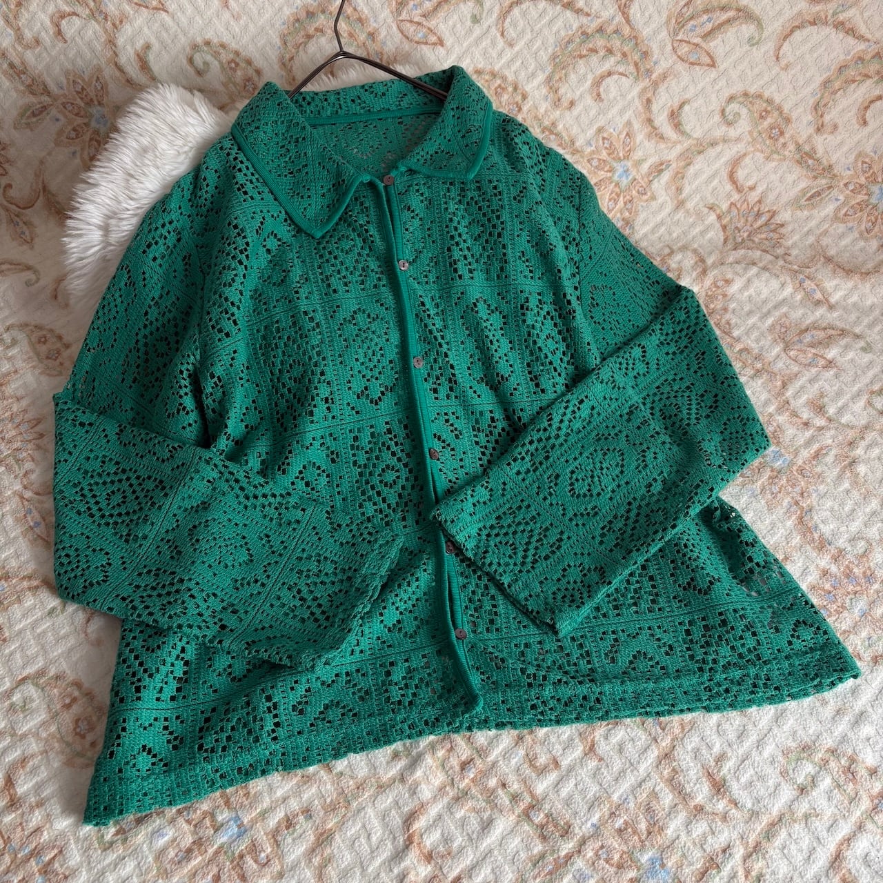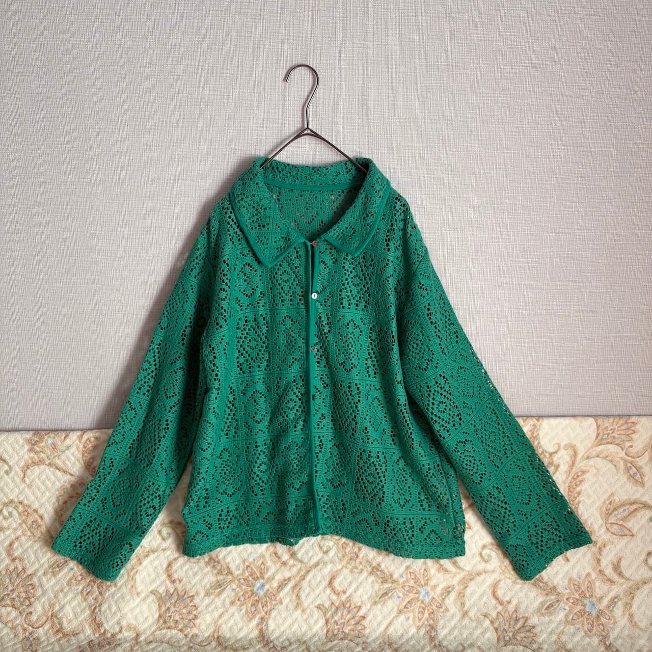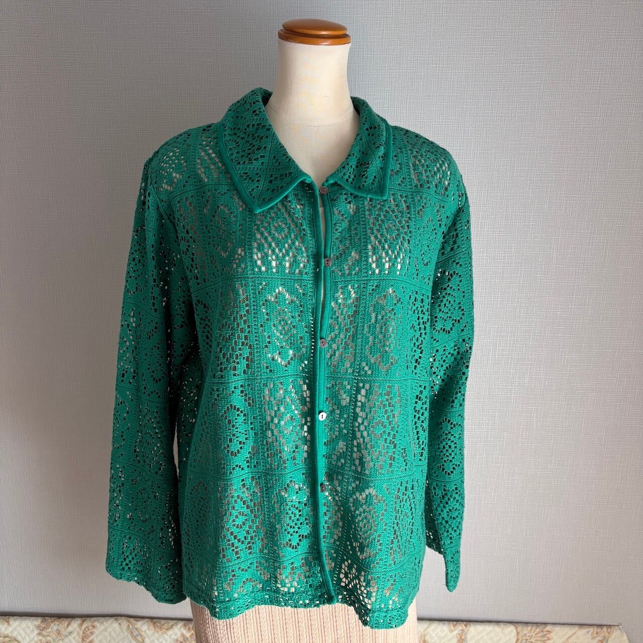 USED グリーン レースのシャツ 古着